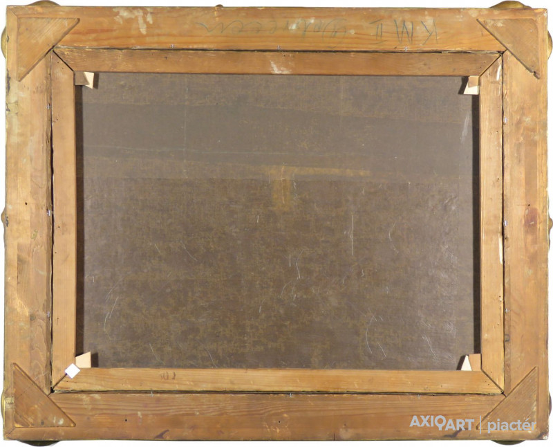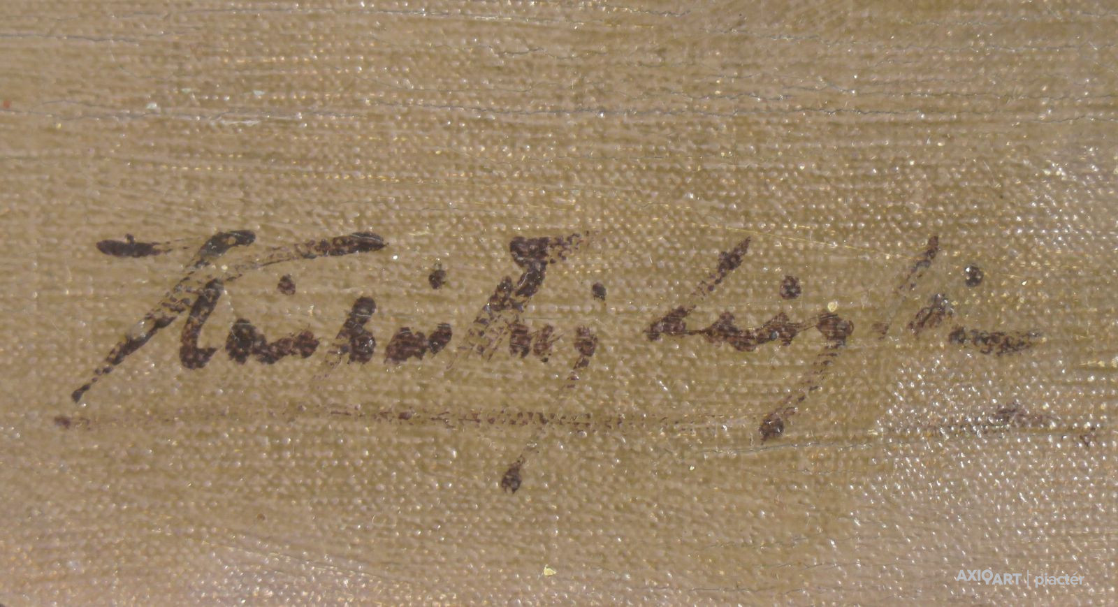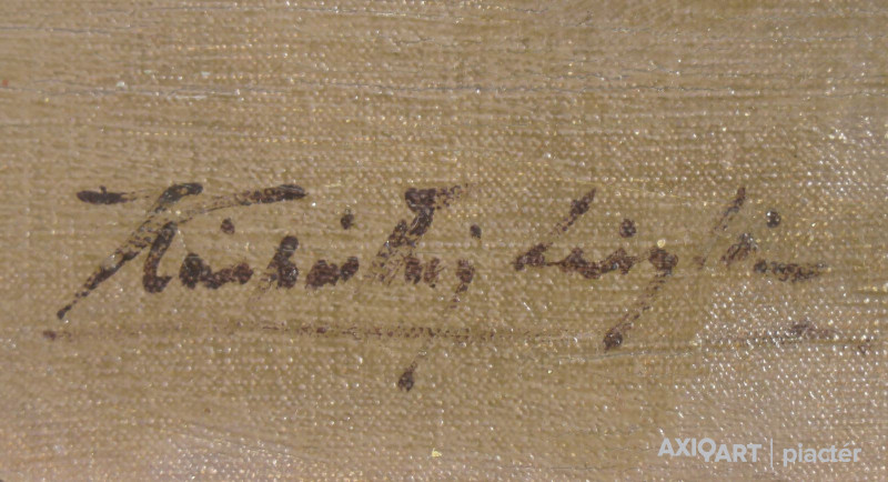 [FKC876/Bp92/46] A kép mérete: 100 x 81 cm keret nélkül. Készült: Olaj, Vászon A kép Ujváry Ignác (Pest, 1860, Kisoroszi, 1927) alkotása. Jelezve balra lent "Újváry I." A festmény jó állapotban van. Keret: Ép Magyar festők és grafikusok életrajzi lexikona I-II. Festő. Budapesten Lotz Károly mellett, a Benczúr-mesteriskolában, majd Münchenben és Párizsban tanult. Eleinte nagyobb kompozíciókkal szerepelt a fővárosi tárlatokon (Szent István szentté avatása), később visszavonulva Kisorosziba, erőteljes, friss tájfestményekkel lépett fel (virágos rét, Eresz alatt, stb.). 1928-ban a Műcsarnokban hagyatéki kiállítást rendeztek műveiből. Tanára volt a budapesti Iparművészeti Iskolának. Több díjat kapott. 1891-ben a Rökk-díjat, 1894-ben a Műbarátok-díját, 1895-ben pedig az Ipoly-díjat nyerte. Tagja volt a Magyar Képzőművészek Egyesületének. Néhány munkája a Magyar Nemzeti Galéria tulajdona. (Éber, ML, VNML) Magyar festők és grafikusok életrajzi lexikona I-II. Műgyűjtők és kereskedők kézikönyve Festő. Budapesten Lotz Károly mellett, a Benczúr-mesteriskolában, Münchenben és Párizsban tanult. Eleinte nagyobb kompozíciókkal szerepelt (Szent István szentté avatása), majd visszavonulván Kisorosziba, erőteljes, friss tájképekkel lépett fel. Tanára volt a fővárosi Iparművészeti Iskolának. 1891-ben Rökk-díjat, 1894-ben a Műbarátok díját, 1895-ben az Ipoly-díjat nyerte. Néhány képe a MNG tulajdona. (Éber) Művészeti lexikon I-II. Festő, szül. Budapest 1860. szept. 20. U. o. végezte tanulmányait s eleinte nagyobb kompozíciókkal szerepelt (Szent István szentté avatása), később visszavonulván Kisorosziba, erőteljes, friss tájképekkel lépett fel (Virágos rét, Eresz alatt). Tanára az Iparművészeti Iskolának. Művészeti lexikon I-IV. Festő. Bp.-en Lotz Károly tanítványaként, majd a Benczúr-mesteriskolában, később Münchenben és Párizsban végezte tanulmányait. Eleinte nagyobb kompozíciókkal szerepelt a bp.-i tárlatokon (Sz. István szentté avatása), később Kisorosziba visszavonulva erőteljes ecsetkezelésű, friss tájképeit állította ki. Több művésszel együtt részt vett a Feszty-körkép festésében. Az Iparművészeti Iskola tanára volt. Számos díjat nyert. Néhány képét a Nemz. Gal. őrzi. 1928-ban a Műcsarnok hagyatéki kiállítást rendezett műveiből. Magyar festők és grafikusok adattára Korai képei nagyobb történelmi kompozíciók, legjobb művei azonban Kisorosziban festett tájai. 1928-ban rendezték meg hagyatéki kiállítását a Műcsarnokban. Zsellérudvar, Őszi est, Hajóépítés a Dunaparton c. munkáit a Magyar Nemzeti Galéria őrzi. - Irod.: Lyka Károly: Ujváry Ignác, Magyar Művészet, 1927.