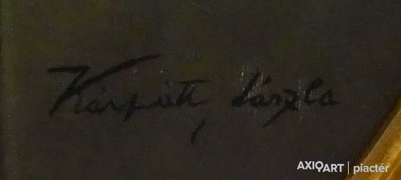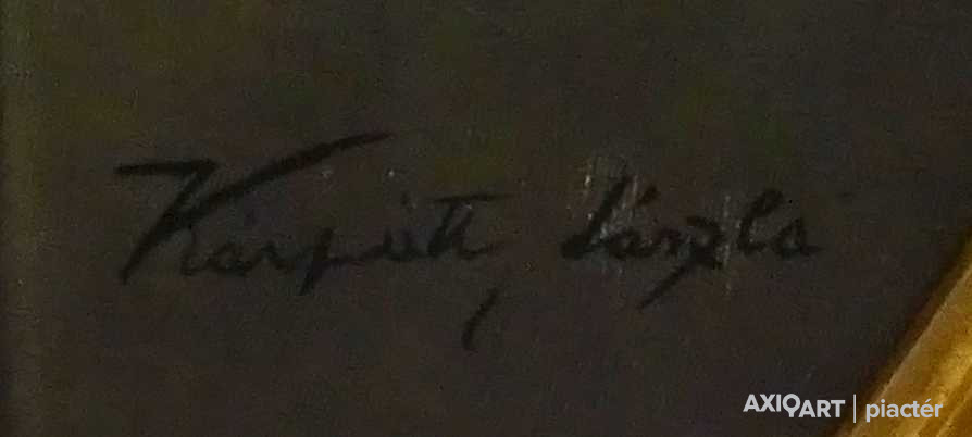 [FK3264/FL-4] A kép mérete: 31,5 x 70,5 cm keret nélkül. Készült: Olaj, tempera, Farostlemez A kép Kurucz D. István (Hódmezővásárhely, 1914, Budapest, 1996) alkotása. Jelezve Jobbra lent "Kurucz 977" A festmény jó állapotban van. Keret: Ép A festmény hátoldalán a Képcsarnokvállalat raglapja látható. Magyar festők és grafikusok életrajzi lexikona I-II. Festő, grafikus. Vásárhelyről, ahol Darvasy István festőművész figyelt fel tehetségére, került Szőnyi István magániskolájába. A fővárosi Képzőművészeti Főiskolának, ahol Rudnay Gyula, Réti István, Benkhard Ágost, Szőnyi István voltak a tanítómesterei 1940-ig volt a tanítványa. A monumentális festészetet Nagy Sándor tanította. Tanulmányúton járt több kelet- és nyugat-európai államban, Mongóliában, Japánban, Algériában. 1940-ben Hódmezővásárhelyen telepedett le, 1943-1947 között bekapcsolódott szülővárosa művészeti és közéletébe. A Vásárhely Népe c. lap munkatársa volt. 1949-59 között Szőnyi tanársegédjeként freskótechnikát tanított a főiskolán. 1951-52-ben megszervezte a Honvédségi Képzőművészeti Stúdiót, majd kinevezték a Honvéd Képzőművészeti Iskola igazgatójának. A vásárhelyi iskola reprezentáns egyéniségeként jelentős szerepe volt a Vásárhelyi Őszi Tárlatok elindításában. Megszervezete és vezette a Mednyánszky Társaságot, s haláláig művészeti vezetője volt a Hajdúböszörményi Nemzetközi Művésztelepnek. Évekig elnöke volt a Hortobágyi Alkotótábornak. Az alföldi parasztok életét megörökítő képei a falképek összefoglaló stílusában a népi realizmus és a dekoratív sommázás szellemében készültek. Számos falképet festett (Kossuth Akadémia, hódmezővásárhelyi iskola, stb.). 1941-től számos kisebb-nagyobb egyéni kiállítása volt, bemutatkozott több hazai és külhoni városban. 1941-től minden jelentősebb országos rendezvény és a magyar művészek külföldi bemutatóinak résztvevője. Rendszeresen szerepelt a Vásárhelyi Őszi Tárlatokon, a Hatvani Tájkép és Portrébiennálékon, a Szegedi Nyári Tárlatokon. Képei bemutatásra kerültek a vásárhelyi iskola jubileumi rendezvényein. 1962-ben több alkotásával szerepelt a Velencei Biennálén. Díjak: SZOT-díj, Munkácsy-díj, Érdemes és Kiváló Művész kitüntetés, Tornyai-plakett, római ösztöndíj, a Munka Érdemrend arany fokozata, Káplár Miklós-díj és emlékplakett, Kossuth-díj. Művei megtalálhatók minden jelentősebb hazai, több olasz és japán közgyűjteményben. (ML, D.J.: Műv. 1985/5, Tasnádi Attila adatközlése nyomán, L.L.: Műv. 1983/3) Magyar festők és grafikusok életrajzi lexikona I-II. Műgyűjtők és kereskedők kézikönyve Festő, grafikus. Vásárhelyről, ahol Darvasy István festőművész figyelt fel tehetségére, került Szőnyi István magániskolájába. A fővárosi Képzőművészeti Főiskolának, ahol Rudnay Gyula, Réti István, Benkhard Ágost, Szőnyi István voltak a tanítómesterei 1941-ig volt a növendéke. A monumentális festészetet Nagy Sándor tanította. Egy ideig tanársegédként működött Szőnyi mellett. Több ízben járt Itáliában tanulmányúton. Évekig művészeti vezetője volt a Hajdúböszörményi Nemzetközi Művésztelepnek. Az alföldi parasztok életét megörökítő képei a falképek összefoglaló stílusában a népi realizmus és a dekoratív sommázás szellemében készülnek. A II. világháború alatt szerepet vállalt a Szocialista Képzőművészek Csoportjának akcióiban. 1949-1960 k. a Képzőművészeti Főiskola falképtanszékének tanára volt. Több falképet festett (Kossuth Akadémia, hódmezővásárhelyi iskola, stb.). 1962-ben több alkotásával szerepelt a Velencei Biennálén, SZOT-díjas, Munkácsy-díjas, érdemes és kiváló művész kitüntető elismerésében részesült. (ML, D.J.: Műv.-1985/5, L.L: Műv.-1983/3) Magyar festők és grafikusok adattára Tanulmányait a Képzőművészeti Főiskolán végezte, ahol Rudnay Gyula és Réti István voltak a mesterei. 1941-1943-ban ösztöndíjas Rómában. 1943-1947 között Hódmezővásárhelyen dolgozik, egyidejűleg a Vásárhelyi Hétfő c. hetilap szerkesztője. 1949-1960 közötti években a budapesti Képzőművészeti Főiskola freskó tanszékének tanára. Az 1940-es évek eleje óta kiállító művész. 1962-ben a Velencei Biennálén állították ki műveit. 1970-ben Csók István Galériában volt kiállítása. A Vásárhelyi Őszi Tárlatok és a Szegedi Nyári Tárlatok rendszeres kiállító művésze. Az alföldi festészet egyéni hangú továbbfejlesztője. Táblaképeket, freskókat és kerámia falképeket alkot. Munkácsy-díjas, érdemes és kiváló művész kitüntető elismerésében részesült. A SZOT a legelső képzőművészek közt, 1962-ben tüntette ki díjával. A 70. születésnapját ünneplő művész 1984 decemberében életmű kiállítást rendezett műveiből a hódmezővásárhelyi Tornyai János Múzeumban. 1986-ban a budapesti Hollósy Galériában nyílt kiállítása. - Irod.: Szij Rezső: Kurucz Dezső István festőművész. Bp. 1967.; Kulcsár Ödön: SZOT-díjasok. Bp., 1981.; Lóska Lajos: Mindig freskót szerettem volna festeni. Beszélgetés Kurucz Dezső Istvánnal. Művészet, 1984. 3. Művészeti lexikon I-IV. Festő, Munkácsy-díjas. A Képzőművészeti Főiskolán Rudnay Gyula, Réti István, Benkhard Ágost, Szőnyi István növendéke volt 1934-40 között. Több ízben járt külföldi tanulmányúton. Az alföldi parasztok életét megörökítő képei a falképek összefoglaló stílusában a népi realizmus és a dekoratív sommázás szellemében készülnek. 1949-60 között a Képzőművészeti Főiskola falképtanszékének tanára volt. Több falképet festett (Kossuth Akadémia; Hódmezővásárhely, iskola, pápai pártház, 1965). Legutóbb 195