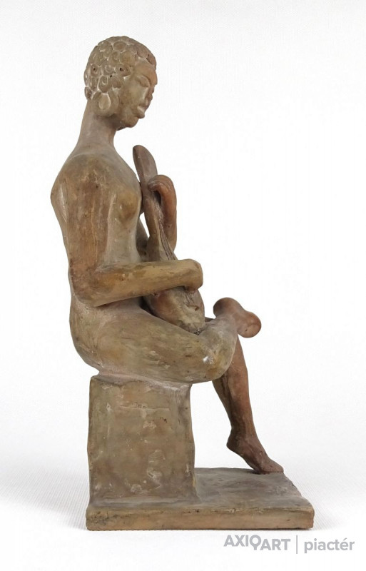 Szép állapotú jelzett máz nélküli kerámia szobor talapzaton. Jobb keze törött, ragasztott.