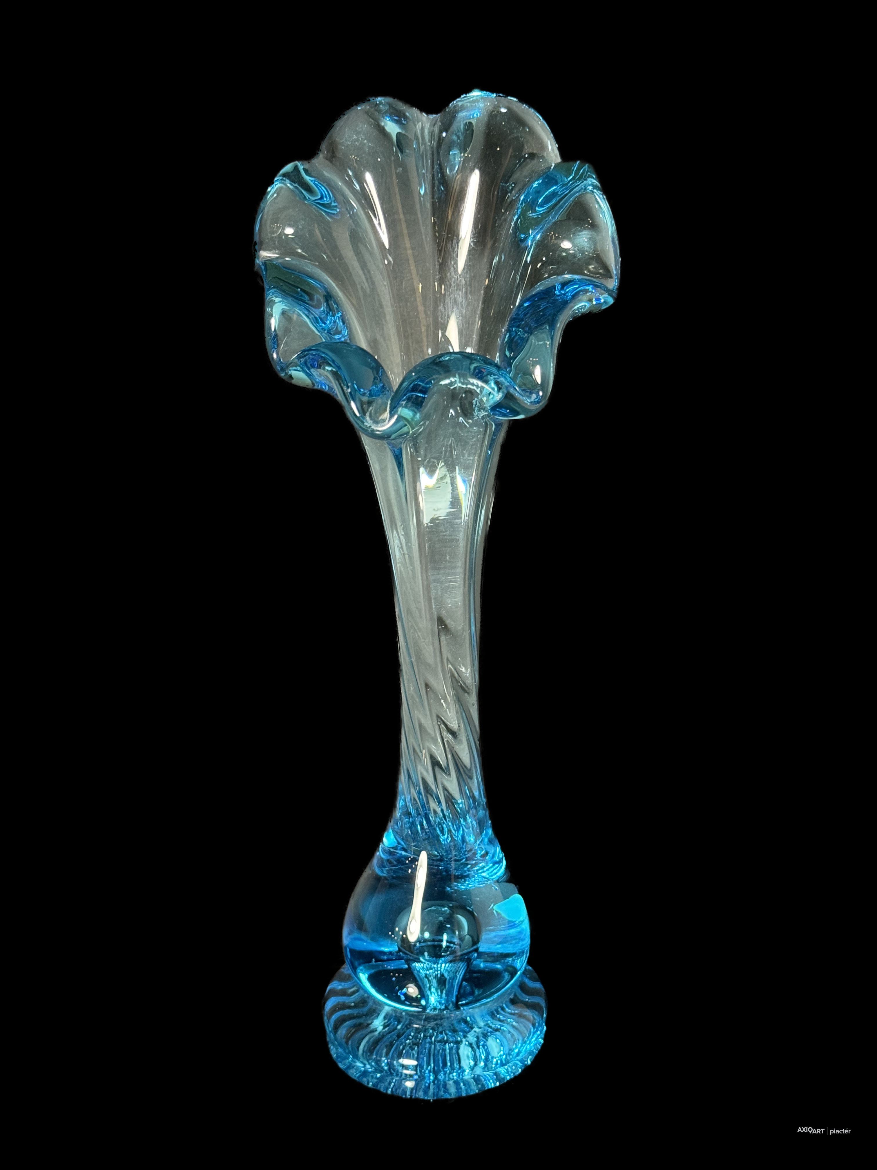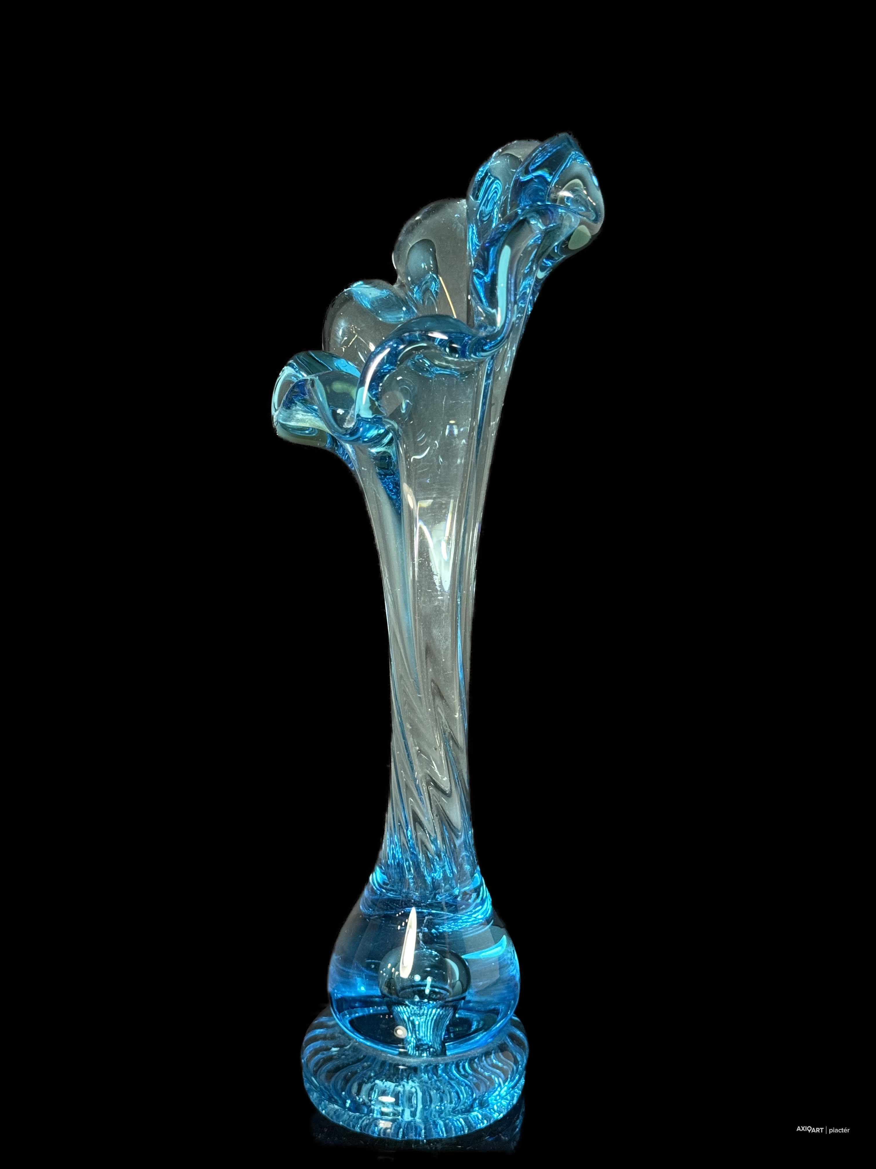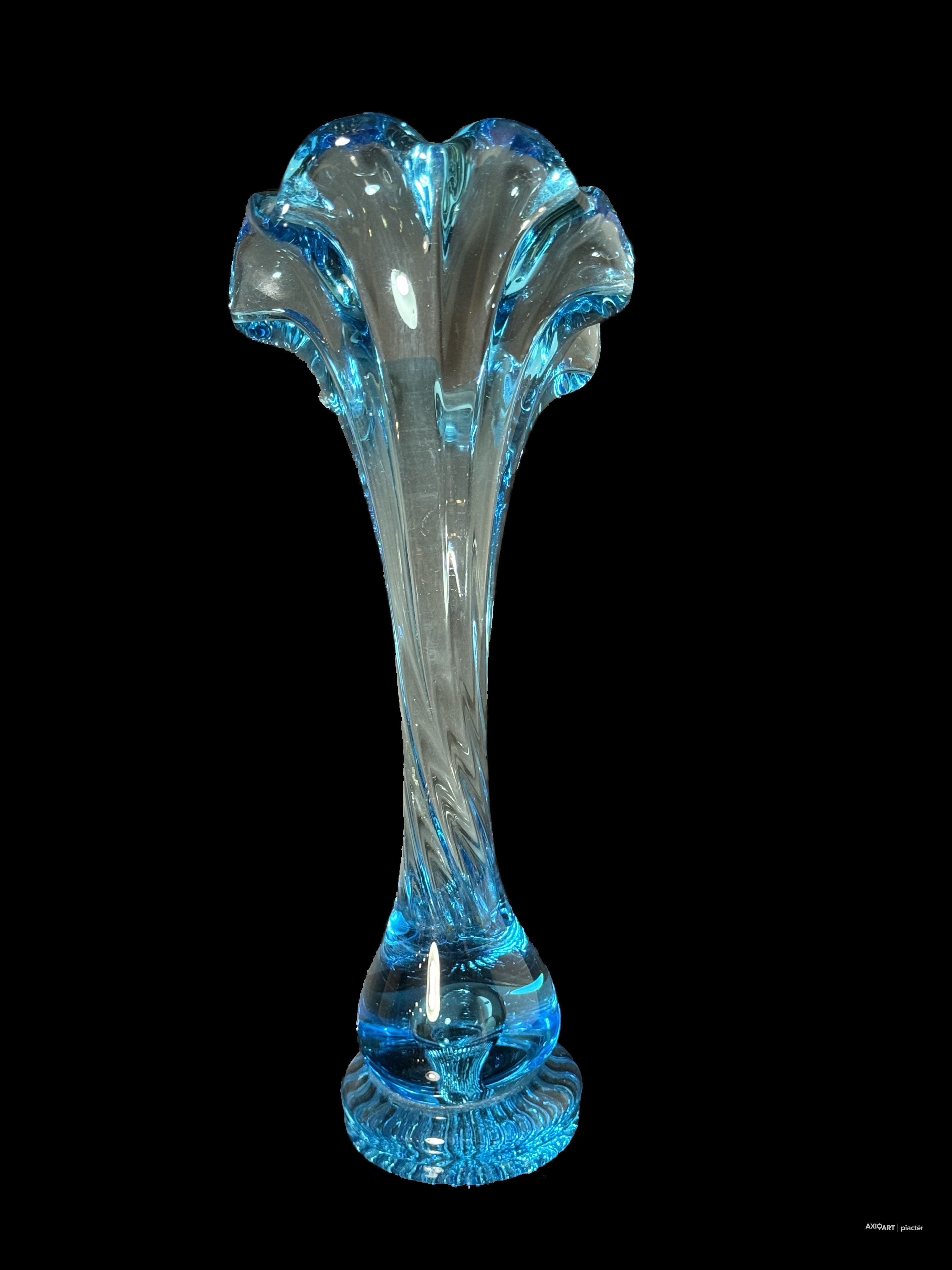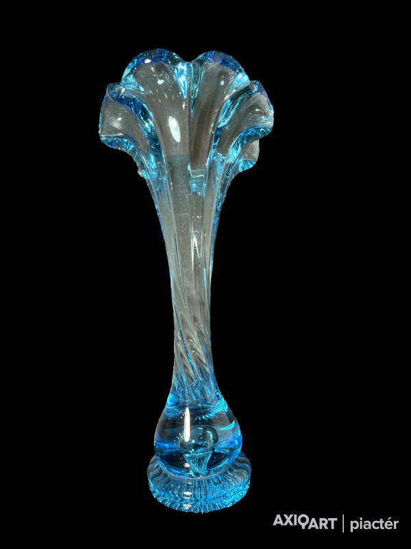 Kék cseh üveg tulipán váza
