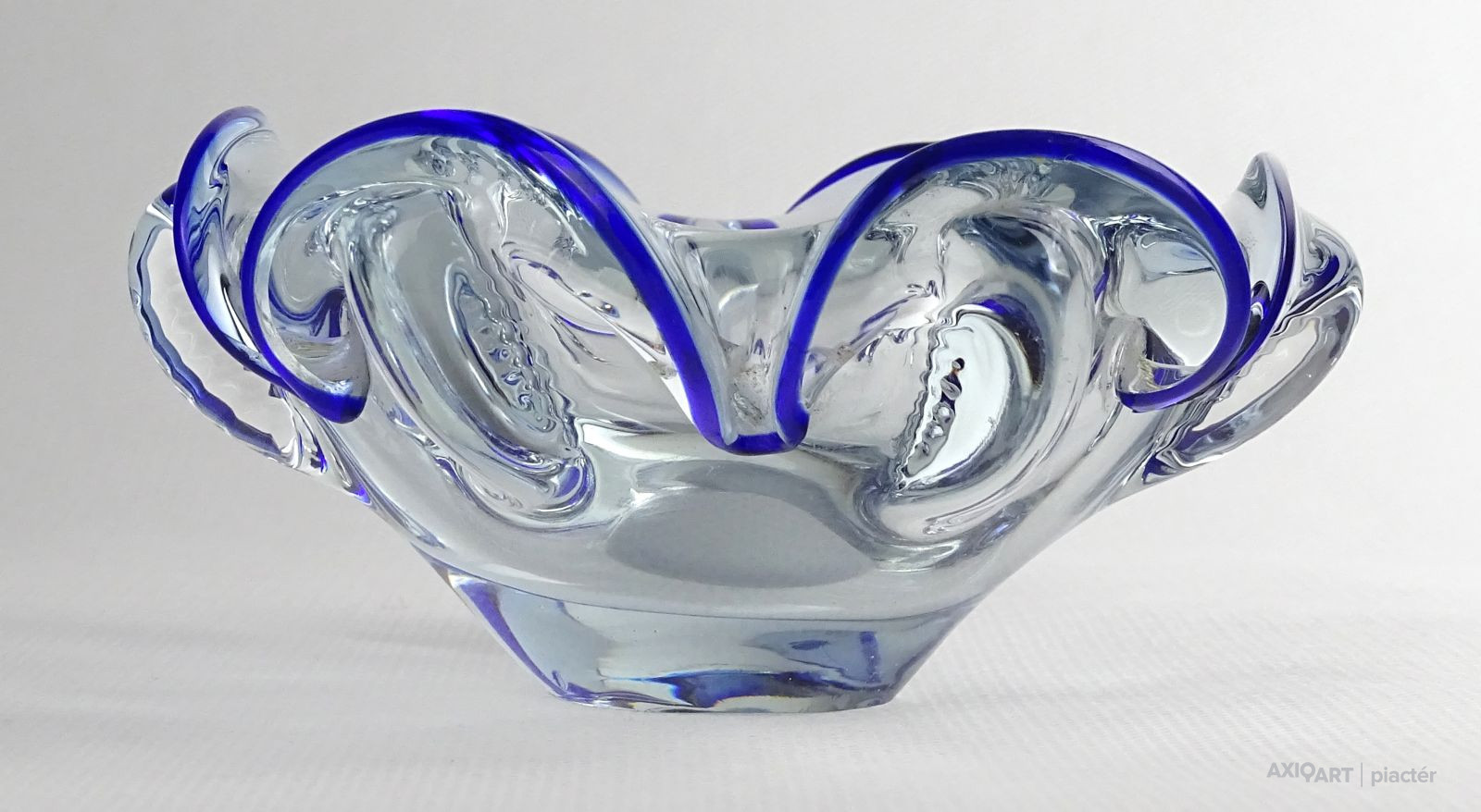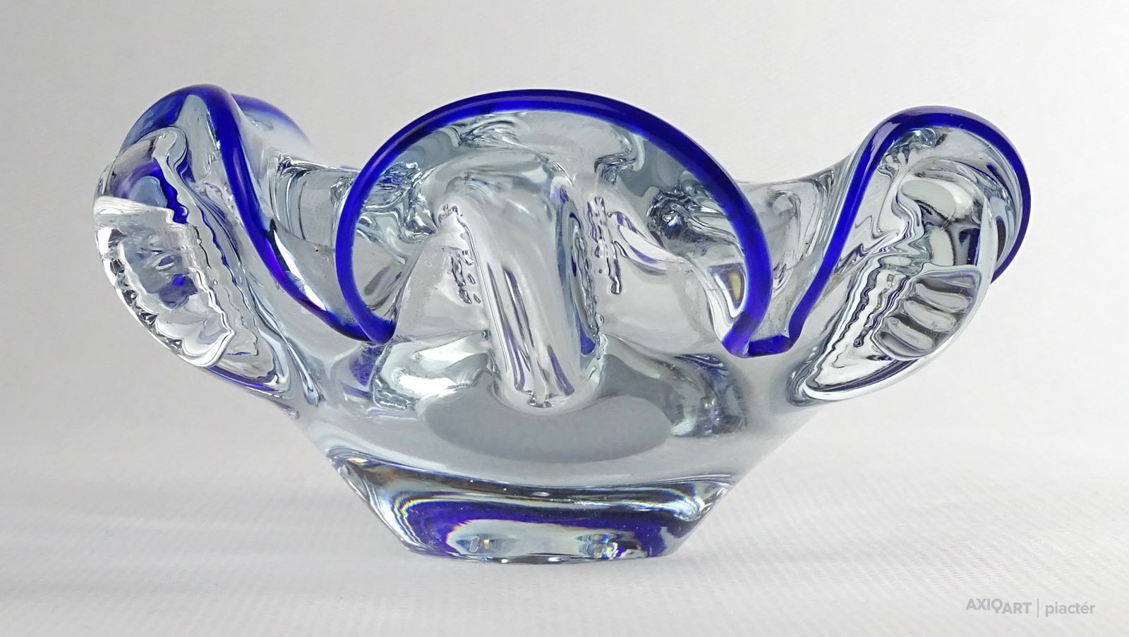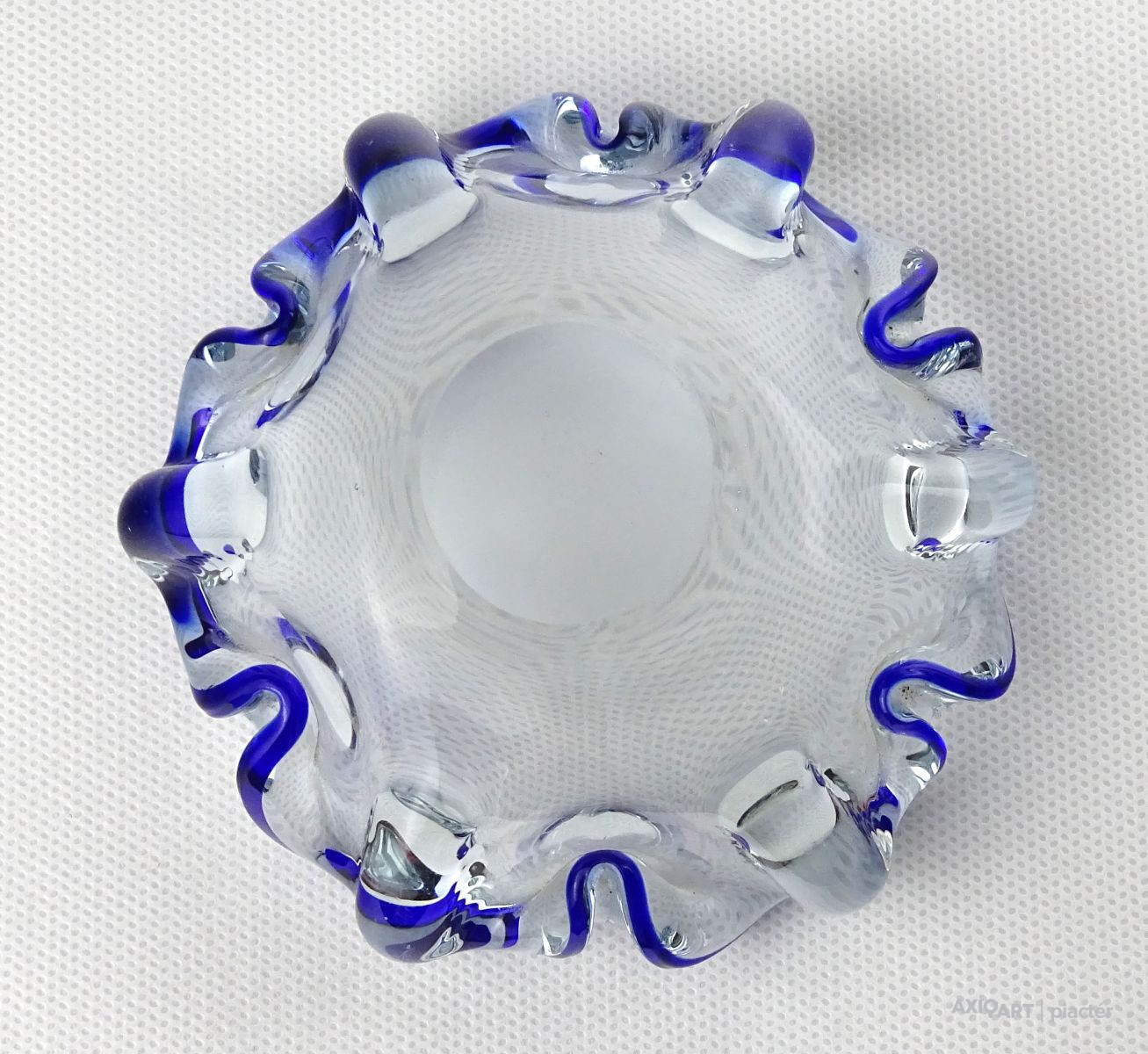 Hibátlan állapotú, kékkel színezett művészi üveg, fújt üveg dísztárgy, hamutál, a XX. század második feléből.