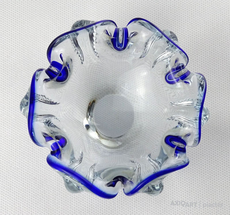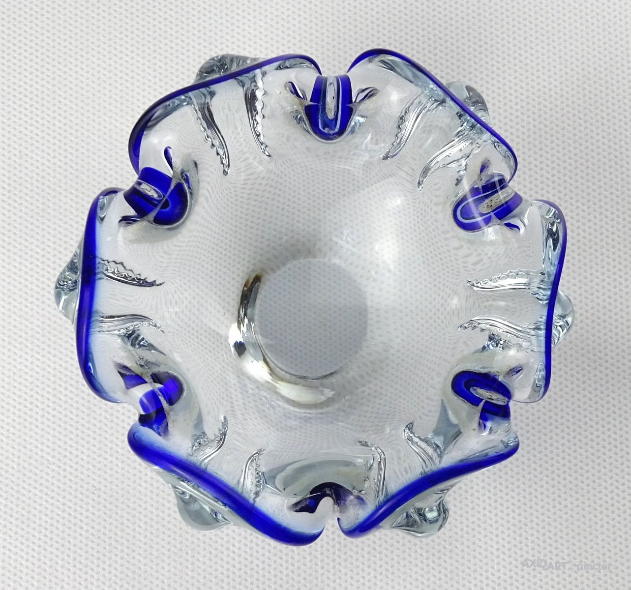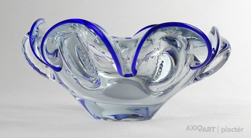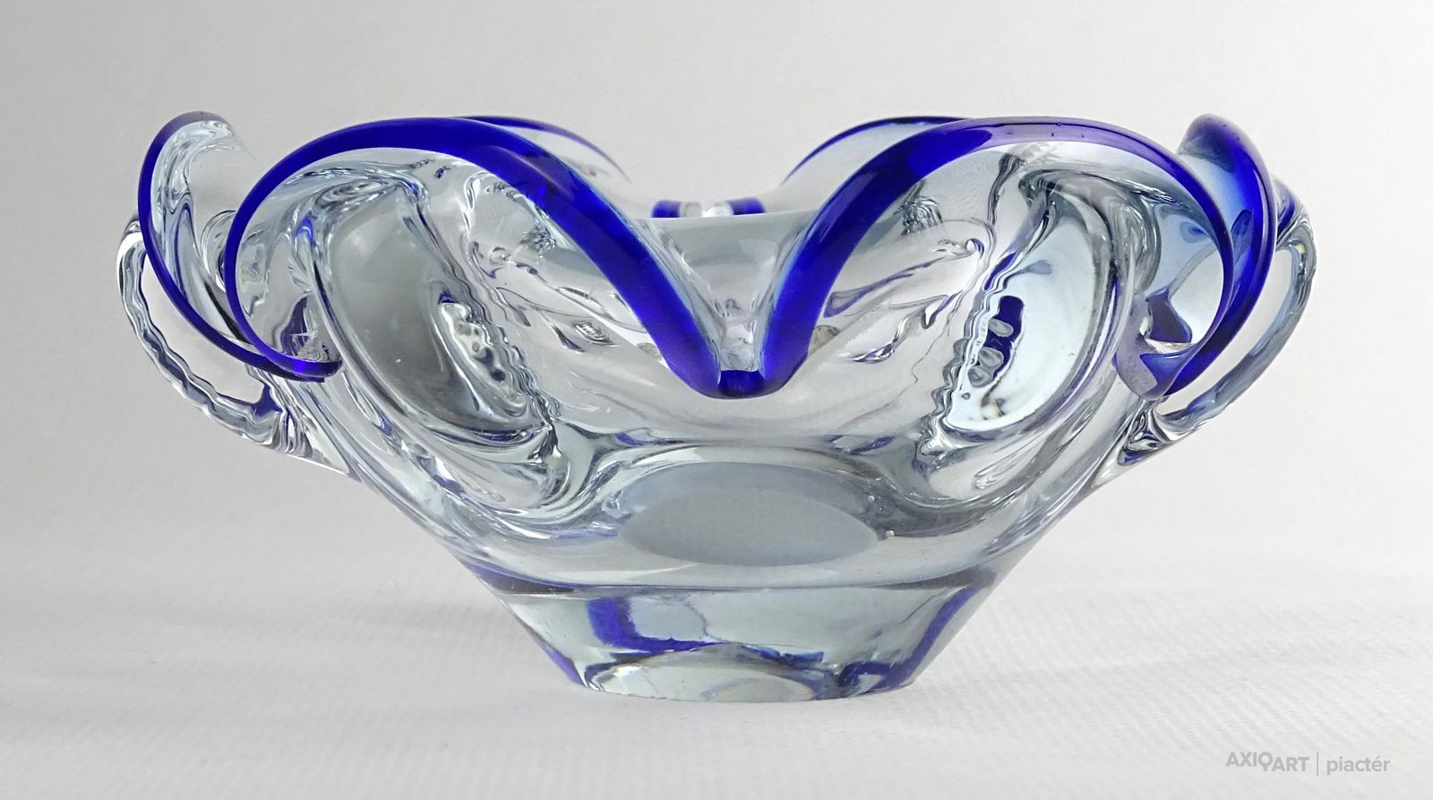 Hibátlan állapotú, kékkel színezett művészi üveg, fújt üveg dísztárgy, hamutál, a XX. század második feléből.