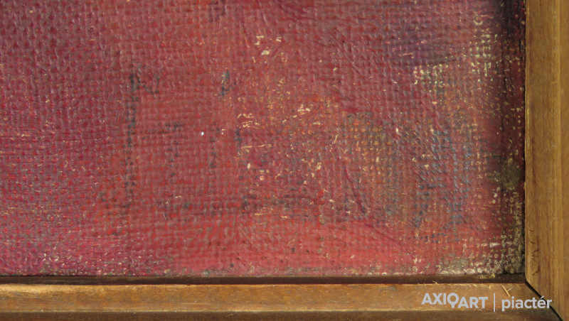 [FK0037/Z018] A kép mérete: 50 x 70 cm keret nélkül. Készült: Olaj, Vászon A kép Paizs László (Szentpéterúr, 1935) alkotása. Jelezve Jobbra lent "P. L." A festmény jó állapotban van. Keret: Ép A festmény hátoldalán a Képcsarnokvállalat címkéje található. Magyar festők és grafikusok életrajzi lexikona I-II. Festő. Tanulmányait a budapesti Iparművészeti Főiskolán végezte 1959-ben. Z. Gács György, Rákosy Zoltán és Szentiványi Lajos növendéke volt. A '60-as évek első felében hagyományosabb felfogású olajképeket festett, mozaikokat, freskókat, utóbb a pop-art körébe tartozó, a francia Arman munkáival rokon műveket alkotott. 1961 óta kiállító művész. Egyéni (Fényes Adolf Terem, Csók Galéria, Műcsarnok, Magyar Nemzeti Galéria, Halászbástya, Bástya Galéria, Vigadó Galéria, Budapest Galéria, Győr, Szombathely, Szeged, Zalaegerszeg, Duisburg, Aix-en-Provence, stb). és vegyes (Ernst Múzeum, Műcsarnok, Óbuda Galéria, Magyar Nemzeti Galéria, Csók Galéria, Vigadó Galéria, Székesfehérvár, Kaposvár, Pécs, Hódmezővásárhely, Firenze, Milano, Padova, Nápoly, Velence, Düsseldorf, Aachen, Genf, stb) tárlatokon vett részt. 1980-ban Munkácsy-díjjal jutalmazták, 1988-ban Érdemes Művész kitüntető elismerésben részesült. Munkáit őrzi a Magyar Nemzeti Galéria, a Fővárosi Képtár, a szombathelyi képtár, a pécsi Janus P. Múzeum, a székesfehérvári István Király Múzeum és a dunaszerdahelyi Kortárs Magyar Galéria. (H.B.: Műv, 1972/4, K.Gy.: Műv. 1977/2, K.G.: Műv. 1978/10, M.L.: Műv, 1983/5, R.G.: Műv, 1987/9, Sz.Gy.: Új Műv. 1995/4, MK) Magyar festők és grafikusok életrajzi lexikona I-II. Műgyűjtők és kereskedők kézikönyve Festő. Tanulmányait a bp.-i Iparművészeti Főiskolán végezte. Mozaikokat ferskókat, utóbb a pop-art körébe tartozó, a francia Arman műveivel rokon műveket alkotott. Mozaikok: a Szegedi Megyei Tanács, a Pécsi Óvoda, a Gödöllői Agrártudományi Egyetem. Freskók: Budapest - Csatárka úti Gyermekotthon. 1971-ben a Fényes Adolf Teremben volt kiállítása, 1983-ban pedig a szegedi Móra Ferenc Múzeumban nagyszabású tárlatokon mutatta be munkáit. 1988-ban érdemes művész kitüntető elismerésben részesült. (MK) Magyar festők és grafikusok adattára Az Iparművészeti Főiskolán végzett 1959-ben. Mozaikokat (Szeged, Megyei Tanács; Pécs, Óvoda; Gödöllő, Agrártudományi Egyetem), freskókat (Budapest, Csatárka úti Gyermekotthon), újabban a pop art körébe tartozó, a francia Arman műveivel rokon műveket alkotott. 1971-ben a Fényes Adolf Teremben nyílt kiállítása. 1983 februárjában a szegedi Móra Ferenc Múzeumban megrendezett nagyszabású tárlaton mutatta be alkotásait. 1988-ban érdemes művész kitüntető elismerésben részesült. - MK Művészeti lexikon I-IV. (Szentpéterur, 1935. dec. 26.- ): festő. Az Iparművészeti Főiskolán 1959-ben végzett Rákosy Zoltán, Z. Gách György és Szentiványi Lajos növendékeként. Épületdiszítő mozaikokat, (Szeged, Megyei Tanács, 1961; Pécs, Óvoda, 1964), műanyagfreskókat (Bp., Csatárka úti Gyermekotthon, 1964) és gobelinterveket készít. Kortárs magyar művészeti lexikon I-III. Festő, szobrász, grafikus. 1959: MIF, mesterei: Z. Gács György, Rákosy Zoltán, Szentiványi Lajos. 1980: Munkácsy-díj; 1988: érdemes művész. Főiskolás éveinek második felében, majd azt követően számos murális munka kivitelezésében vett részt, Fónyi Géza, Konecsni György, Z. Gács György, Rákosi Zoltán és Domanovszky Endre mellett dolgozva. A 60-as évek első felének hagyományosabb fölfogású olajképeket festett. 1964-ben a Velencei B.-n megismerkedett az amerikai pavilonban a pop art Európában akkor még újnak számító törekvésével, és részben ez inspirálta, hogy 1967-ben textil, fém, bőr anyagú "varrottas" képeket küldjön az FKS éves tárlatára; a megnyitó előtt többek között az ő munkáit is eltávolították a falról. A 70-es években pop art-os objekteket (A trónörököspár politikai gyilkosság áldozata lett, 1970, plexiüveg, újság, szarvasbogarak), majd konstruktív, átlátszó plexiüveg plasztikákat készített belső fénytörő határfelületekkel. A 80-as években készültek az anyagában színezett, konstruktív, nagyméretű poliészter szobrai, majd színes poliészter táblaképeket alkotott, mesterségesen roncsolt felületekkel, mintha régészeti leletek vagy atomtámadás utáni festmény-szurrogátumok lennének. Ekkor kezdett organikus plaszikájú bronzszobrokat is mintázni. A 90-es években, a táblaképek és szobrok mellett nagyméretű, egyedi grafikákat készített, formavilágában némileg a roncsolt táblaképekből kiindulva, de szinte kizárólag az emberi alakból elvonatkoztatott torzókat megjelenítve. Ek: 1966: Művészklub, Győr; 1971: Fényes A. T.; 1972: Bercsényi 28-30 G.; 1973: BME B-épület; 1976: Csók G.; 1977: G. Hildebrandt, Duisburg (NSZK); 1979: Bástya G., Halászbástya; Helyőrségi Műv. H., Nagyatád; József A. Műv. Közp., Szeged; Göcsej M., Zalaegerszeg; 1982: Bezzegh G., Küsnacht (CH); 1983: Móra F. M., Szeged; 1987: Műcsarnok (kat.); MNG; 1988: Pandora G., Badacsonytomaj; 1989: Parktheatter, Iserlohn (NSZK); Qualitas G.; Hevesi S. Színház, Zalaegerszeg; 1990: Vasarely Fondation (Ferdinánd Judittal, Fóth Ernővel), Aix-en-Provence (FR); 1994: Vigadó G.; 1997: Pest Center G.; 1998: Budapest G. (kat.); 1999: Pest Center G. (kat); G. Arcis, Sárvár; MMA, Bp.; 2001: SZK, Szhely; Ernst M. (kat.) Vcsk: 1961, 1964, 1966: FKS, Ernst M.; 1962: 9. Magyar Képzőműv. kiállítás, Műcsarnok; 1967: Mai magyar festészet, Új-Delhi; 1969: Vas megyei művészek, Savaria M., Szhely; V. Orsz. Grafikai B., Miskolc; 1971: Új művek, Műcsarnok; 1972: Fiatal művészek Budapestről. Likovni Salon, Újvidék (YU); 1972, 1973: Balatonboglár