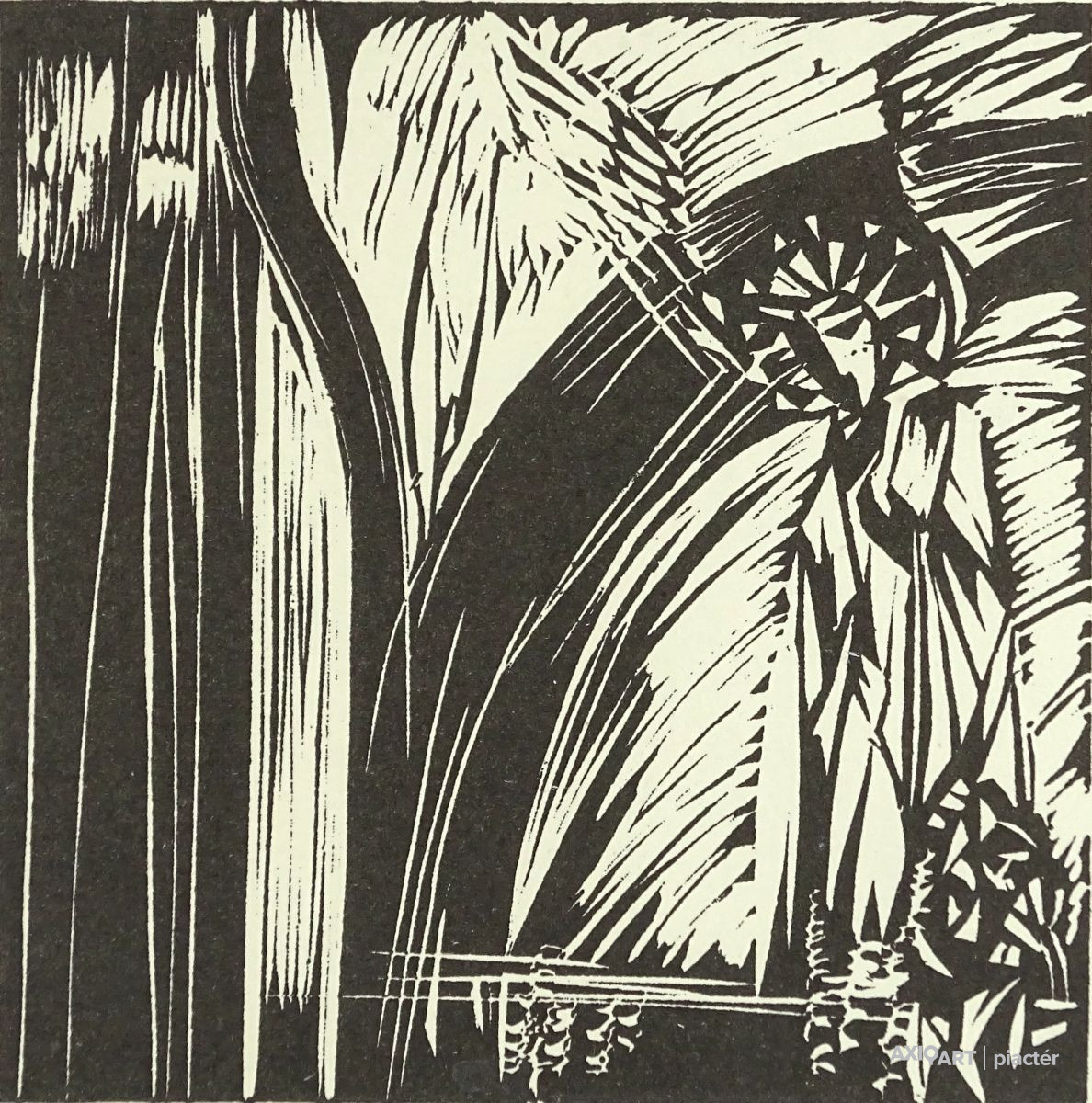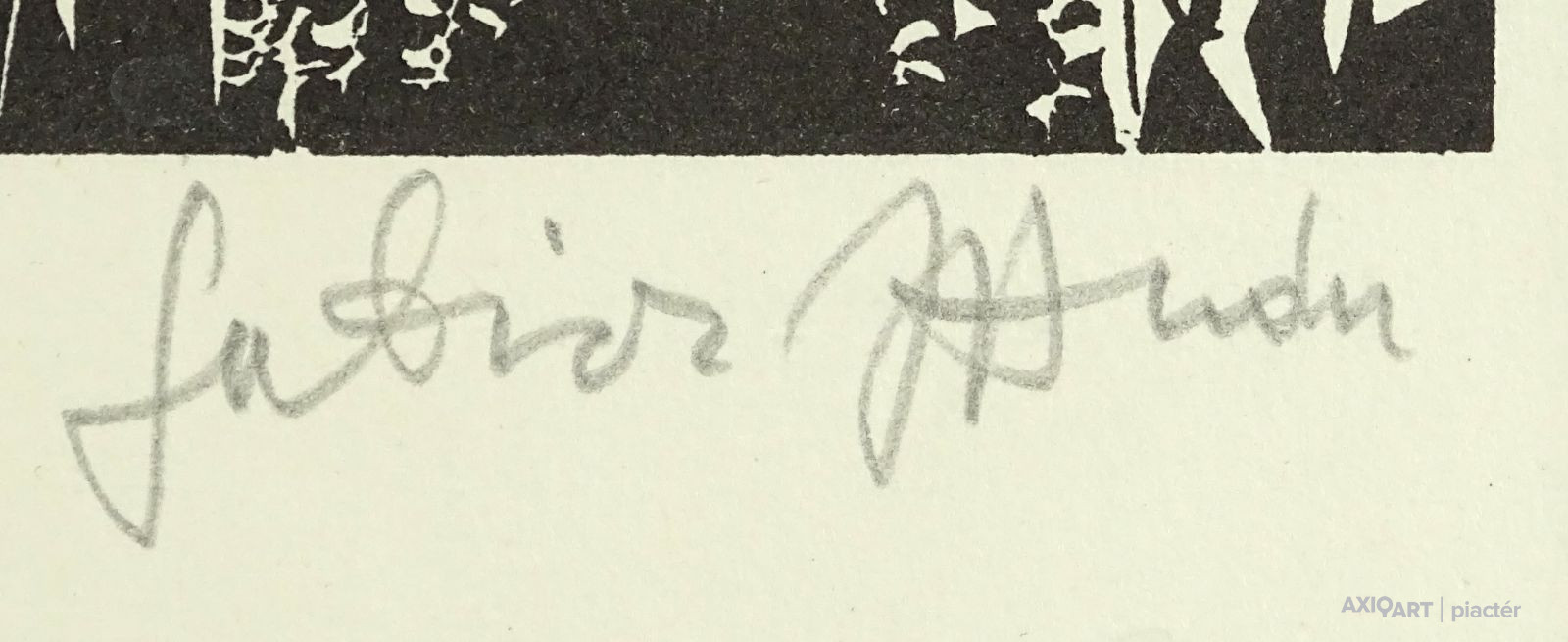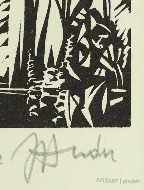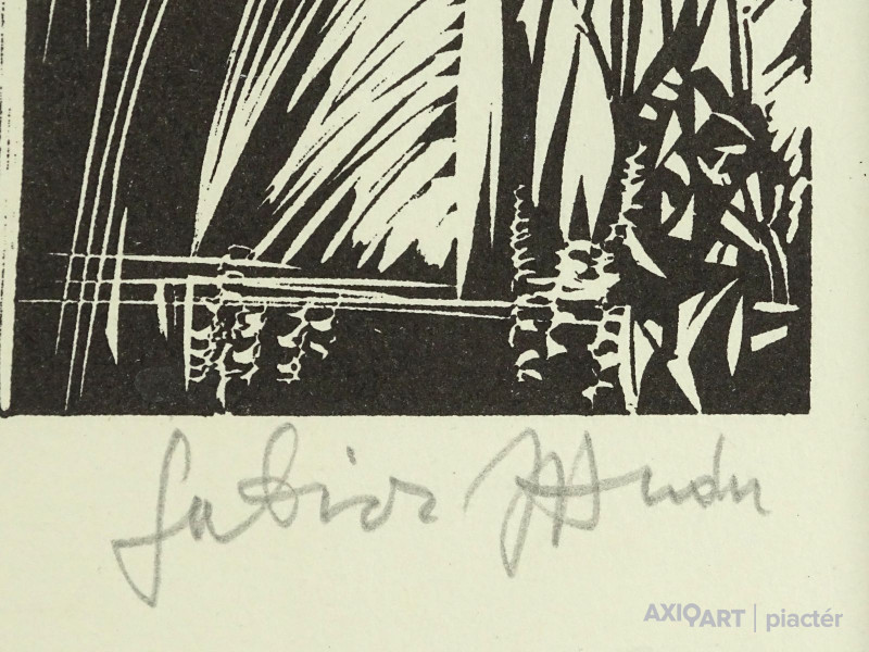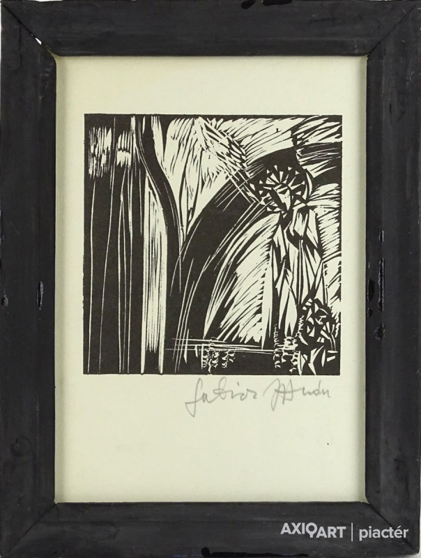 [1P465/129] Papír fametszet üveglap mögött, fekete keretben. Akasztási lehetőséggel rendelkezik. Jelzés jobbra lent: ... Magasság: 21 cm Szélesség: 16 cm Súly: 0.28 kg
