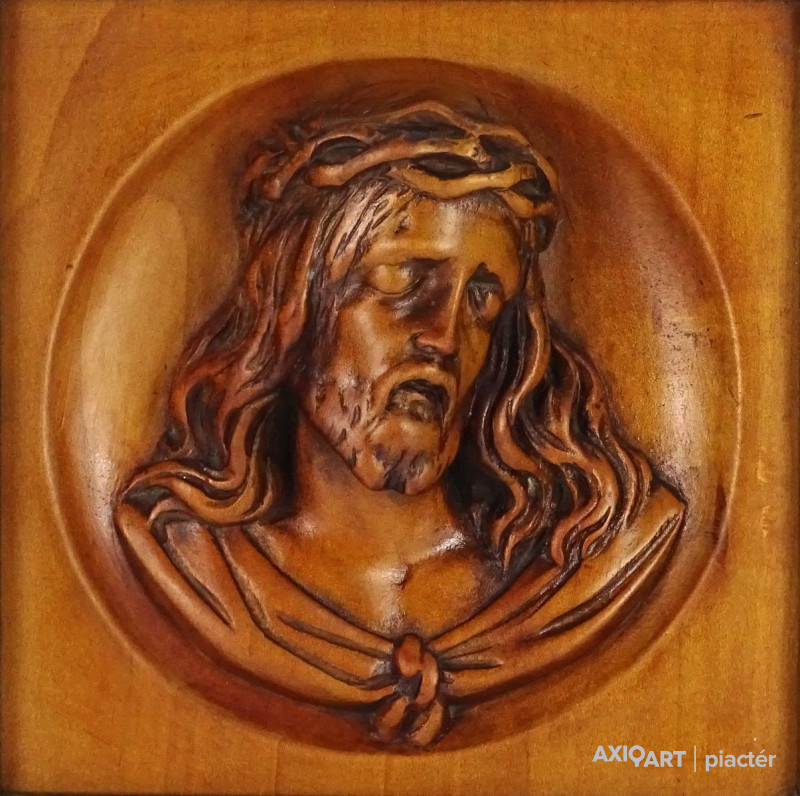 Keretezett Jézus portré fafaragás 25.5 x 25.5 cm