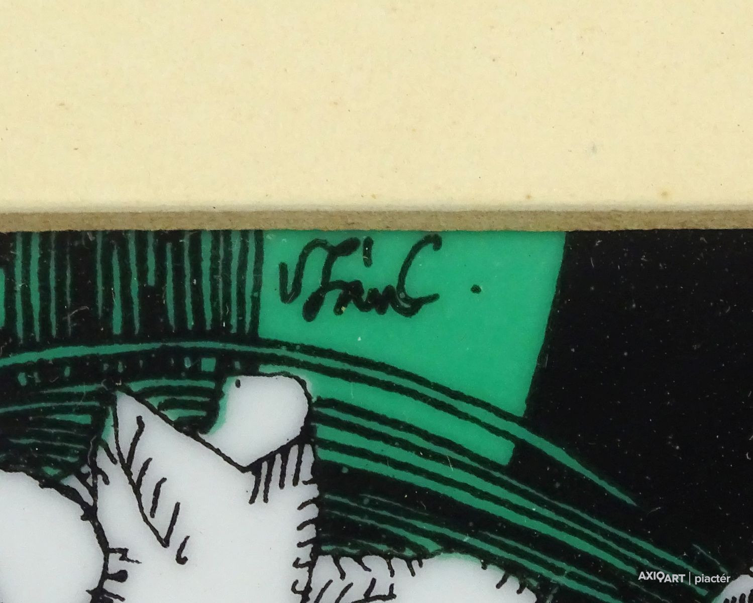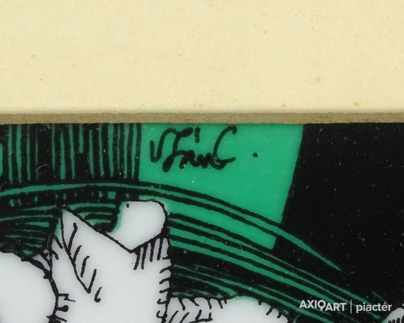 Hibátlan állapotú, zölddel színezett Szász Endre porcelán plakett, paszpartuban, aranyozott keretben. Falra akasztási lehetőséggel rendelkezik. A képen Szász Endre szignója a minta között feketével megtalálható!