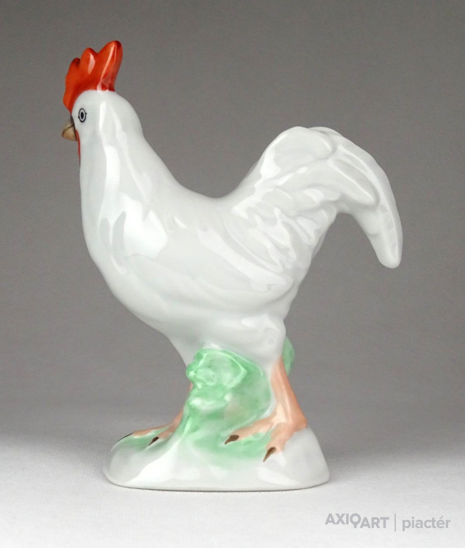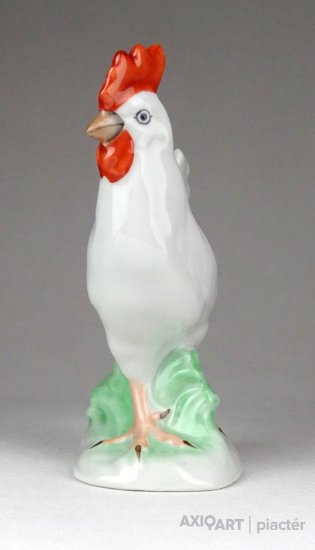 Hibátlan állapotú, hófehér Herendi porcelán figura, kakas talapzaton.
