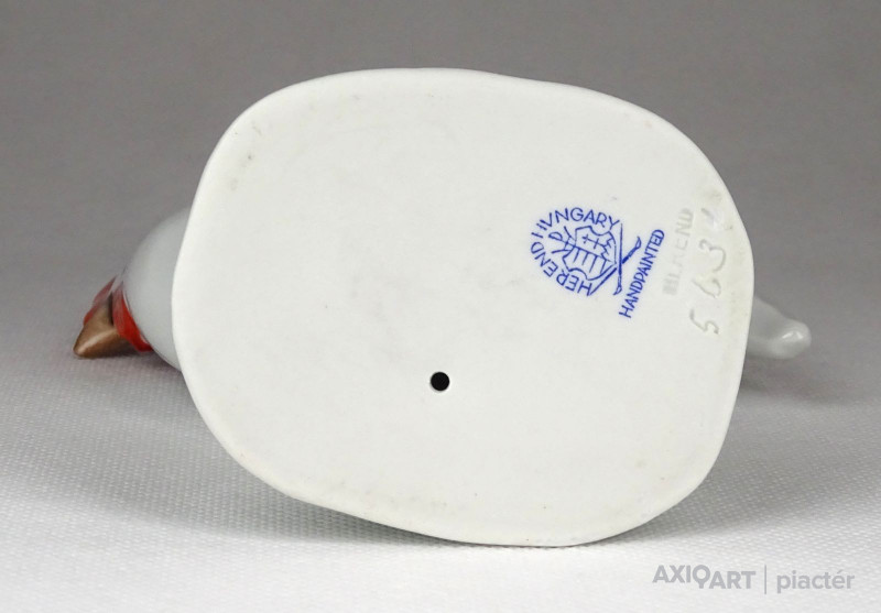 [1F797/BX-8] Hibátlan állapotú, hófehér Herendi porcelán figura, kakas talapzaton. Alján kék Herendi jelzés: HEREND HUNGARY HANDPAINTED Alján mélynyomású jelzés: HEREND Formaszám: 5631 Magasság: 13.7 cm Szélesség: 11 cm Súly: 0.19 kg