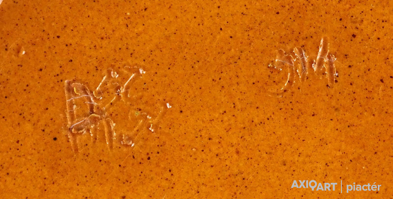 [1P052/X046] Retro csorgatott mázas hibátlan állapotú iparművészeti kerámia váza, díszváza, virágváza. Alján karcolt jelzés, lásd fotó. Magasság: 26 cm Szélesség: 9 cm Súly: 0.805 kg B.Várdeák Ildikó keramikus Abony, 1929-05-13 Névváltozat: Bődy Oszkárné 1953-ban diplomázott a Magyar Iparművészeti Főiskolán Gádor István és Borsos Miklós növendékeként. 1971-ben és 1972-ben részt vett a Siklósi Kerámia Szimpóziumon. 1979: Faenza, aranyérem [Bődy Oszkárral]; 1980: Patikaedény-kiállítás, aranyérem, Gualdo Tadino. Kezdetben porcelán- és kerámiaedények tervezésével, kivitelezésével foglalkozott, majd kerti plasztikákat készített samottos agyagból. Jelenleg cserépkályhát, kandallót tervez és kivitelez, valamint régi épületkerámiák restaurálásával foglalkozik. Irodalom Mai magyar iparművészet. Kerámia, porcelán, üveg, Budapest, 1975. Egyéni kiállítások Egyéni kiállítások 1971 • Népház, Budapest-Óbuda 1980 • Faipari Szakiskola, Budapest 1992 • Angelika Cukrászda, Budapest. Válogatott csoportos kiállítások Válogatott csoportos kiállítások 1955 • Fiatal Iparművészek Kiállítása, Ernst Múzeum, Budapest 1955, 1959, 1965 • 2., 4., 5. Országos Iparművészeti kiállítás, Műcsarnok, Budapest 1958 • Magyar Iparművészek Kiállítása, Világkiállítás, Brüsszel 1959 • Magyar Képzőművésznők II. kiállítása, Műcsarnok, Budapest 1960 • Képzőművésznők nemzetközi kiállítása, Műcsarnok, Budapest 1963 • Modern magyar kerámia, Royal Festival Hall, London 1966 • Gádor István és tanítványai kiállítása, Ernst Múzeum, Budapest 1967 • Kerámia kiállítás, Vármúzeum, Siklós 1968, 1972, 1975, 1978, 1980 • I., III-VI. Országos Kerámia Biennálé, Pécs 1968, 1972, 1977, 1979 • Nemzetközi Kerámia Kiállítás, Faenza 1971, 1972 • Kerámia Szimpozion, Siklós 1972 • Edénykultúra, Műcsarnok, Budapest 1974 • Mai Magyar Iparművészet II., Iparművészeti Múzeum, Budapest 1975 • Jubileumi Iparművészeti Kiállítás, Műcsarnok, Budapest 1979 • Nemzetközi Kerámia Kiállítás, Sopot 1980 • Művészek az üzemekben, Magyar Nemzeti Galéria, Budapest 1982 • Magyar Kerámia, Palazzo delle Esposizione, Faenza 1983 • Nemzetközi Kerámia Kiállítás, Perugia – Gualdo Tadino 1995 • XX. századi magyar keramikusok. Válogatás az Iparművészeti Múzeum gyűjteményéből, Iparművészeti Múzeum, Budapest 1998 • In Memoriam Tornyai, Tornyai János Múzeum, Hódmezővásárhely 1998 • Őszi kerámia kiállítás, Palme Ház, Budapest Művek közgyűjteményekben Művek közgyűjteményekben Forrás: artportal.hu