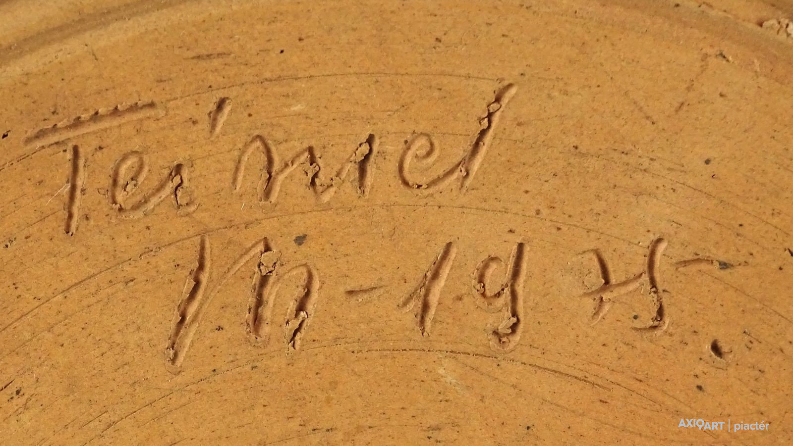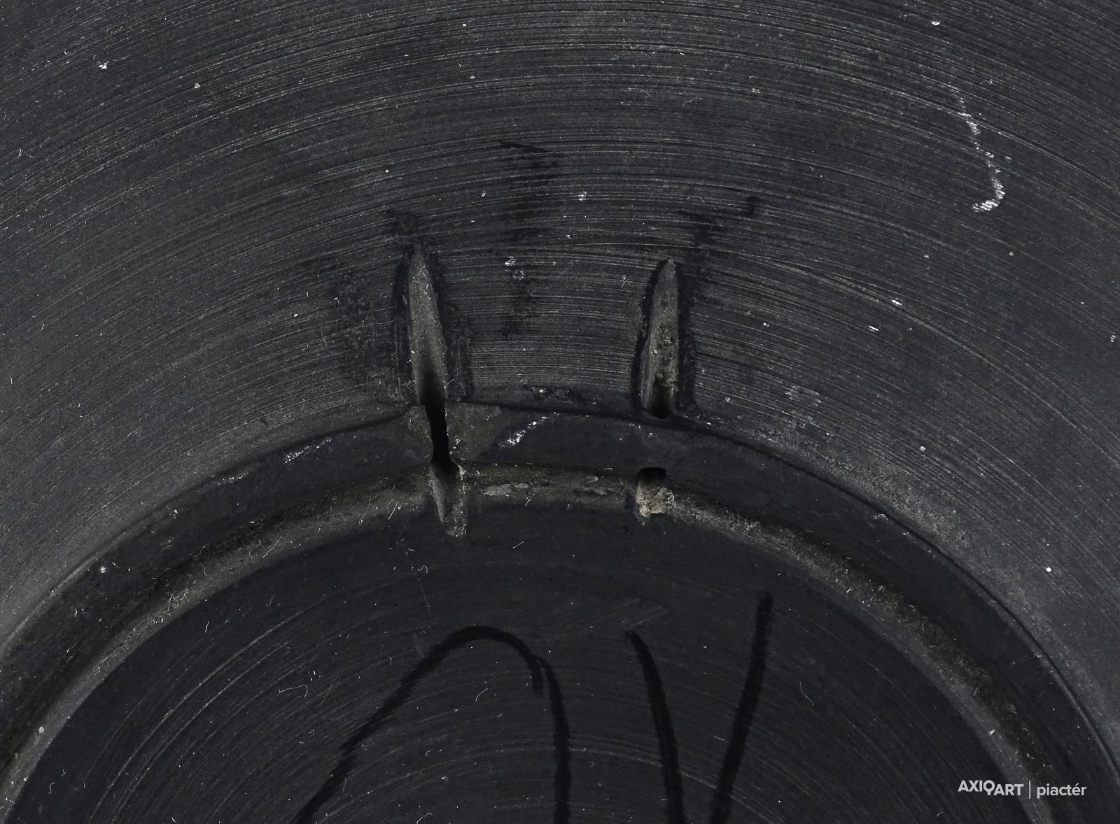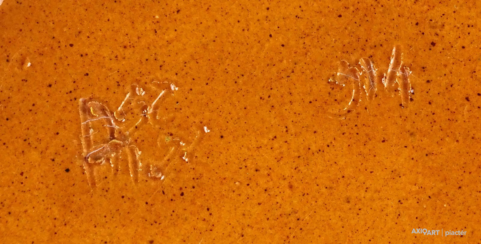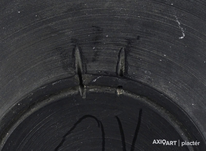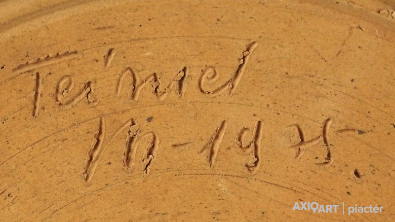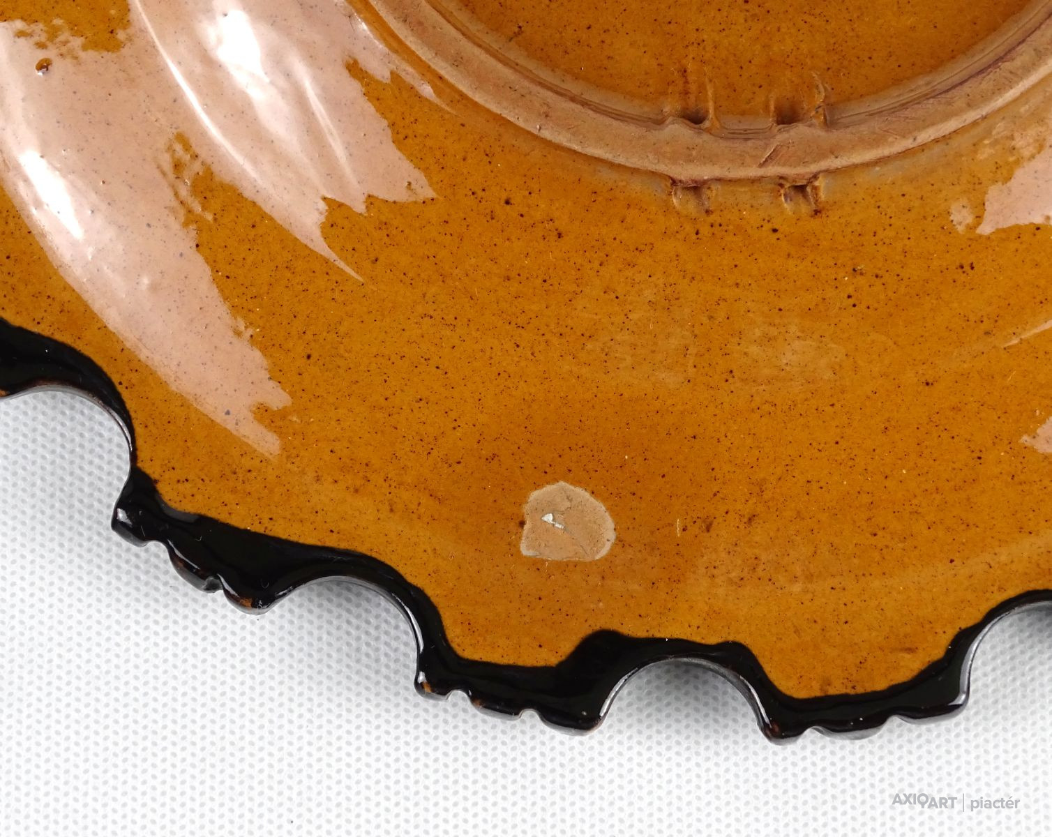 - 1 darab jelzett AISZ. cakkos szélű ónmázas kerámia fali tál (26.5 cm)