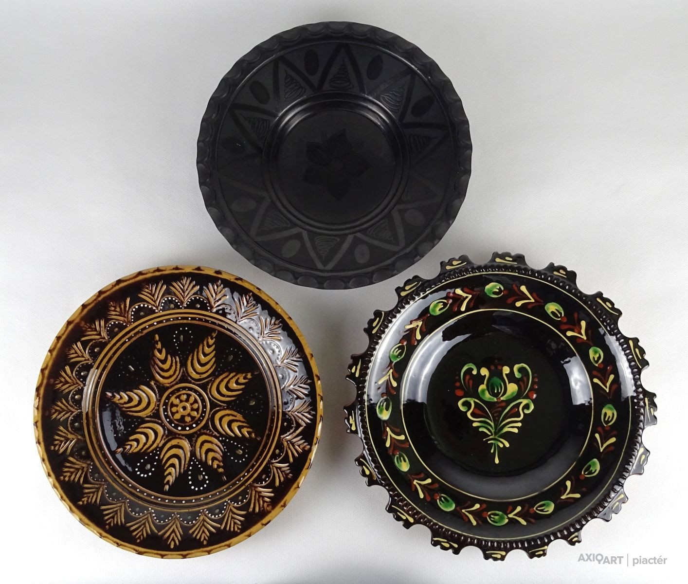 Kézzel festett mázas kerámia fali dísztányér trió TEIMEL -KARCAG - AISZ