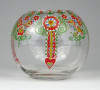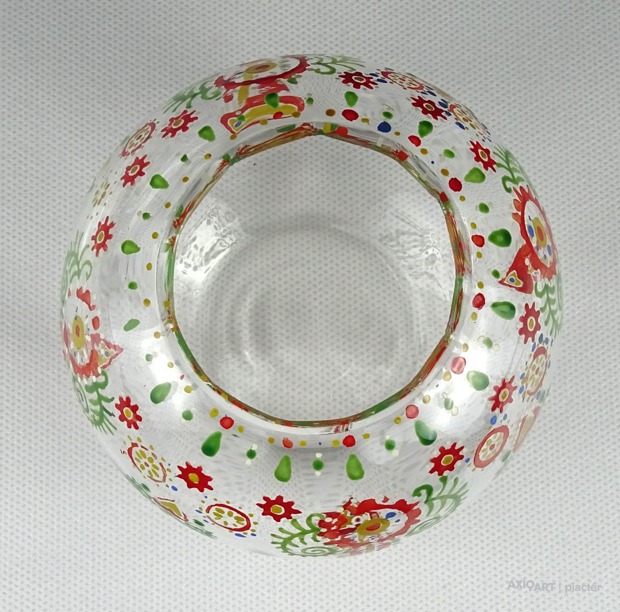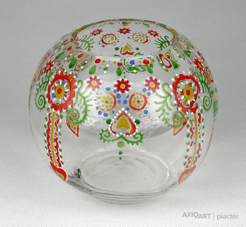 Kézzel festett népi motívumos üveg váza gömbváza 9 cm