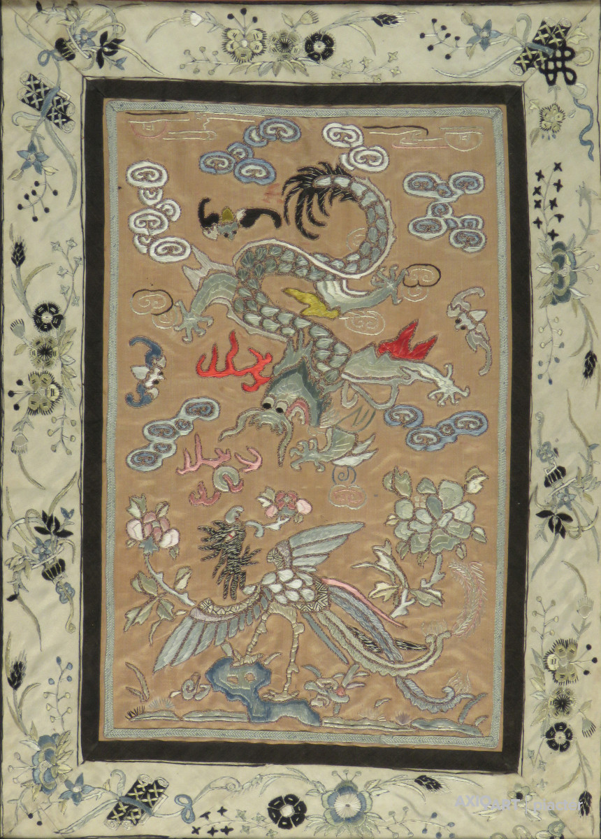 Kínai kézimunkahímzés 1900 körül : A sárkány harca