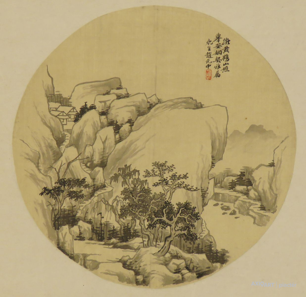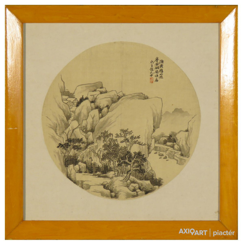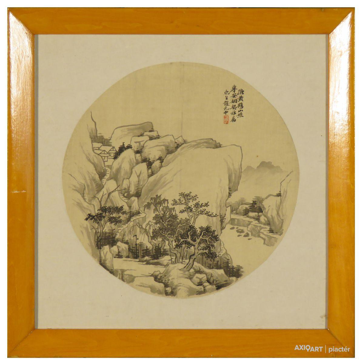 [FKB886/Bp205/108] A kép mérete: 25 x 25 cm keret nélkül. Készült: Lavírozott kínai tus, Selyem A kép Kínai művész 20. század alkotása. Jelezve jobbra fent "kínai jelzés és pecsét" A festmény jó állapotban van. Keret: Ép