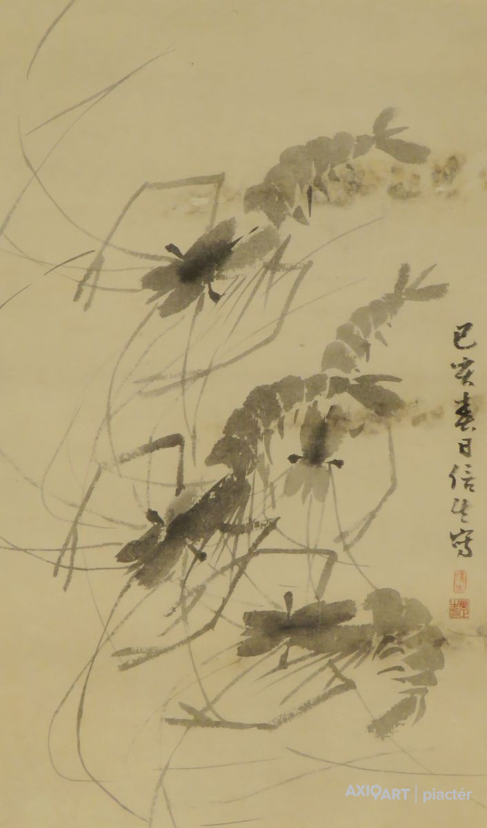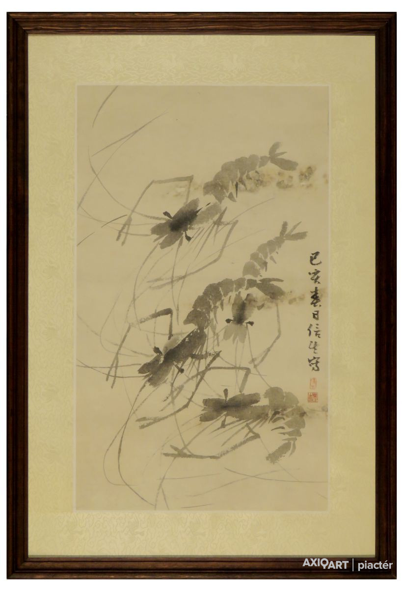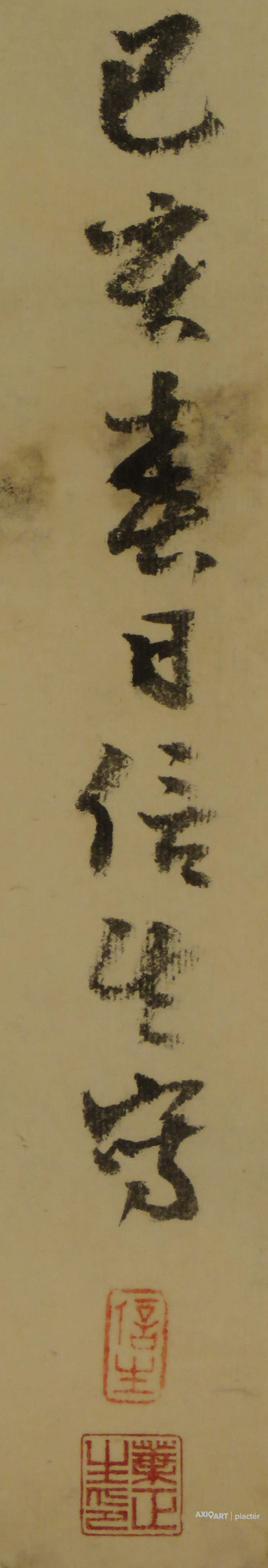 [FKB901/Bp303/70] A kép mérete: 58 x 34,5 cm keret nélkül. Készült: Vegyes technika, Papír A kép Kínai művész 20. század alkotása. Jelezve Jobbra középen "Kínai írásjegyek 2 pecséttel" A festményt több helyen nedvesség érte, több folt látható a felületén. Keret: Új Sérült (penészes)