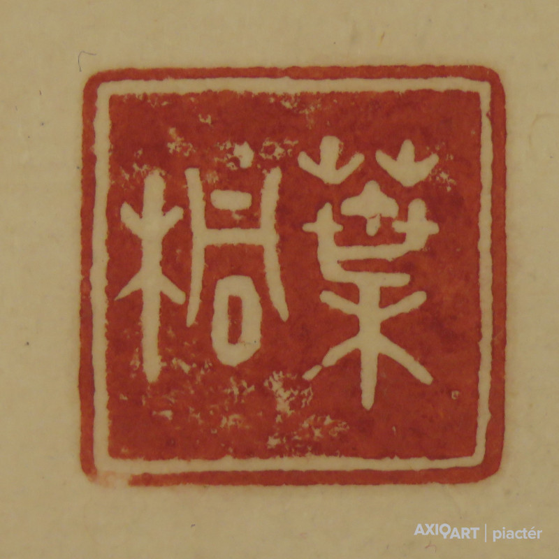 Jelezve Balra fent, jobbra lent "Kínai írásjel és pecsét, valamint további egy pecsét"