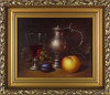 [FK2668/Bp301/4] A kép mérete: 50,5 x 80,5 cm keret nélkül. Készült: Olaj, Vászon A kép Moldován István (Kolozsvár, 1911) alkotása. Jelezve Jobbra lent "Moldován István" A festmény jó állapotban van. Keret: Ép A festmény hátoldalán a Képcsarnokvállalat raglapja láltható. Magyar festők és grafikusok életrajzi lexikona I-II. Festő. Tanulmányait Kolozsvárott, a Szépművészeti Főiskolán kezdte 1930-ban. A következő esztendőben a nagybányai Szépművészeti Iskolában Thorma János és Krizsán János korrektúráján képezte magát. 1931-ben a budapesti Képzőművészeti Főiskola hallgatója lett. Réti István, később Szőnyi István volt a mestere. Már mint főiskolás sok díjat és kitüntetést nyert. 1948-ban megkapta a római ösztöndíjat, de lemondva róla, Erdélybe ment. 1948-1950 között Erdélyben élt, és népművészetben gazdag vidékein festett. 1943-ban Kolozsvárott, 1946-ban Gyöngyösön, 1955-ben, 1959-ben és 1962-ben a Kulturális Kapcsolatok Intézetében, illetve a Csók Galériában rendezett egyéni bemutatókat. Ezen kívül több Európai országban, az USA-ban, Kanadában és Indiában is bemutatta munkáit. Eleinte sajátos atmoszférájú, lírai tájképeket, eleven színvilágú képmásokat festett, később mondernebb, erőteljesebben szerkesztett művekkel jelentkezett. A Pécsi Tanárképző Főiskola számára mozaikot készített. Erdély szerelmese volt. A székely népművészet gazdag formavilágának hatása döntő jelentőségűvé vált sokoldalú művészetében. Műv. díjak: a Szinyei Társaság elismerő oklevele, a Főváros festészeti-díja, "Kolozsvár a képzőművészetben" II. díj, állami ösztöndíj, római ösztöndíj, a Képzőművészek Szövetsége Észak-Magyarországi festészeti díja, SZOT festészeti díj. Több murális művet (mozaik) alkotott. A Magyar Nemzeti Galéria több alkotását őrzi. (M. L.: Műv. 1967/6, RI-NM) Magyar festők és grafikusok életrajzi lexikona I-II. Műgyűjtők és kereskedők kézikönyve Festő. Tanulmányait a kolozsvári Szépművészeti Főiskolán kezdte 1930-ban. A nagybányai szabadiskolában is megfordult. Itt Thorma János és Krizsán János korrektúráján képezte magát. 1931-ben Budapesten a Képzőművészeti Főiskola hallgatója lett. Réti István, később Szőnyi István volt a mestere. Már mint főiskolás sok díjat nyert. 1948-ban megkapta a római ösztöndíjat, de lemondva róla, Erdélybe ment. 1948-1950 k. Erdélyben élt, és népművészetben gazdag vidékein festett. 1943-ban Kolozsváron, 1946-ban Gyöngyösön, 1955-ben, 1959-ben és 1962-ben a Kulturális Kapcsolatok Intézetében, illetve a Csók Galériában rendezett önálló kiállítást. Ezen kívül több Európai országban, az USA-ban, Kanadában és Indiában is bemutatta műveit. Eleinte sajátos atmoszférájú, lírai tájképeket, eleven színvilágú képmásokat festett, később mondernebb, erőteljesebben szerkesztett művekkel jelentkezett. A Pécsi Tanárképző Főiskola számára mozaikot készített. Erdély szerelmese volt. A székely népművészet gazdag formavilágának hatása döntő jelentőségűvé vált sokoldalú művészetében. 1942-ben megkapta a Szinyei Társaság elismerését, és a Főváros festészeti-díjat,1943-ban elnyerte a "Kolozsvár a képzőművészetben" c. díjat. 1947-ben állami ösztöndíjat,1948-ban a római ösztöndíjat, 1972-ben a Képzőművészek Szövetsége Észak-Magyarországi festészeti díját kapta meg. A MNG több művét őrzi. (M. L.: Műv.-1976/6) Magyar festők és grafikusok adattára Tanulmányait Kolozsvárott a Képzőművészeti Főiskolán, majd Nagybányán Thorma János és Krizsán János irányítása mellett kezdte, 1931-től Budapesten megszakításokkal a Képzőművészeti Főiskolán Réti István és Szőnyi István növendékeként fejezte be. 1949-ben és 1950-ben ösztöndíjjal dolgozott Erdélyben, majd hosszú tanulmányutakra indult Nyugat-Európába, az Egyesült Államokba, s a Szovjetunióba. Először Kolozsvárott lépett a nyilvánosság elé 1943-ban, majd 1946-ban Egerben és Gyöngyösön, 1947-ben Miskolcon, 1948-ban Hatvanban, 1955, 1961 és 1981-ben a Csók Galériában, 1959-ben a KKI-ben, 1960-ban Nagykanizsán, 1963-ban Kiskunfélegyházán, 1966-ban Debrecenben, 1969 és 1975-ben Békéscsabán, 1971-ben a Mednyánszky Teremben, 1973-ban Gyöngyösön és Debrecenben, 1977-ben Egerben, 1979-ben Veszprémben, 1983-ban Miskolcon, 1984-ben Csepelen, 1986-ban a Vigadó Galériában rendezett önálló kiállítást. Külföldi kiállításai: Moszkva, Varsó, India, Szófia, Párizs, Bukarest, Belgrád, New York, Montreál és Toronto. Eddig közel kétezer színes táblaképet festett, de szívesen foglalkozik mozaikkészítéssel is. 1964-ben a Pécsi Pedagógiai Főiskola, 1968-ban a Salgótarjáni Kórház, 1969-ben a názáreti templom és 1970-ben a Videoton Vállalat díszterme részére mozaikot készített. - Erdély szerelmese. A székely népművészet gazdag formavilágának hatása döntő jelentőségűvé vált festészetében. Olyan formanyelvet alakított ki magának, amely színvilágában és summázó formaalakításában sajátos erdélyi zamat érződik, ugyanakkor korszerűen modern is konstruktivista stílusa. Munkásságát 1942-ben a Szinyei Társaság elismerésével és a Fővárosi festészeti-díjjal, 1943-ben Római-ösztöndíjjal, 1947-ben Állam ösztöndíjjal (Románai), 1963-ben a SZOT festészeti-díjával, 1972-ben a Képzőművészek Szövetsége Észak-Magyarországi festészeti-díjával tüntették ki. - Irod.: Bíró Béla: Kolozsváry Moldován István. Erdélyi Helikon, 1943.; Felvinczi Takács Zoltán: Kolozsváry Moldován István. Kolozsvár, 1943.; Dutka Mária: Magyar Nemzet, 1961.; Maksay László: Moldován István. Művészet, 1965.; D. Fehér Zsuzsa. Moldován István, Bp. 1971.; Theisler G