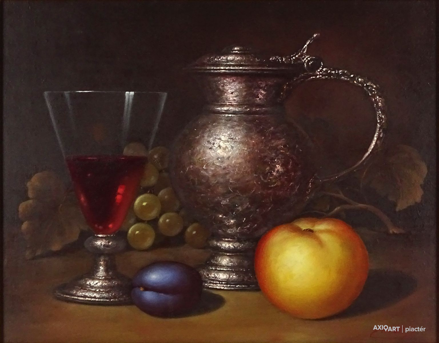 [FK3264/FL-4] A kép mérete: 31,5 x 70,5 cm keret nélkül. Készült: Olaj, tempera, Farostlemez A kép Kurucz D. István (Hódmezővásárhely, 1914, Budapest, 1996) alkotása. Jelezve Jobbra lent "Kurucz 977" A festmény jó állapotban van. Keret: Ép A festmény hátoldalán a Képcsarnokvállalat raglapja látható. Magyar festők és grafikusok életrajzi lexikona I-II. Festő, grafikus. Vásárhelyről, ahol Darvasy István festőművész figyelt fel tehetségére, került Szőnyi István magániskolájába. A fővárosi Képzőművészeti Főiskolának, ahol Rudnay Gyula, Réti István, Benkhard Ágost, Szőnyi István voltak a tanítómesterei 1940-ig volt a tanítványa. A monumentális festészetet Nagy Sándor tanította. Tanulmányúton járt több kelet- és nyugat-európai államban, Mongóliában, Japánban, Algériában. 1940-ben Hódmezővásárhelyen telepedett le, 1943-1947 között bekapcsolódott szülővárosa művészeti és közéletébe. A Vásárhely Népe c. lap munkatársa volt. 1949-59 között Szőnyi tanársegédjeként freskótechnikát tanított a főiskolán. 1951-52-ben megszervezte a Honvédségi Képzőművészeti Stúdiót, majd kinevezték a Honvéd Képzőművészeti Iskola igazgatójának. A vásárhelyi iskola reprezentáns egyéniségeként jelentős szerepe volt a Vásárhelyi Őszi Tárlatok elindításában. Megszervezete és vezette a Mednyánszky Társaságot, s haláláig művészeti vezetője volt a Hajdúböszörményi Nemzetközi Művésztelepnek. Évekig elnöke volt a Hortobágyi Alkotótábornak. Az alföldi parasztok életét megörökítő képei a falképek összefoglaló stílusában a népi realizmus és a dekoratív sommázás szellemében készültek. Számos falképet festett (Kossuth Akadémia, hódmezővásárhelyi iskola, stb.). 1941-től számos kisebb-nagyobb egyéni kiállítása volt, bemutatkozott több hazai és külhoni városban. 1941-től minden jelentősebb országos rendezvény és a magyar művészek külföldi bemutatóinak résztvevője. Rendszeresen szerepelt a Vásárhelyi Őszi Tárlatokon, a Hatvani Tájkép és Portrébiennálékon, a Szegedi Nyári Tárlatokon. Képei bemutatásra kerültek a vásárhelyi iskola jubileumi rendezvényein. 1962-ben több alkotásával szerepelt a Velencei Biennálén. Díjak: SZOT-díj, Munkácsy-díj, Érdemes és Kiváló Művész kitüntetés, Tornyai-plakett, római ösztöndíj, a Munka Érdemrend arany fokozata, Káplár Miklós-díj és emlékplakett, Kossuth-díj. Művei megtalálhatók minden jelentősebb hazai, több olasz és japán közgyűjteményben. (ML, D.J.: Műv. 1985/5, Tasnádi Attila adatközlése nyomán, L.L.: Műv. 1983/3) Magyar festők és grafikusok életrajzi lexikona I-II. Műgyűjtők és kereskedők kézikönyve Festő, grafikus. Vásárhelyről, ahol Darvasy István festőművész figyelt fel tehetségére, került Szőnyi István magániskolájába. A fővárosi Képzőművészeti Főiskolának, ahol Rudnay Gyula, Réti István, Benkhard Ágost, Szőnyi István voltak a tanítómesterei 1941-ig volt a növendéke. A monumentális festészetet Nagy Sándor tanította. Egy ideig tanársegédként működött Szőnyi mellett. Több ízben járt Itáliában tanulmányúton. Évekig művészeti vezetője volt a Hajdúböszörményi Nemzetközi Művésztelepnek. Az alföldi parasztok életét megörökítő képei a falképek összefoglaló stílusában a népi realizmus és a dekoratív sommázás szellemében készülnek. A II. világháború alatt szerepet vállalt a Szocialista Képzőművészek Csoportjának akcióiban. 1949-1960 k. a Képzőművészeti Főiskola falképtanszékének tanára volt. Több falképet festett (Kossuth Akadémia, hódmezővásárhelyi iskola, stb.). 1962-ben több alkotásával szerepelt a Velencei Biennálén, SZOT-díjas, Munkácsy-díjas, érdemes és kiváló művész kitüntető elismerésében részesült. (ML, D.J.: Műv.-1985/5, L.L: Műv.-1983/3) Magyar festők és grafikusok adattára Tanulmányait a Képzőművészeti Főiskolán végezte, ahol Rudnay Gyula és Réti István voltak a mesterei. 1941-1943-ban ösztöndíjas Rómában. 1943-1947 között Hódmezővásárhelyen dolgozik, egyidejűleg a Vásárhelyi Hétfő c. hetilap szerkesztője. 1949-1960 közötti években a budapesti Képzőművészeti Főiskola freskó tanszékének tanára. Az 1940-es évek eleje óta kiállító művész. 1962-ben a Velencei Biennálén állították ki műveit. 1970-ben Csók István Galériában volt kiállítása. A Vásárhelyi Őszi Tárlatok és a Szegedi Nyári Tárlatok rendszeres kiállító művésze. Az alföldi festészet egyéni hangú továbbfejlesztője. Táblaképeket, freskókat és kerámia falképeket alkot. Munkácsy-díjas, érdemes és kiváló művész kitüntető elismerésében részesült. A SZOT a legelső képzőművészek közt, 1962-ben tüntette ki díjával. A 70. születésnapját ünneplő művész 1984 decemberében életmű kiállítást rendezett műveiből a hódmezővásárhelyi Tornyai János Múzeumban. 1986-ban a budapesti Hollósy Galériában nyílt kiállítása. - Irod.: Szij Rezső: Kurucz Dezső István festőművész. Bp. 1967.; Kulcsár Ödön: SZOT-díjasok. Bp., 1981.; Lóska Lajos: Mindig freskót szerettem volna festeni. Beszélgetés Kurucz Dezső Istvánnal. Művészet, 1984. 3. Művészeti lexikon I-IV. Festő, Munkácsy-díjas. A Képzőművészeti Főiskolán Rudnay Gyula, Réti István, Benkhard Ágost, Szőnyi István növendéke volt 1934-40 között. Több ízben járt külföldi tanulmányúton. Az alföldi parasztok életét megörökítő képei a falképek összefoglaló stílusában a népi realizmus és a dekoratív sommázás szellemében készülnek. 1949-60 között a Képzőművészeti Főiskola falképtanszékének tanára volt. Több falképet festett (Kossuth Akadémia; Hódmezővásárhely, iskola, pápai pártház, 1965). Legutóbb 195