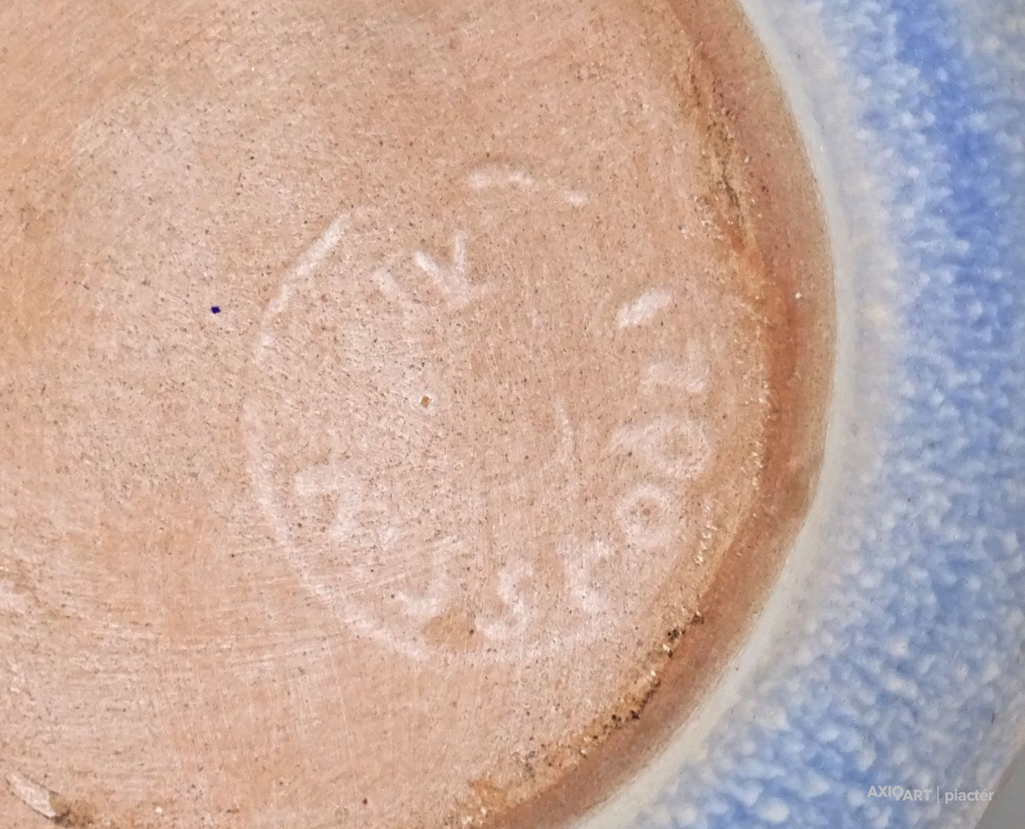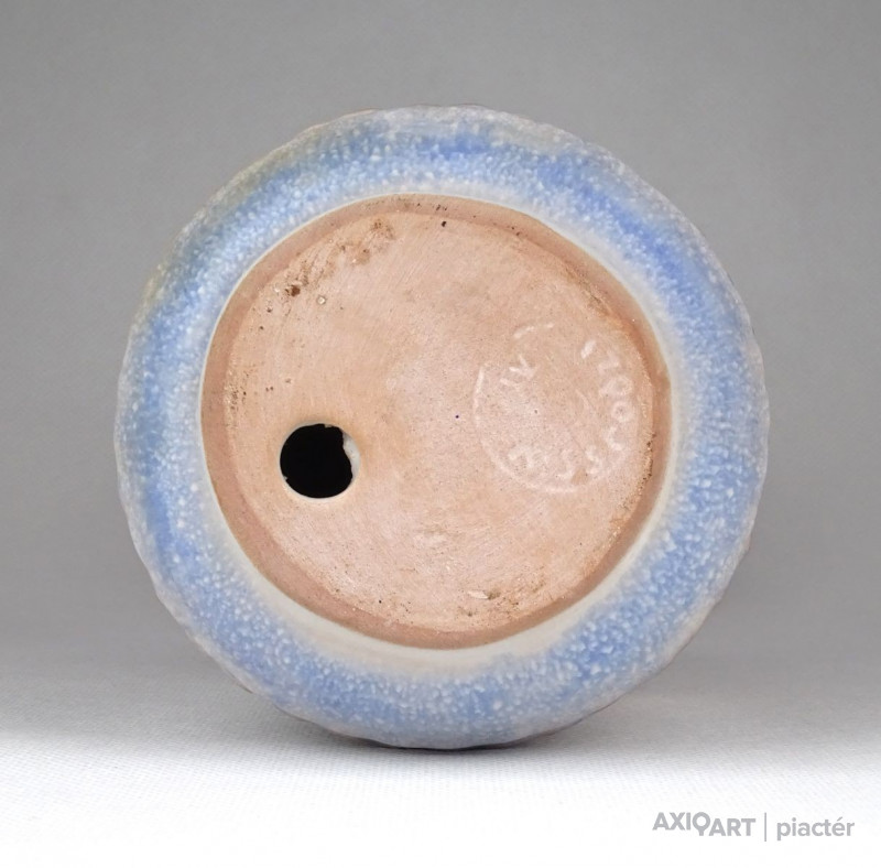 [1S294/Z059] Jelzett Kis Roóz Ilona kerámia figura. Felső peremén néhány kisebb elfestett lepattanás található, lásd fotó. Alján jelzés: KISS ROÓZ Magasság: 12.5 cm Szélesség: 11 cm Súly: 0.485 kg Kiss Roóz Ilona keramikus Születési hely: Szatmárnémeti [Satu Mare, RO] Születési dátum: 1920 Kiállítások az adatbázisban:  Kiss Roóz Ilona életműkiállítása Mesterei: Orbán Antal, Ohmann Béla. 1939-43: Iparművészeti Iskola, mesterei: Orbán Antal, Ohmann Béla. 1956, 1962: Munkácsy-díj; 1980: érdemes művész; 1984: SZOT-díj; 1994: MSZOSZ díja; 1995: Magyar Köztársasági Érdemrend Középkeresztje. A magyar kerámia Kovács Margit által teremtett naiv-népies irányzatának jeles művelője. Edényeit, kisplasztikáit, ill. murális alkotásait vidám színvilág és kedves humor jellemzi. 1948 és 1952 között tanított az Iparművészeti Főiskolán, azóta szabadfoglalkozású. Egyéni kiállítások 1964 ? Katona József Múzeum, Kecskemét 1973 ? Derkovits Galéria, Szombathely 1977 ? Csepel Vas és Fémművek, Budapest 1981 ? Kaesz Gyula Szakmunkásképző Intézet, Budapest 1983 ? Nógrádi Sándor Múzeum, Salgótarján 1987 ? Petőfi Művelődési Ház, Tiszaluc 1994 ? Petőfi Művelődési Ház, Tiszaluc 1995 ? Csók Galéria, Budapest [Pannonhalmi Zsuzsával és Sarkantyu Judittal] Válogatott csoportos kiállítások 1952 ? Iparművészeti kiállítás, Ernst Múzeum, Budapest IV. Országos Iparművészeti Kiállítás, Műcsarnok, Budapest Országos Iparművészeti Kiállítás, Műcsarnok, Budapest I., II. Országos Kerámia Biennálé, Pécs Magyar kerámia, Ankara, Isztambul XX. századi magyar keramikusok, Iparművészeti Múzeum, Budapest ? Az agyag mesterei, Vigadó Galéria, Budapest Őszi Kerámia Kiállítás, Olaf Palme Ház, Budapest Művek közgyűjteményekben Déri Múzeum, Debrecen ? Iparművészeti Múzeum, Budapest ? Janus Pannonius Múzeum, Pécs ? Kispréposti Palota, önálló gyűjtemény, Eger. Köztéri művei kerámia dombormű (1958, Pereces, bölcsőde) kerámia napóra (1959, Székesfehérvár, Béke téri iskola) csempeburkolat (1961, Szeged, rendelőintézet) falikép (kerámia, 1962, Sopron, Gyermekszanatórium) kerámia falikép (1966, Békéscsaba, bölcsőde) Irodalom GÁL J.: ~ 77 éves. Beszélgetés a művésszel, Magyar Iparművészet, 1997/4. KESZTHELYI K.-LACZKÓ I.: A magyar kerámiaművészet I., Alkotók, adatok 1945-1998, Budapest, 1999. Vadas József + MAOE Forrás: artportal