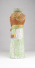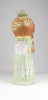 [0S004/X046] Hibátlan állapotú, kisméretű, jelzett kerámia nő figura, díszváza. Jelzés: KISS ROÓZ Magasság: 14.5 cm Szélesség: 7 cm Súly: 0.298 kg Kiss Roóz Ilona keramikus Születési hely: Szatmárnémeti [Satu Mare, RO] Születési dátum: 1920 Kiállítások az adatbázisban:  Kiss Roóz Ilona életműkiállítása Mesterei: Orbán Antal, Ohmann Béla. 1939-43: Iparművészeti Iskola, mesterei: Orbán Antal, Ohmann Béla. 1956, 1962: Munkácsy-díj; 1980: érdemes művész; 1984: SZOT-díj; 1994: MSZOSZ díja; 1995: Magyar Köztársasági Érdemrend Középkeresztje. A magyar kerámia Kovács Margit által teremtett naiv-népies irányzatának jeles művelője. Edényeit, kisplasztikáit, ill. murális alkotásait vidám színvilág és kedves humor jellemzi. 1948 és 1952 között tanított az Iparművészeti Főiskolán, azóta szabadfoglalkozású. Egyéni kiállítások 1966 • Csók Galéria, Budapest 1971 • Csók Galéria, Budapest 1980 • Budavári Ipaművészeti Bolt, Budapest 1984 • Petőfi Művelődési Ház, Tiszaluc 1989 • Kispréposti Palota, Eger (állandó kiállítás) 1992 • Bécs 1995 • Minigaléria, Miskolc 1996 • Petőfi Művelődési Ház, Tiszaluc 1997 • Derkovits Művelődési Központ, Tiszaújváros. Válogatott csoportos kiállítások 1947 • Karácsonyi kiállítás, Budapest • Fővárosi Művelődési Központ 1952 • Iparművészeti kiállítás, Ernst Múzeum, Budapest 1956 • Iparművészeti kiállítás, Iparművészeti Múzeum, Budapest 1958 • Magyar kerámia kiállítás, Vallauris 1959 • Magyar képzőművésznők kiállítása, Ernst Múzeum, Budapest 1959 • IV. Országos Iparművészeti Kiállítás, Műcsarnok, Budapest 1963 • Modern magyar kerámia, Royal Festival Hall, London 1965 • Országos Iparművészeti Kiállítás, Műcsarnok, Budapest 1968, 1970 • I., II. Országos Kerámia Biennálé, Pécs 1973 • Magyar kerámia, Ankara, Isztambul 1975 • Tárgy és alkotója, Iparművészeti Múzeum, Budapest 1982 • Magyar kézműves kerámia, Siklós 1995 • XX. századi magyar keramikusok, Iparművészeti Múzeum, Budapest • Az agyag mesterei, Vigadó Galéria, Budapest 1998 • Őszi Kerámia Kiállítás, Olaf Palme Ház, Budapest Művek közgyűjteményekben Köztéri művei kerámia dombormű (1958, Pereces, bölcsőde) kerámia napóra (1959, Székesfehérvár, Béke téri iskola) csempeburkolat (1961, Szeged, rendelőintézet) falikép (kerámia, 1962, Sopron, Gyermekszanatórium) kerámia falikép (1966, Békéscsaba, bölcsőde) Irodalom GÁL J.: ~ 77 éves. Beszélgetés a művésszel, Magyar Iparművészet, 1997/4. KESZTHELYI K.-LACZKÓ I.: A magyar kerámiaművészet I., Alkotók, adatok 1945-1998, Budapest, 1999. Vadas József + MAOE Forrás: artportal.hu