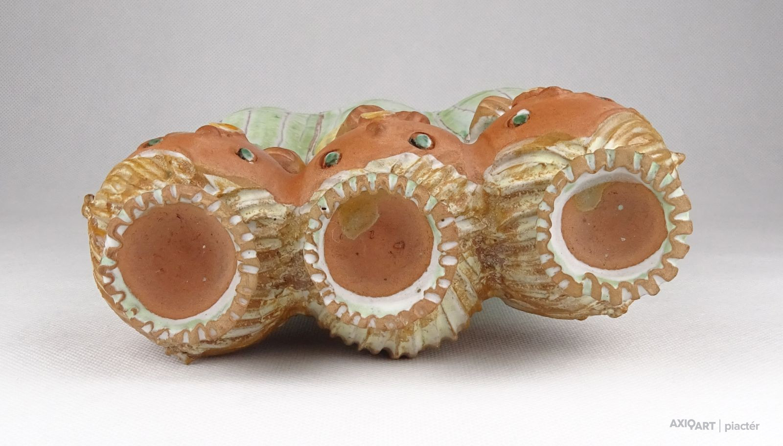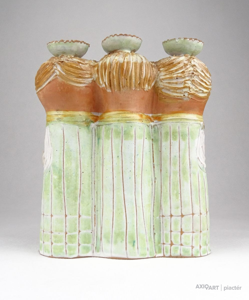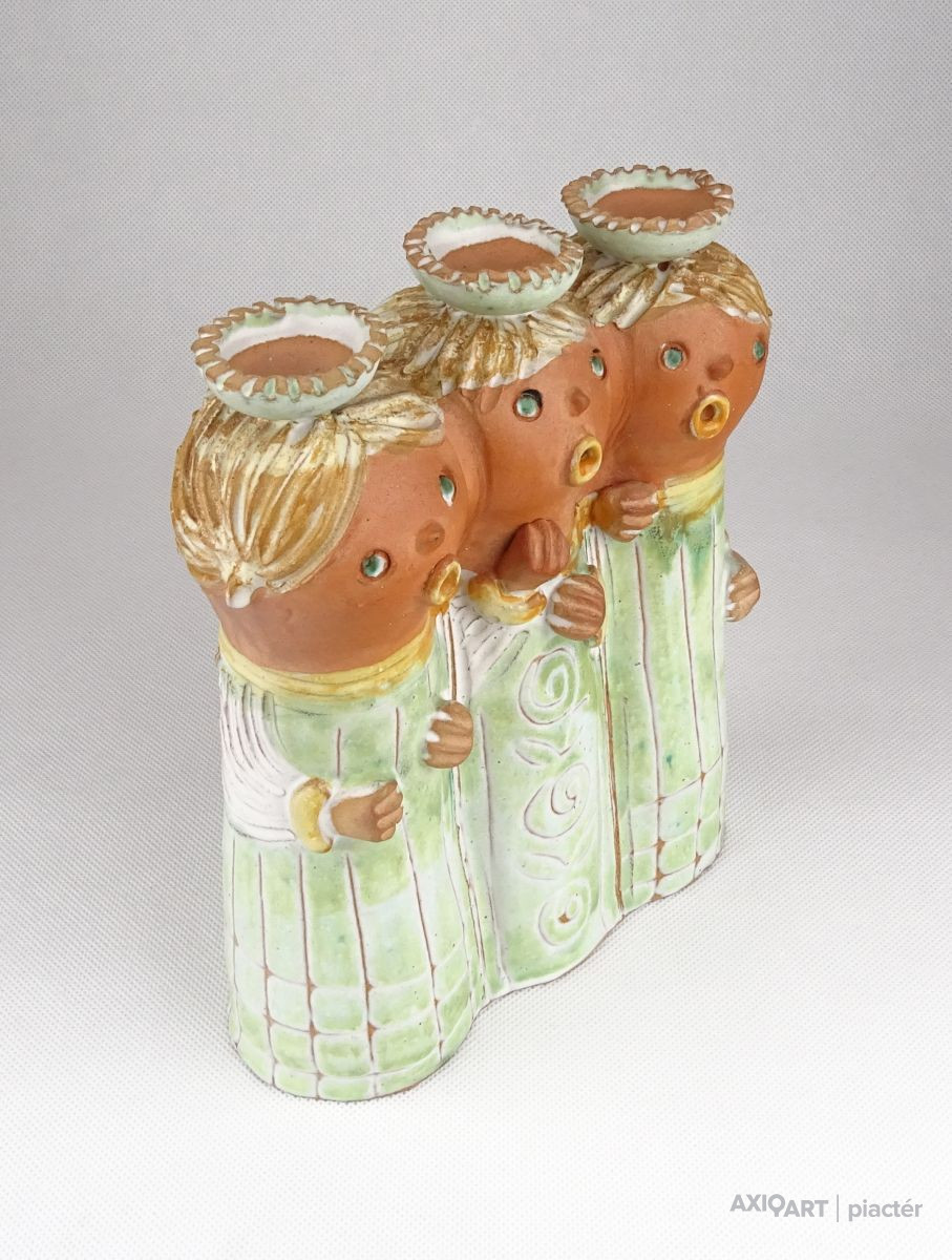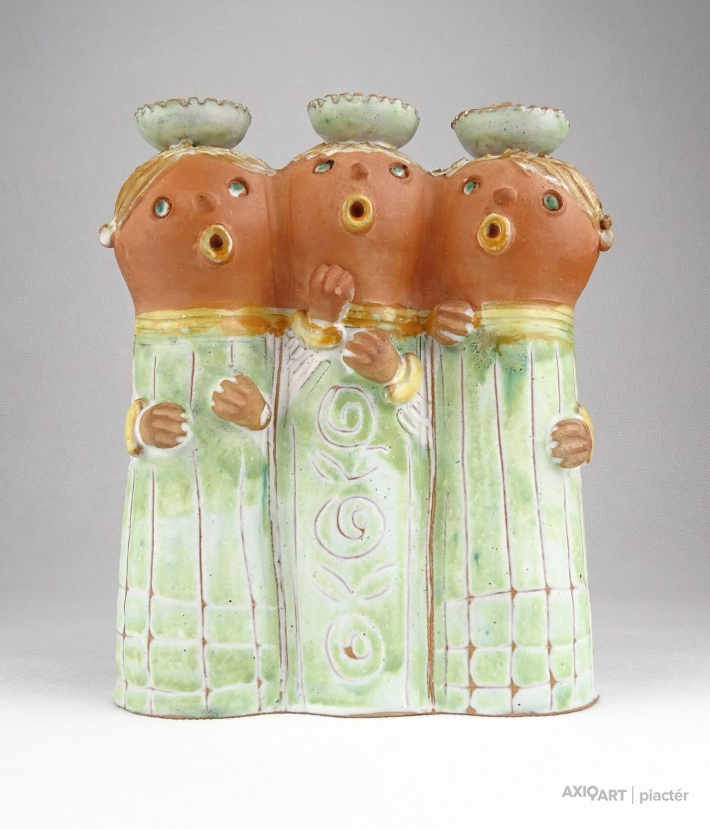 Hibátlan állapotú, jelzett, háromalakos kerámia figurális mécsestartó figura.