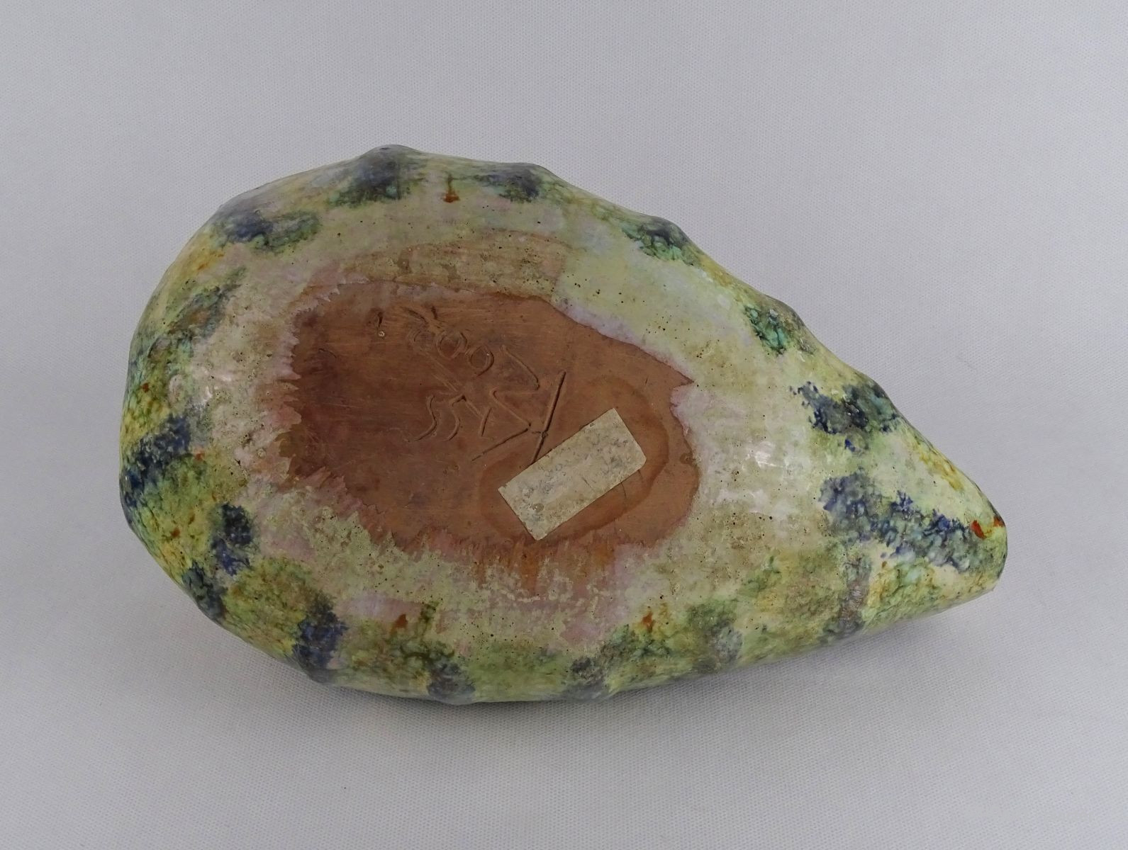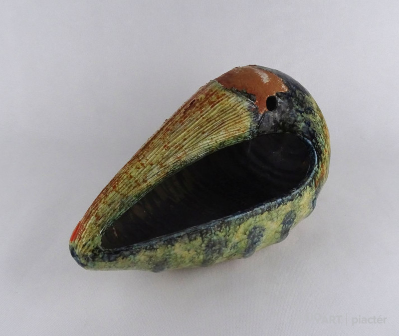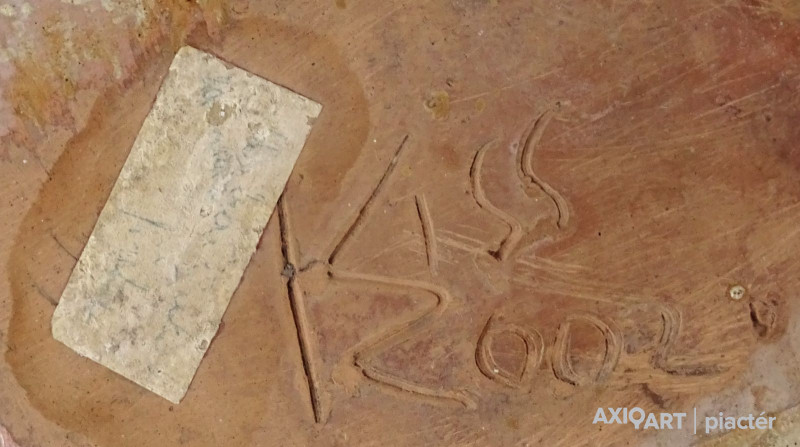 Nagyon ritkán előforduló nagyméretű, érdekes alakú jelzett Kiss Roóz kerámia kaspó.