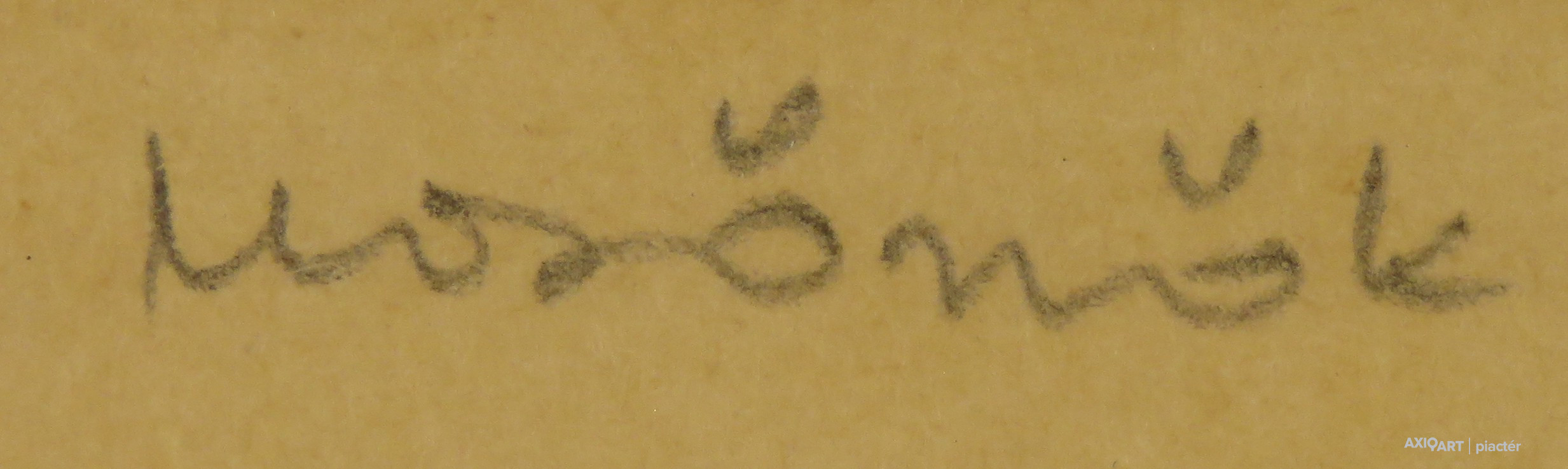 [1Y029/Z018] Olaj farost festmény, üveglap mögött, hibátlan képcsarnokos keretben. Hátoldalán Képcsarnok Vállalat papír címkéje: A művész neve: SCHÉNER MIHÁLY A kép címe: TÁJ Magasság: 66.5 cm Szélesség: 86 cm Súly: 6.54 kg Schéner Mihály festő, grafikus, szobrász, keramikus, bábtervező Medgyesegyháza, 1923-01-9 Elhalálozott: Budapest, 2009. május 11. Honlap: http://www.kormendigaleria.hu/kiadvany.html 1942-1947: Magyar Képzőművészeti Főiskola, tanára: Rudnay Gyula. 1978: Munkácsy-díj; 1984: érdemes művész; 1989: kiváló művész; 1995: Kossuth-díj. 1992-től a Magyar Művészeti Akadémia, 1993-tól a Széchenyi Irodalmi és Művészeti Akadémia tagja. 1956-ig tanított. 1982: Nagyatádi Faszobrász Alkotótelep, 1985: Nemzetközi Acélszobrász Alkotótelep, Dunaújváros. A stílusában felismerhető, mégis sokféle műtárgyat létrehozó ~ gazdag, állandóan alakuló életműve a folyton változó világban helyét kereső, az alkotói szabadságot megvalósító XX. századi képzőművész példázata lehetne. Magát expresszív-szürrealista alkotónak nevezi. Egyaránt dolgozik festékkel, textillel, fával, fémmel. Rajzol, szerkeszt, farag, épít, gyúr, varr és ragaszt, felhasználja a mézesbábok öntőformáit. Festő, rajzoló, textilszobor- és bábkészítő, fazekas, asztalos, esztergályos. Háromlépcsős folyamatban gondolkozik: rajzban tervez, majd fest, szobrot készít, “formába önt”, mindig a végső plasztikai megoldást keresi. Ami állandó és mégis játékosan változékony megjelenésű Schéner művészetében, az a gyermekkori emlékek által meghatározott népi mesterségek iránti tiszteletet kifejező motívumkincs, a tárgyi folklór formakészlete, amely már-már kézjegyként ismétlődik munkáin. Mitologikussá nőtt képzelete új lényeket teremt, pl: a Pigulát, amely disznótestű, emberfejű teremtmény. Schéner festményein a szürrealista motívumokat konstruktív szerkezetbe rendezi, a geometriát és az organikus természeti motívumokat egyaránt beépíti műveibe. A népi, népművészeti formakincsből merített lovas huszárok, betyárok, szegénylegények cifra szűr mentéje, piros csákója, fekete csizmája, az önálló életet élő zsinórdíszek és mézeskalács bábok, a kiskocsik a gyermekkori vásárok, búcsúk színes forgatagába vezet. A primér motívumokat aztán felváltják a vastagon felhordott felületbe karcolt jelek, vonalhálózatok, amelyek a játszó gyermek homokba rajzolt ábráit, a pásztorember fába vésett üzeneteit, az ősember barlang falába rótt mágikus jeleneteit idézik meg. A művész pillanatnyi érdeklődésének megfelelően a színek búvópatakként tűnnek el és jelennek meg ismét. A 60-as években leginkább a formákkal való játék érdekelte, a festmények felülete egyre gazdagodott: a táblaképek felületén applikációk jelentek meg, vagy lemállasztott rétegek hagyták maguk után hiányukat, motívumok nélküli ősformák, archetipikus képzetek bukkantak fel művészetében. A véletlenszerűnek látszó rétegekkel való játék azonban tudatos komponálás eredménye, amely később nyilvánvaló ritmusnak és formai szerkesztettségnek adja át a helyét, mint a Törvénytáblák c. sorozaton. A különböző művészi kifejezési formák egymásra termékenyítő hatással vannak, át- meg áthatják egymást. Textilszobrai, amelyekkel új műfajt teremtett, ugyanazzal az automatikus, expresszív-szürrealista módszerrel készülnek, mint festményei. A hagyományosan a népművészetben alkalmazott anyag, a filc lehetőséget ad a népi formakincs felelevenítésére, amely azonban a művész különös szürrealista átiratában jelenik meg. A szívekkel kivarrt, zsinórdíszes Posztókotlós c. művén mézesbábok lógnak, hátán huszárok lovagolnak. Egész sor textilből készült kéz-plasztikát alkot, amelyeket az ujjakra rávarrt díszekkel öltöztet, személyesít meg. A színes-különös világból aztán ~ újra puritán képi és formai rendbe juttatja el a nézőt, majd nemsokára tépett, gyűrt, vágott, csorgatott, repedezni hagyott szenvedélyesen vonagló képi felületeket hagy hátra. Schéner készített apró gyermekjátékokat, térstruktúra-tereket, mászókákat is. A magyar népi formák mellett szürreális játékaiban gyakran alkalmaz görög mitológiai alakokat, “elkentaurosodott” lovakat, Gorgó-fejeket, sellőket, hárpiákat, Pán-ábrázolásokat. Schéner nemcsak saját művészetéről publikál, hanem művésztársairól is számos írása jelenik meg, elsősorban az Új Auróra c. folyóiratban, amelynek egy ideig főmunkatársa volt. Irodalom kiállítása, Magyar Építőművészet, 1962/4. Húsz év után, Művészet, 1965/4. BOZÓKY M.: ~, Tiszatáj, 1968/5. PERNECZKY G.: Nincs uborkaszezon, Élet és Irodalom, 1969. augusztus 8. BARÁNSZKY-JÓB L.: ~, Művészet, 1969/9. LÁSZLÓ GY.: ~ kaposvári kiállítása, Jelenkor, 1969/4. MAJOR M.: Pásztorok, betyárok, huszárok - kezek, Tükör, 1970. szeptember 15. FRANK J.: Bemutatjuk ~t, Élet és Irodalom, 1972. május 6. ról kiállítása ürügyén, Képzőművészeti Almanach, Budapest, 1972 Sötétkék kokasok, Élet és Irodalom, 1973. szeptember 9. MAJOR M.: ~ játékai, Élet és Irodalom, 1974. július 27. BARTA J.: Egy különös művész, Alföld, 1974/6. VADAS J.: Szárnykészítők, Élet és Irodalom, 1975. október 4. JUHÁSZ F.: A halál ellen játszani, Élet és Irodalom, 1975. május 17. PAP G.: Kincsek és műkincsek, Művészet, 1975/6. P. SZŰCS J.: Az utak kettéválnak, Művészet, 1978/3. Békési művészet, Művészet, 1978/7. SZAMOSI F.: ~ [kismonográfia], Budapest, 1978 VADAS J.: Játék a játékkal, Élet és Irodalom, 1979. augusztus 18. NÉMETH L.: ~ műveiről, Művészet, 1979/4. MIKLÓS P.: Mit akar ez a múzeum?, Művésze