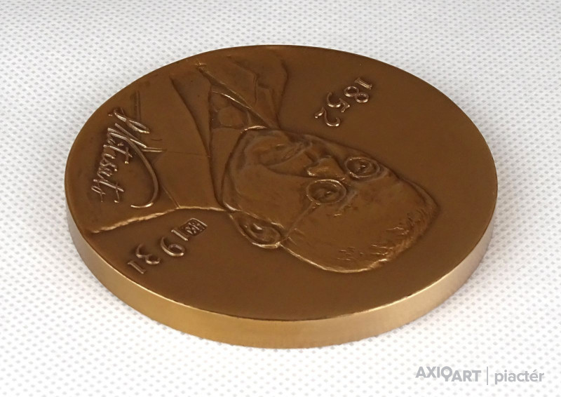 [1F795/X129] Eredeti királykék színű díszdobozban, fehér kartondobozban található jelzett bronz plakett emlék plakett. Egyik oldalán Kitasato portré és felirat: - 1852-1931 S. KITASATO Hátoldalán kalligrafikus japán jelzés, felirat, lásd fotó. Doboz belsejében felirat: GINZA TENSHODO TOKYO Súly: 0.515 kg Kitasato Shibasaburō  Kitasato Shibasaburō Született 1853. január 29 Oguni, Kumamoto Meghalt 1931. június 13 (78 éves) Tokió, Japán Állampolgárság Japán Ismert Bubópestis Tudományos karrier Mezők Bakteriológia Intézmények Tokiói Császári Egyetem Hatásai Robert Koch Baron Kitasato Shibasaburō (北里柴三郎január 29. [OS január 17.], 1853 - június 13, 1931) [1] volt japán orvos és bakteriológus . Emlékeznek rá, mint egy 1894-es járvány során, a Hong Kong-i bubóbetegség fertőző ágensének felfedezőjére , szinte egyszerre Alexandre Yersinnel . Kitasato-t 1901- ben jelölték az első éves fiziológiai vagy orvosi Nobel-díjra. [2] Kitasato és Emil von Behring , akik 1890- ben Berlinben dolgoztak együtt , bejelentették a diftéria antitoxin szérum felfedezését . Von Behring emiatt a mű miatt kapta az 1901-es Nobel-díjat, Kitasato azonban nem. Életrajz  Kitasato a Higo tartomány Okuni faluban született (a mai Oguni város , Kumamoto prefektúra , Kyūshū ). A Kumamoto Orvosi Egyetemen és a Tokiói Császári Egyetemen tanult . Mestere Robert Koch a berlini egyetemen 1885-től a 1891-1889, ő lett az első ember, hogy nő a tetanusz bacilus tiszta kultúra , és 1890-ben együttműködött Emil von Behring fejlődő szérum kezelés tetanusz ezzel tiszta kultúra. Ő is dolgozott antitoxi a diftéria és anthrax . Kitasato és Behring bebizonyította az antitoxin jelentőségét a betegség megelőzésében azáltal, hogy passzív immunitást váltott ki a tetanussal szemben egy olyan állatban, amely fokozott vérszérum-injekciókat kapott egy másik, betegséggel fertőzött állatból. Kitasato felfedezései a tetanuszon ésvon Behring diftériával foglalkozó munkája a szeroterápia területéhez vezet, amely világszerte sokak számára előnyös volt. [3] Miután 1891-ben visszatért Japánba, Fukuzawa Yukichi segítségével megalapította a Fertőző Betegségek Kutatóintézetét . Korai asszisztenseinek egyike August von Wassermann volt . Kitasato bemutatta, hogy az elhalt kultúrákat hogyan lehet felhasználni az oltásban . Tanulmányozta a tuberkulózis fertőzésének módját is . A japán kormány kérésére 1894-ben Hongkongba utazott a buborékos járvány kitörése során , és azonosított egy baktériumot , amelyről megállapította, hogy a betegséget okozza. Külön dolgozva Yersin ugyanezt a szervezetet találta meg néhány nappal később. Mivel Kitasato kezdeti jelentései homályosak és kissé ellentmondásosak voltak, és a későbbi jelentések pontatlannak bizonyultak, egyes tudománytörténészek egyedüli elismerést adnak Yersinnek a felfedezésért; [4] [5], míg mások kettős hitelt tanúsítanak. [6] [7] [8]A mikrobiológusok által a organisato morfológiájának alapos elemzése azonban azt állapította meg, hogy bár a mintái valószínűleg később pneumococcusokkal szennyeződtek, ami laboratóriumának ellentmondó jelentéseihez vezetett, "nem kétséges, hogy Kitasato izolált, tanulmányozott és ésszerűen jellemzi a pestis bacillust "Hongkongban, és" nem szabad megtagadni ezt a hitelt ". [9] Négy évvel később Kitasato és tanítványa, Shiga Kiyoshi képes volt elkülöníteni és leírni azt a szervezetet, amely dizentériát okozott . Kitasato Egyetemi Kórház A hongkongi Bubonic pestisen végzett munkája után Kitasato az északkelet-ázsiai járványjárványok kutatásával folytatta a fertőző betegségekkel kapcsolatos munkáját, majd 1909-ben előadást készített a tuberkulózisról Európában. [10] 1911-ben Kitasato Mandzsúriában találta magát az egyik legsúlyosabb tüdőbetegség közepette, amely tanulmányozta annak megelőzését, [11] mivel úgy vélte, hogy célja a közegészségügy tudományának vizsgálata és előrelépés az adott területen. [12] Amikor a Fertőző Betegségek Intézetét 1914- ben beiktatták a Tokiói Birodalmi Egyetembe , tiltakozásul lemondott és megalapította a Kitasato Intézetet (a Kitasato Egyetem előfutárát ), amelynek élete végéig vezetett. Míg Kitasato még mindig részt vett az újonnan létrehozott intézet tevékenységeiben, Yukichivel együttműködve új orvosi intézményt is szervezett , amely azóta az orvosi tanulás kiemelkedő központjává vált Japánban. [13] 1921 szeptemberében a Kitasato több orvostudománnyal együtt megalapította a Sekisen Ken-onki Corporation-t azzal a szándékkal, hogy a lehető legmegbízhatóbb klinikai hőmérőt állítsa elő. A céget később Terumo Corporation névre keresztelték . Kitasato portréja az 1000 jen bankjegyen Kitasato volt a Keio Egyetem orvostudományának első dékánja, a Japán Orvosi Szövetség első elnöke, és a Társak Házában dolgozott . A kazoku társrendszerben 1924. februárjában danshaku ( báró ) címmel nemesítették meg . Bár Kitasato a betegség aktív tanulmányozásáról a politikára és a konferenciákra tért át, a tuberkulózis elleni munkájáig fejleszti haláláig, és jelentős mértékben hozzájárult a amit tudunk a betegségekről a közegészségügy területén. Kitasato Shibasaburō halt meg a koponyán belüli vérzés otthonában Azabu , Tokió , június 13-án, 1931. Sírja az Aoyama Cemetery Tokióban. Portréját új 1000 jen bankjegyekben fogják felhasználni, amelyeket 2024-ben terveznek kibocsátani.  Forrás: wikipédia
