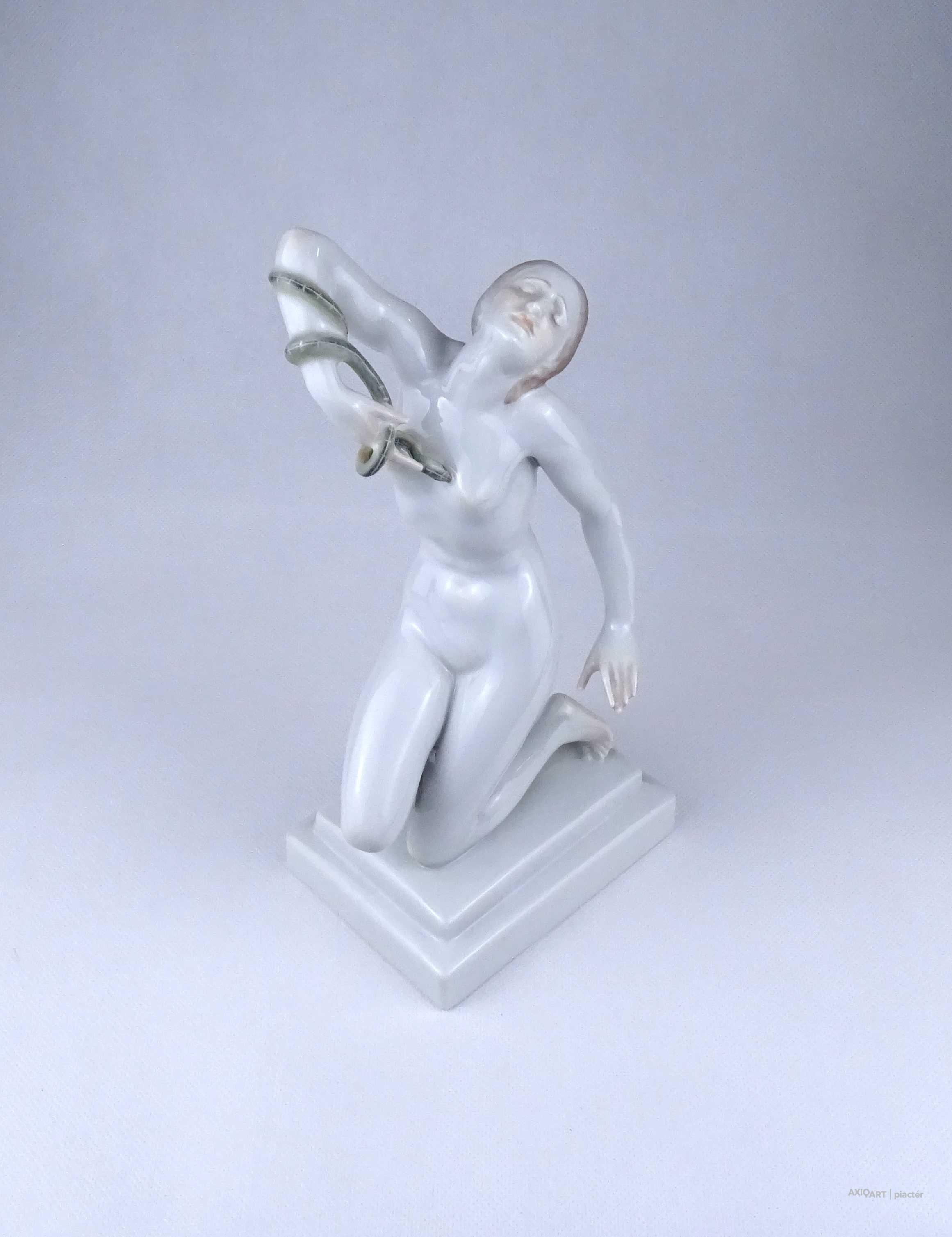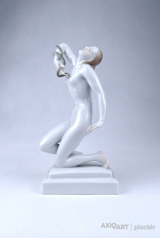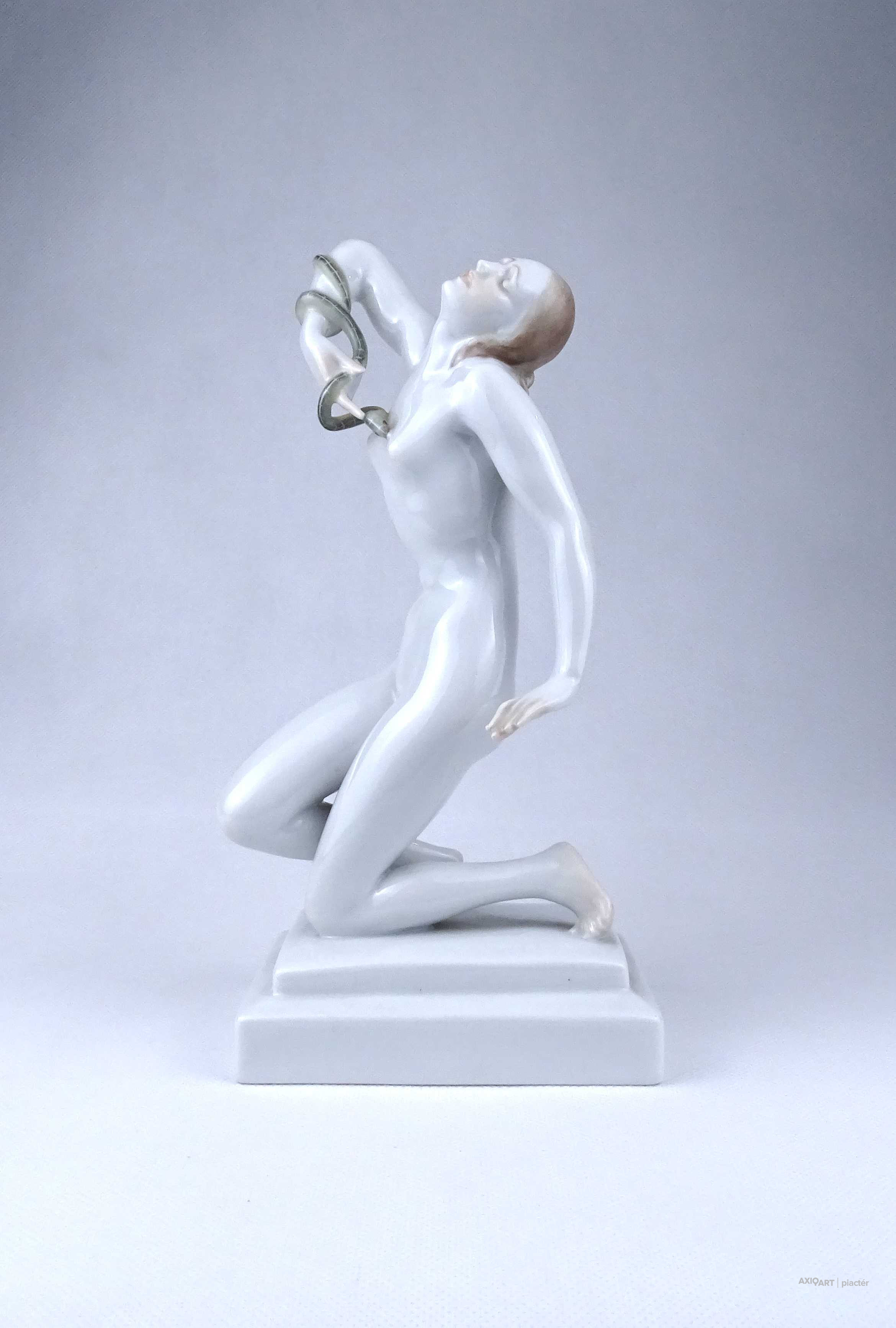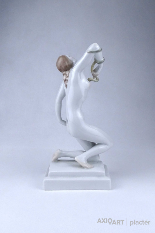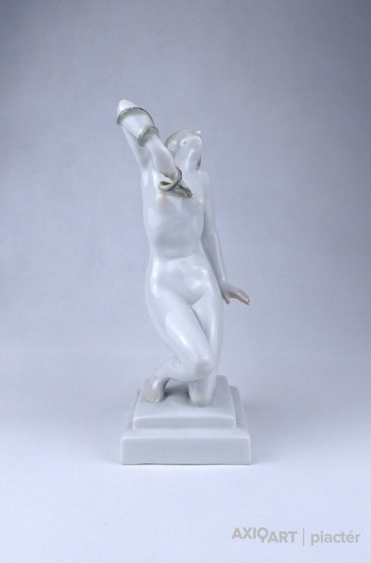 Nagyméretű, hibátlan állapotú Herendi porcelán szobor, női akt. Kleopátra karján a mellkasába harapó kígyóval.