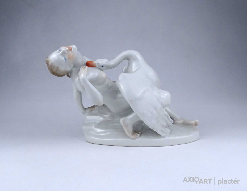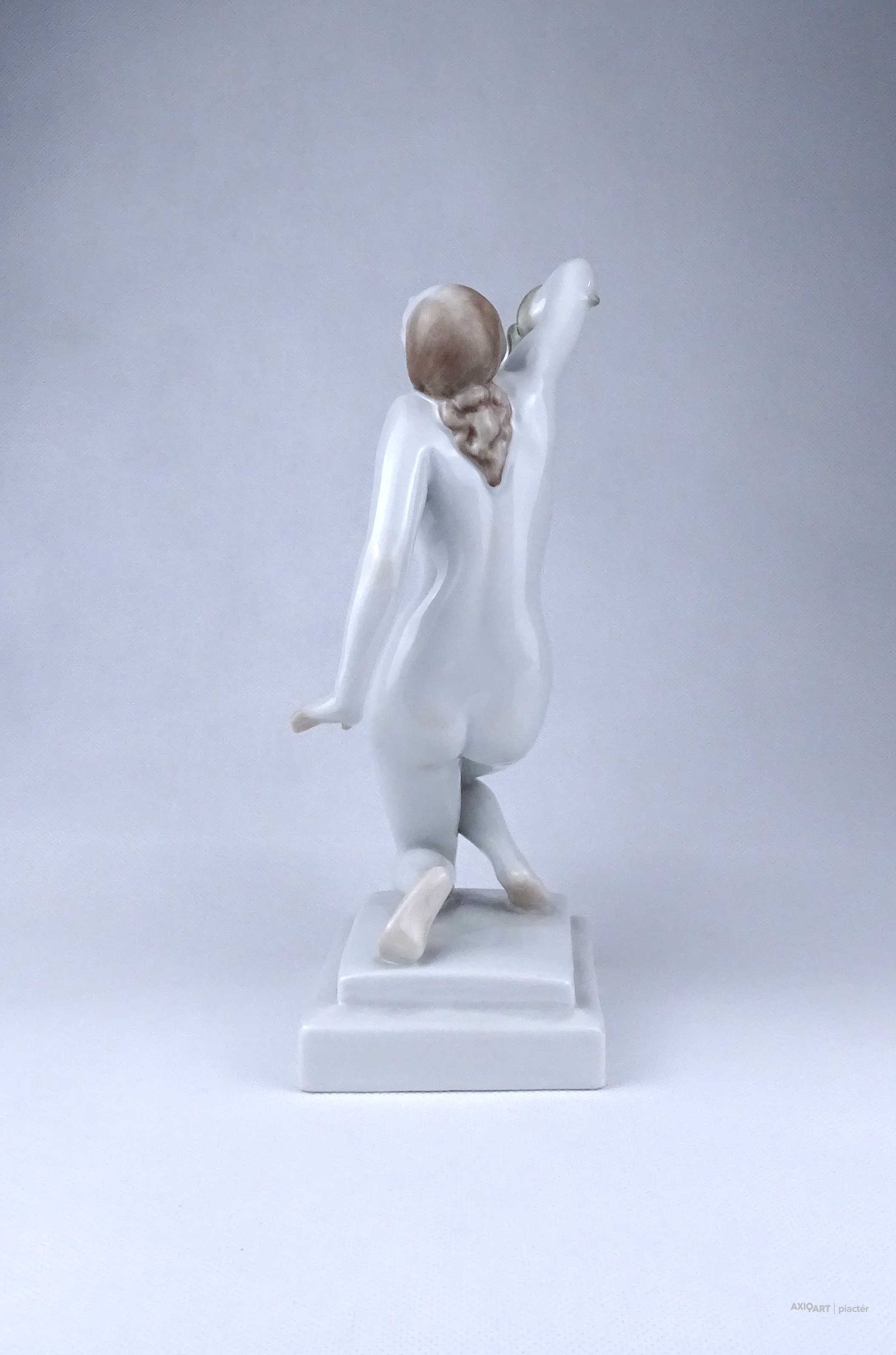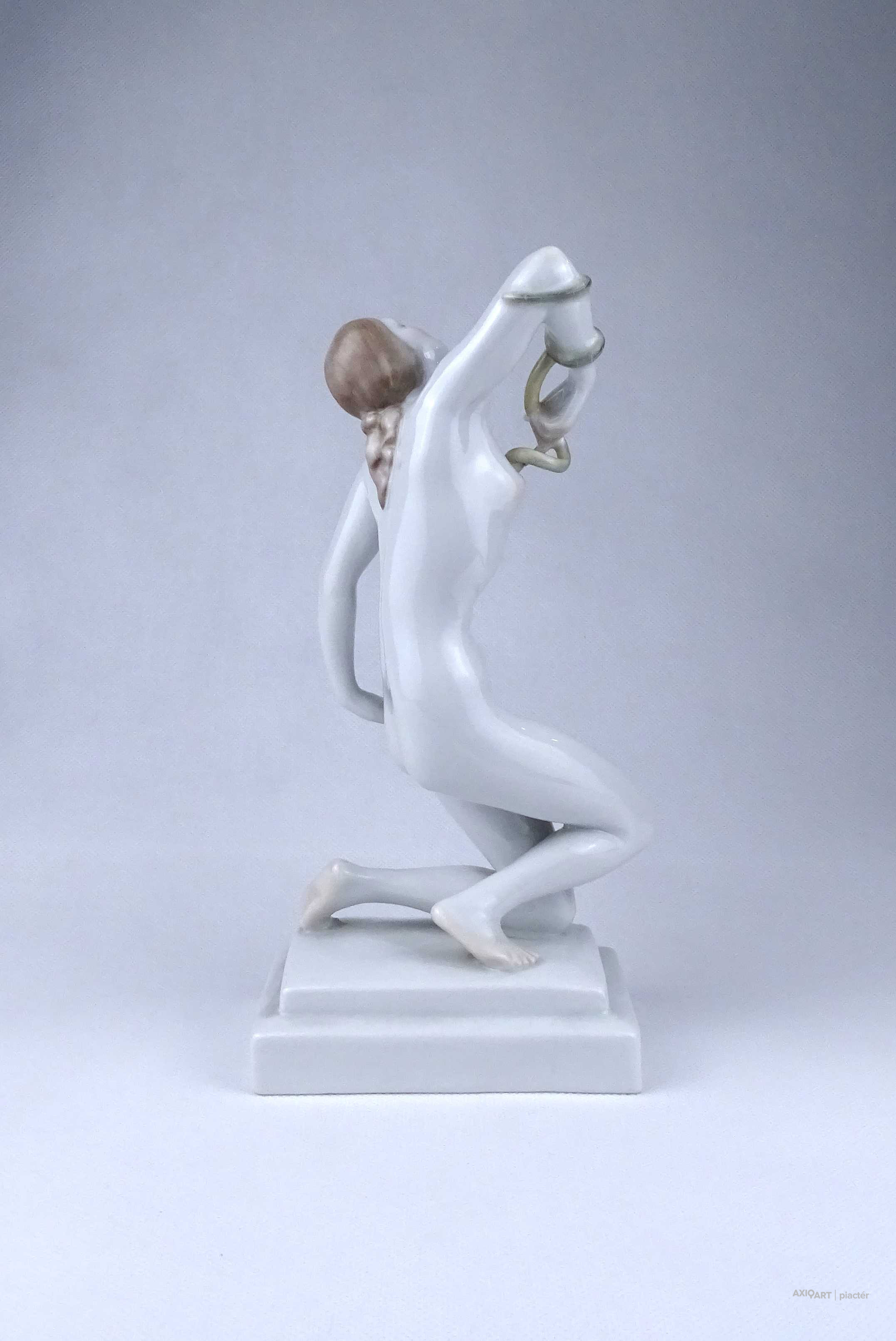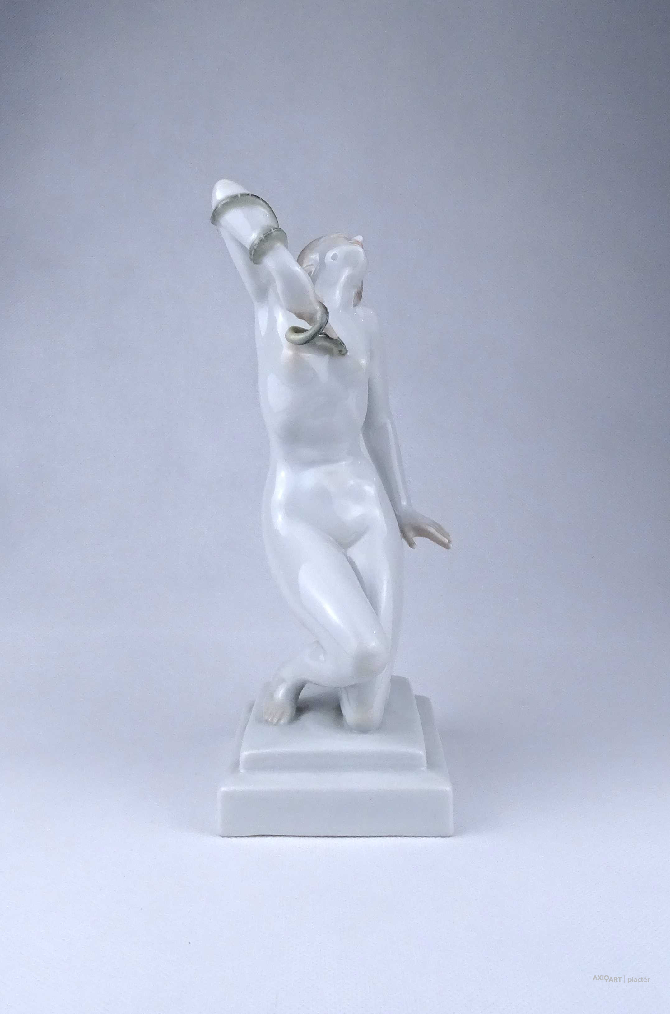 Nagyméretű, hibátlan állapotú Herendi porcelán szobor, női akt. Kleopátra karján a mellkasába harapó kígyóval.