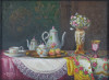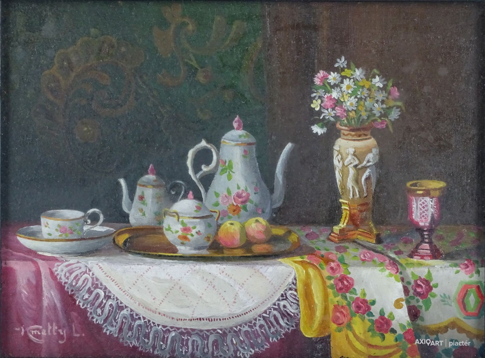 [FK2668/Bp301/4] A kép mérete: 50,5 x 80,5 cm keret nélkül. Készült: Olaj, Vászon A kép Moldován István (Kolozsvár, 1911) alkotása. Jelezve Jobbra lent "Moldován István" A festmény jó állapotban van. Keret: Ép A festmény hátoldalán a Képcsarnokvállalat raglapja láltható. Magyar festők és grafikusok életrajzi lexikona I-II. Festő. Tanulmányait Kolozsvárott, a Szépművészeti Főiskolán kezdte 1930-ban. A következő esztendőben a nagybányai Szépművészeti Iskolában Thorma János és Krizsán János korrektúráján képezte magát. 1931-ben a budapesti Képzőművészeti Főiskola hallgatója lett. Réti István, később Szőnyi István volt a mestere. Már mint főiskolás sok díjat és kitüntetést nyert. 1948-ban megkapta a római ösztöndíjat, de lemondva róla, Erdélybe ment. 1948-1950 között Erdélyben élt, és népművészetben gazdag vidékein festett. 1943-ban Kolozsvárott, 1946-ban Gyöngyösön, 1955-ben, 1959-ben és 1962-ben a Kulturális Kapcsolatok Intézetében, illetve a Csók Galériában rendezett egyéni bemutatókat. Ezen kívül több Európai országban, az USA-ban, Kanadában és Indiában is bemutatta munkáit. Eleinte sajátos atmoszférájú, lírai tájképeket, eleven színvilágú képmásokat festett, később mondernebb, erőteljesebben szerkesztett művekkel jelentkezett. A Pécsi Tanárképző Főiskola számára mozaikot készített. Erdély szerelmese volt. A székely népművészet gazdag formavilágának hatása döntő jelentőségűvé vált sokoldalú művészetében. Műv. díjak: a Szinyei Társaság elismerő oklevele, a Főváros festészeti-díja, "Kolozsvár a képzőművészetben" II. díj, állami ösztöndíj, római ösztöndíj, a Képzőművészek Szövetsége Észak-Magyarországi festészeti díja, SZOT festészeti díj. Több murális művet (mozaik) alkotott. A Magyar Nemzeti Galéria több alkotását őrzi. (M. L.: Műv. 1967/6, RI-NM) Magyar festők és grafikusok életrajzi lexikona I-II. Műgyűjtők és kereskedők kézikönyve Festő. Tanulmányait a kolozsvári Szépművészeti Főiskolán kezdte 1930-ban. A nagybányai szabadiskolában is megfordult. Itt Thorma János és Krizsán János korrektúráján képezte magát. 1931-ben Budapesten a Képzőművészeti Főiskola hallgatója lett. Réti István, később Szőnyi István volt a mestere. Már mint főiskolás sok díjat nyert. 1948-ban megkapta a római ösztöndíjat, de lemondva róla, Erdélybe ment. 1948-1950 k. Erdélyben élt, és népművészetben gazdag vidékein festett. 1943-ban Kolozsváron, 1946-ban Gyöngyösön, 1955-ben, 1959-ben és 1962-ben a Kulturális Kapcsolatok Intézetében, illetve a Csók Galériában rendezett önálló kiállítást. Ezen kívül több Európai országban, az USA-ban, Kanadában és Indiában is bemutatta műveit. Eleinte sajátos atmoszférájú, lírai tájképeket, eleven színvilágú képmásokat festett, később mondernebb, erőteljesebben szerkesztett művekkel jelentkezett. A Pécsi Tanárképző Főiskola számára mozaikot készített. Erdély szerelmese volt. A székely népművészet gazdag formavilágának hatása döntő jelentőségűvé vált sokoldalú művészetében. 1942-ben megkapta a Szinyei Társaság elismerését, és a Főváros festészeti-díjat,1943-ban elnyerte a "Kolozsvár a képzőművészetben" c. díjat. 1947-ben állami ösztöndíjat,1948-ban a római ösztöndíjat, 1972-ben a Képzőművészek Szövetsége Észak-Magyarországi festészeti díját kapta meg. A MNG több művét őrzi. (M. L.: Műv.-1976/6) Magyar festők és grafikusok adattára Tanulmányait Kolozsvárott a Képzőművészeti Főiskolán, majd Nagybányán Thorma János és Krizsán János irányítása mellett kezdte, 1931-től Budapesten megszakításokkal a Képzőművészeti Főiskolán Réti István és Szőnyi István növendékeként fejezte be. 1949-ben és 1950-ben ösztöndíjjal dolgozott Erdélyben, majd hosszú tanulmányutakra indult Nyugat-Európába, az Egyesült Államokba, s a Szovjetunióba. Először Kolozsvárott lépett a nyilvánosság elé 1943-ban, majd 1946-ban Egerben és Gyöngyösön, 1947-ben Miskolcon, 1948-ban Hatvanban, 1955, 1961 és 1981-ben a Csók Galériában, 1959-ben a KKI-ben, 1960-ban Nagykanizsán, 1963-ban Kiskunfélegyházán, 1966-ban Debrecenben, 1969 és 1975-ben Békéscsabán, 1971-ben a Mednyánszky Teremben, 1973-ban Gyöngyösön és Debrecenben, 1977-ben Egerben, 1979-ben Veszprémben, 1983-ban Miskolcon, 1984-ben Csepelen, 1986-ban a Vigadó Galériában rendezett önálló kiállítást. Külföldi kiállításai: Moszkva, Varsó, India, Szófia, Párizs, Bukarest, Belgrád, New York, Montreál és Toronto. Eddig közel kétezer színes táblaképet festett, de szívesen foglalkozik mozaikkészítéssel is. 1964-ben a Pécsi Pedagógiai Főiskola, 1968-ban a Salgótarjáni Kórház, 1969-ben a názáreti templom és 1970-ben a Videoton Vállalat díszterme részére mozaikot készített. - Erdély szerelmese. A székely népművészet gazdag formavilágának hatása döntő jelentőségűvé vált festészetében. Olyan formanyelvet alakított ki magának, amely színvilágában és summázó formaalakításában sajátos erdélyi zamat érződik, ugyanakkor korszerűen modern is konstruktivista stílusa. Munkásságát 1942-ben a Szinyei Társaság elismerésével és a Fővárosi festészeti-díjjal, 1943-ben Római-ösztöndíjjal, 1947-ben Állam ösztöndíjjal (Románai), 1963-ben a SZOT festészeti-díjával, 1972-ben a Képzőművészek Szövetsége Észak-Magyarországi festészeti-díjával tüntették ki. - Irod.: Bíró Béla: Kolozsváry Moldován István. Erdélyi Helikon, 1943.; Felvinczi Takács Zoltán: Kolozsváry Moldován István. Kolozsvár, 1943.; Dutka Mária: Magyar Nemzet, 1961.; Maksay László: Moldován István. Művészet, 1965.; D. Fehér Zsuzsa. Moldován István, Bp. 1971.; Theisler G