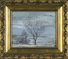 [1Y029/Z018] Olaj farost festmény, üveglap mögött, hibátlan képcsarnokos keretben. Hátoldalán Képcsarnok Vállalat papír címkéje: A művész neve: SCHÉNER MIHÁLY A kép címe: TÁJ Magasság: 66.5 cm Szélesség: 86 cm Súly: 6.54 kg Schéner Mihály festő, grafikus, szobrász, keramikus, bábtervező Medgyesegyháza, 1923-01-9 Elhalálozott: Budapest, 2009. május 11. Honlap: http://www.kormendigaleria.hu/kiadvany.html 1942-1947: Magyar Képzőművészeti Főiskola, tanára: Rudnay Gyula. 1978: Munkácsy-díj; 1984: érdemes művész; 1989: kiváló művész; 1995: Kossuth-díj. 1992-től a Magyar Művészeti Akadémia, 1993-tól a Széchenyi Irodalmi és Művészeti Akadémia tagja. 1956-ig tanított. 1982: Nagyatádi Faszobrász Alkotótelep, 1985: Nemzetközi Acélszobrász Alkotótelep, Dunaújváros. A stílusában felismerhető, mégis sokféle műtárgyat létrehozó ~ gazdag, állandóan alakuló életműve a folyton változó világban helyét kereső, az alkotói szabadságot megvalósító XX. századi képzőművész példázata lehetne. Magát expresszív-szürrealista alkotónak nevezi. Egyaránt dolgozik festékkel, textillel, fával, fémmel. Rajzol, szerkeszt, farag, épít, gyúr, varr és ragaszt, felhasználja a mézesbábok öntőformáit. Festő, rajzoló, textilszobor- és bábkészítő, fazekas, asztalos, esztergályos. Háromlépcsős folyamatban gondolkozik: rajzban tervez, majd fest, szobrot készít, “formába önt”, mindig a végső plasztikai megoldást keresi. Ami állandó és mégis játékosan változékony megjelenésű Schéner művészetében, az a gyermekkori emlékek által meghatározott népi mesterségek iránti tiszteletet kifejező motívumkincs, a tárgyi folklór formakészlete, amely már-már kézjegyként ismétlődik munkáin. Mitologikussá nőtt képzelete új lényeket teremt, pl: a Pigulát, amely disznótestű, emberfejű teremtmény. Schéner festményein a szürrealista motívumokat konstruktív szerkezetbe rendezi, a geometriát és az organikus természeti motívumokat egyaránt beépíti műveibe. A népi, népművészeti formakincsből merített lovas huszárok, betyárok, szegénylegények cifra szűr mentéje, piros csákója, fekete csizmája, az önálló életet élő zsinórdíszek és mézeskalács bábok, a kiskocsik a gyermekkori vásárok, búcsúk színes forgatagába vezet. A primér motívumokat aztán felváltják a vastagon felhordott felületbe karcolt jelek, vonalhálózatok, amelyek a játszó gyermek homokba rajzolt ábráit, a pásztorember fába vésett üzeneteit, az ősember barlang falába rótt mágikus jeleneteit idézik meg. A művész pillanatnyi érdeklődésének megfelelően a színek búvópatakként tűnnek el és jelennek meg ismét. A 60-as években leginkább a formákkal való játék érdekelte, a festmények felülete egyre gazdagodott: a táblaképek felületén applikációk jelentek meg, vagy lemállasztott rétegek hagyták maguk után hiányukat, motívumok nélküli ősformák, archetipikus képzetek bukkantak fel művészetében. A véletlenszerűnek látszó rétegekkel való játék azonban tudatos komponálás eredménye, amely később nyilvánvaló ritmusnak és formai szerkesztettségnek adja át a helyét, mint a Törvénytáblák c. sorozaton. A különböző művészi kifejezési formák egymásra termékenyítő hatással vannak, át- meg áthatják egymást. Textilszobrai, amelyekkel új műfajt teremtett, ugyanazzal az automatikus, expresszív-szürrealista módszerrel készülnek, mint festményei. A hagyományosan a népművészetben alkalmazott anyag, a filc lehetőséget ad a népi formakincs felelevenítésére, amely azonban a művész különös szürrealista átiratában jelenik meg. A szívekkel kivarrt, zsinórdíszes Posztókotlós c. művén mézesbábok lógnak, hátán huszárok lovagolnak. Egész sor textilből készült kéz-plasztikát alkot, amelyeket az ujjakra rávarrt díszekkel öltöztet, személyesít meg. A színes-különös világból aztán ~ újra puritán képi és formai rendbe juttatja el a nézőt, majd nemsokára tépett, gyűrt, vágott, csorgatott, repedezni hagyott szenvedélyesen vonagló képi felületeket hagy hátra. Schéner készített apró gyermekjátékokat, térstruktúra-tereket, mászókákat is. A magyar népi formák mellett szürreális játékaiban gyakran alkalmaz görög mitológiai alakokat, “elkentaurosodott” lovakat, Gorgó-fejeket, sellőket, hárpiákat, Pán-ábrázolásokat. Schéner nemcsak saját művészetéről publikál, hanem művésztársairól is számos írása jelenik meg, elsősorban az Új Auróra c. folyóiratban, amelynek egy ideig főmunkatársa volt. Irodalom kiállítása, Magyar Építőművészet, 1962/4. Húsz év után, Művészet, 1965/4. BOZÓKY M.: ~, Tiszatáj, 1968/5. PERNECZKY G.: Nincs uborkaszezon, Élet és Irodalom, 1969. augusztus 8. BARÁNSZKY-JÓB L.: ~, Művészet, 1969/9. LÁSZLÓ GY.: ~ kaposvári kiállítása, Jelenkor, 1969/4. MAJOR M.: Pásztorok, betyárok, huszárok - kezek, Tükör, 1970. szeptember 15. FRANK J.: Bemutatjuk ~t, Élet és Irodalom, 1972. május 6. ról kiállítása ürügyén, Képzőművészeti Almanach, Budapest, 1972 Sötétkék kokasok, Élet és Irodalom, 1973. szeptember 9. MAJOR M.: ~ játékai, Élet és Irodalom, 1974. július 27. BARTA J.: Egy különös művész, Alföld, 1974/6. VADAS J.: Szárnykészítők, Élet és Irodalom, 1975. október 4. JUHÁSZ F.: A halál ellen játszani, Élet és Irodalom, 1975. május 17. PAP G.: Kincsek és műkincsek, Művészet, 1975/6. P. SZŰCS J.: Az utak kettéválnak, Művészet, 1978/3. Békési művészet, Művészet, 1978/7. SZAMOSI F.: ~ [kismonográfia], Budapest, 1978 VADAS J.: Játék a játékkal, Élet és Irodalom, 1979. augusztus 18. NÉMETH L.: ~ műveiről, Művészet, 1979/4. MIKLÓS P.: Mit akar ez a múzeum?, Művésze
