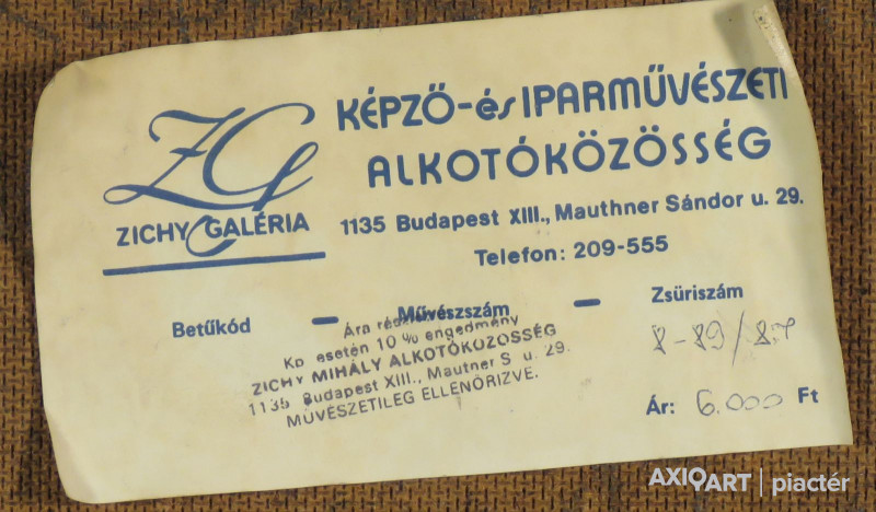 [1Y034/Z018] Olaj vászon festmény, üveglap mögött, szép állapotú képcsarnokos keretben. Akasztási lehetőséggel rendelkezik. Jelezve jobbra lent: Balog A. Hátoldalán a kereten Képcsarnok Vállalat címke töredék látható, rajta felirat: A művészeti alkotás címe: LEÁNY Magasság: 86 cm Szélesség: 66 cm Súly: 5.37 kg Balogh András (képei szignóján az 1960-as évektől Balog) (Budapest, 1919. március 14. — Budapest, 1992. március 18.) festőművész, kerttervező, művészeti szakíró, c. egyetemi tanár. Életpályája és munkássága Apai ágon a géresi Baloghok Szatmár megyéből a dél-erdélyi Alsó-Fehér megyébe származtak, anyai fölmenői a Székelyföldön: Csíkban, ill. Háromszéken éltek. Szülei az 1900-as évek elején költöztek Budapestre. A Képzőművészeti Főiskolán 1937-ben kezdte meg tanulmányait Burghardt Rezső tanítványaként. 1950-töl 1980-ig a Kertészeti Főiskolán (később Kertészeti Egyetem) tanított a kerttervezési tanszéken művészettörténetet, szabadkézi rajzot, ábrázoló geometriát és kertesztétikát. Az Iparművészeti Főiskolán óraadóként kertesztétikát adott elő. 1971-ben részt vett a firenzei Palazzo Strozziban rendezett biennálén, ahol aranyéremmel tüntették ki. Rendszeres önálló és csoportos kiállítások sora következett ezután nemcsak Magyarországon, hanem Olaszország és Németország számtalan városában, kiállított Finnországban, Kanadában is. Egyéni kiállításai gyakran katalógusokkal jelentek meg.[1][2][3] Nyaranként Tihanyban vagy Zsennyén alkotott. Festészetét poétikus realizmus jellemzi, dekoratív elrendezésű kompozíciói és lágy színvilága bensőséges hangulatot, szépséget, harmóniát árasztanak. (Lány egyszarvúval; Alvó, Emberpár és táj, stb.) Nagyon sok tájképet és portrét festett, történelmi személyiségekről is, 1978 és 1989 közt megfestette Mindszenty József bíboros portréját. Képei a Magyar Nemzeti Galériában, vidéki múzeumainkban, olasz, német, finn, észak-amerikai, kanadai, ausztráliai gyűjteményekben vannak.