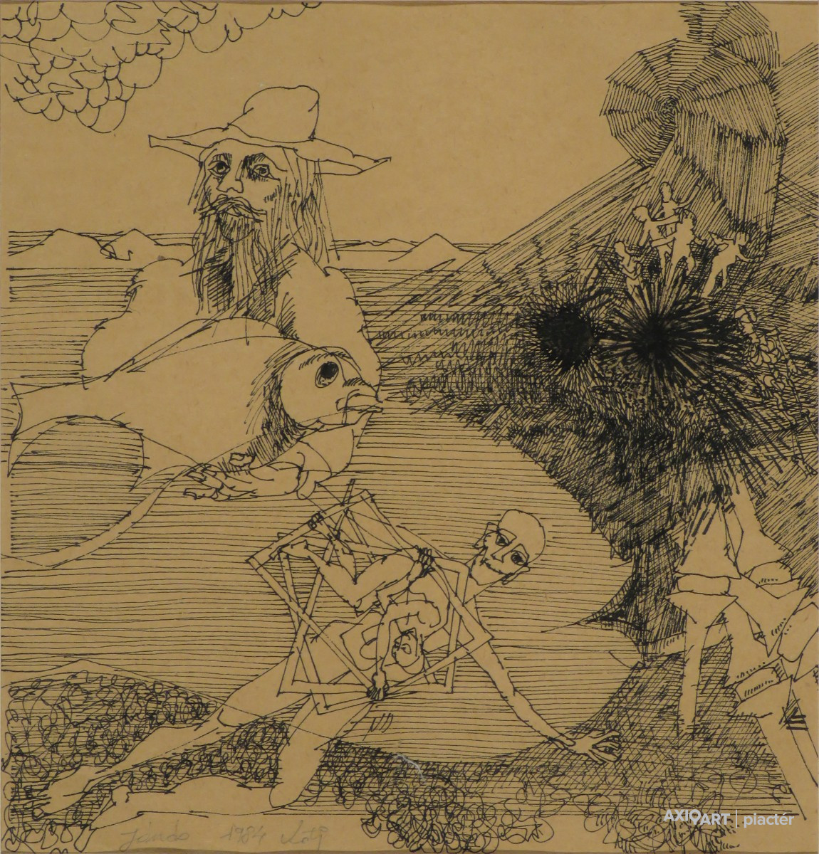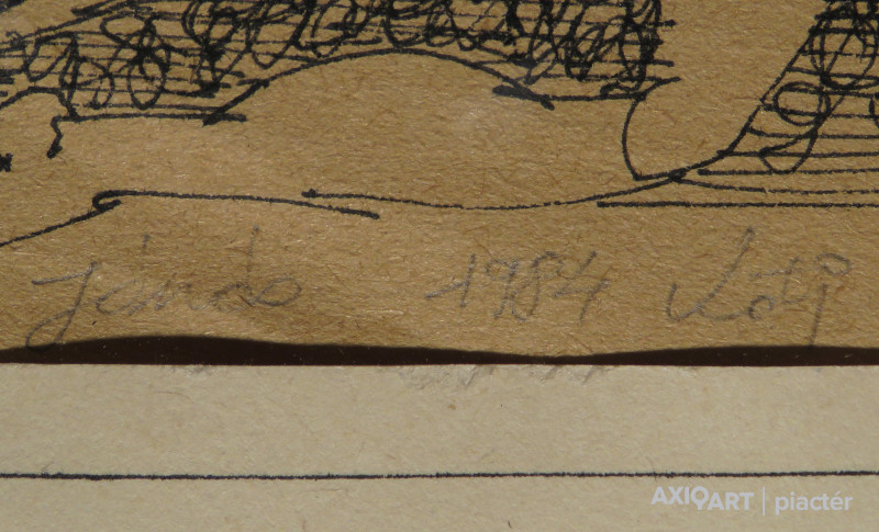 [FKC225/Bp107/24] A kép mérete: 20 x 19 cm keret nélkül. Készült: Tus, Papír A kép Kotj jelzéssel magyar művész 1984 alkotása. Jelezve balra lent "Jándo 1984 Kotj" A festmény jó állapotban van. Keret: Ép
