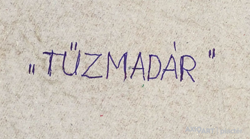 [1Y029/Z018] Olaj farost festmény, üveglap mögött, hibátlan képcsarnokos keretben. Hátoldalán Képcsarnok Vállalat papír címkéje: A művész neve: SCHÉNER MIHÁLY A kép címe: TÁJ Magasság: 66.5 cm Szélesség: 86 cm Súly: 6.54 kg Schéner Mihály festő, grafikus, szobrász, keramikus, bábtervező Medgyesegyháza, 1923-01-9 Elhalálozott: Budapest, 2009. május 11. Honlap: http://www.kormendigaleria.hu/kiadvany.html 1942-1947: Magyar Képzőművészeti Főiskola, tanára: Rudnay Gyula. 1978: Munkácsy-díj; 1984: érdemes művész; 1989: kiváló művész; 1995: Kossuth-díj. 1992-től a Magyar Művészeti Akadémia, 1993-tól a Széchenyi Irodalmi és Művészeti Akadémia tagja. 1956-ig tanított. 1982: Nagyatádi Faszobrász Alkotótelep, 1985: Nemzetközi Acélszobrász Alkotótelep, Dunaújváros. A stílusában felismerhető, mégis sokféle műtárgyat létrehozó ~ gazdag, állandóan alakuló életműve a folyton változó világban helyét kereső, az alkotói szabadságot megvalósító XX. századi képzőművész példázata lehetne. Magát expresszív-szürrealista alkotónak nevezi. Egyaránt dolgozik festékkel, textillel, fával, fémmel. Rajzol, szerkeszt, farag, épít, gyúr, varr és ragaszt, felhasználja a mézesbábok öntőformáit. Festő, rajzoló, textilszobor- és bábkészítő, fazekas, asztalos, esztergályos. Háromlépcsős folyamatban gondolkozik: rajzban tervez, majd fest, szobrot készít, “formába önt”, mindig a végső plasztikai megoldást keresi. Ami állandó és mégis játékosan változékony megjelenésű Schéner művészetében, az a gyermekkori emlékek által meghatározott népi mesterségek iránti tiszteletet kifejező motívumkincs, a tárgyi folklór formakészlete, amely már-már kézjegyként ismétlődik munkáin. Mitologikussá nőtt képzelete új lényeket teremt, pl: a Pigulát, amely disznótestű, emberfejű teremtmény. Schéner festményein a szürrealista motívumokat konstruktív szerkezetbe rendezi, a geometriát és az organikus természeti motívumokat egyaránt beépíti műveibe. A népi, népművészeti formakincsből merített lovas huszárok, betyárok, szegénylegények cifra szűr mentéje, piros csákója, fekete csizmája, az önálló életet élő zsinórdíszek és mézeskalács bábok, a kiskocsik a gyermekkori vásárok, búcsúk színes forgatagába vezet. A primér motívumokat aztán felváltják a vastagon felhordott felületbe karcolt jelek, vonalhálózatok, amelyek a játszó gyermek homokba rajzolt ábráit, a pásztorember fába vésett üzeneteit, az ősember barlang falába rótt mágikus jeleneteit idézik meg. A művész pillanatnyi érdeklődésének megfelelően a színek búvópatakként tűnnek el és jelennek meg ismét. A 60-as években leginkább a formákkal való játék érdekelte, a festmények felülete egyre gazdagodott: a táblaképek felületén applikációk jelentek meg, vagy lemállasztott rétegek hagyták maguk után hiányukat, motívumok nélküli ősformák, archetipikus képzetek bukkantak fel művészetében. A véletlenszerűnek látszó rétegekkel való játék azonban tudatos komponálás eredménye, amely később nyilvánvaló ritmusnak és formai szerkesztettségnek adja át a helyét, mint a Törvénytáblák c. sorozaton. A különböző művészi kifejezési formák egymásra termékenyítő hatással vannak, át- meg áthatják egymást. Textilszobrai, amelyekkel új műfajt teremtett, ugyanazzal az automatikus, expresszív-szürrealista módszerrel készülnek, mint festményei. A hagyományosan a népművészetben alkalmazott anyag, a filc lehetőséget ad a népi formakincs felelevenítésére, amely azonban a művész különös szürrealista átiratában jelenik meg. A szívekkel kivarrt, zsinórdíszes Posztókotlós c. művén mézesbábok lógnak, hátán huszárok lovagolnak. Egész sor textilből készült kéz-plasztikát alkot, amelyeket az ujjakra rávarrt díszekkel öltöztet, személyesít meg. A színes-különös világból aztán ~ újra puritán képi és formai rendbe juttatja el a nézőt, majd nemsokára tépett, gyűrt, vágott, csorgatott, repedezni hagyott szenvedélyesen vonagló képi felületeket hagy hátra. Schéner készített apró gyermekjátékokat, térstruktúra-tereket, mászókákat is. A magyar népi formák mellett szürreális játékaiban gyakran alkalmaz görög mitológiai alakokat, “elkentaurosodott” lovakat, Gorgó-fejeket, sellőket, hárpiákat, Pán-ábrázolásokat. Schéner nemcsak saját művészetéről publikál, hanem művésztársairól is számos írása jelenik meg, elsősorban az Új Auróra c. folyóiratban, amelynek egy ideig főmunkatársa volt. Irodalom kiállítása, Magyar Építőművészet, 1962/4. Húsz év után, Művészet, 1965/4. BOZÓKY M.: ~, Tiszatáj, 1968/5. PERNECZKY G.: Nincs uborkaszezon, Élet és Irodalom, 1969. augusztus 8. BARÁNSZKY-JÓB L.: ~, Művészet, 1969/9. LÁSZLÓ GY.: ~ kaposvári kiállítása, Jelenkor, 1969/4. MAJOR M.: Pásztorok, betyárok, huszárok - kezek, Tükör, 1970. szeptember 15. FRANK J.: Bemutatjuk ~t, Élet és Irodalom, 1972. május 6. ról kiállítása ürügyén, Képzőművészeti Almanach, Budapest, 1972 Sötétkék kokasok, Élet és Irodalom, 1973. szeptember 9. MAJOR M.: ~ játékai, Élet és Irodalom, 1974. július 27. BARTA J.: Egy különös művész, Alföld, 1974/6. VADAS J.: Szárnykészítők, Élet és Irodalom, 1975. október 4. JUHÁSZ F.: A halál ellen játszani, Élet és Irodalom, 1975. május 17. PAP G.: Kincsek és műkincsek, Művészet, 1975/6. P. SZŰCS J.: Az utak kettéválnak, Művészet, 1978/3. Békési művészet, Művészet, 1978/7. SZAMOSI F.: ~ [kismonográfia], Budapest, 1978 VADAS J.: Játék a játékkal, Élet és Irodalom, 1979. augusztus 18. NÉMETH L.: ~ műveiről, Művészet, 1979/4. MIKLÓS P.: Mit akar ez a múzeum?, Művésze