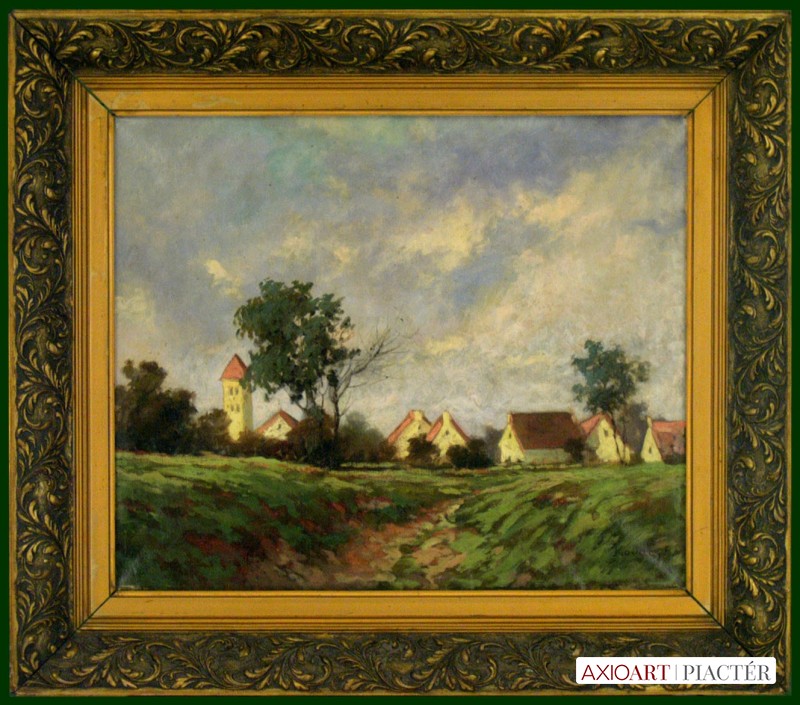 Kovács F. jelzéssel, magyar festő, XX. század : Falu látképe