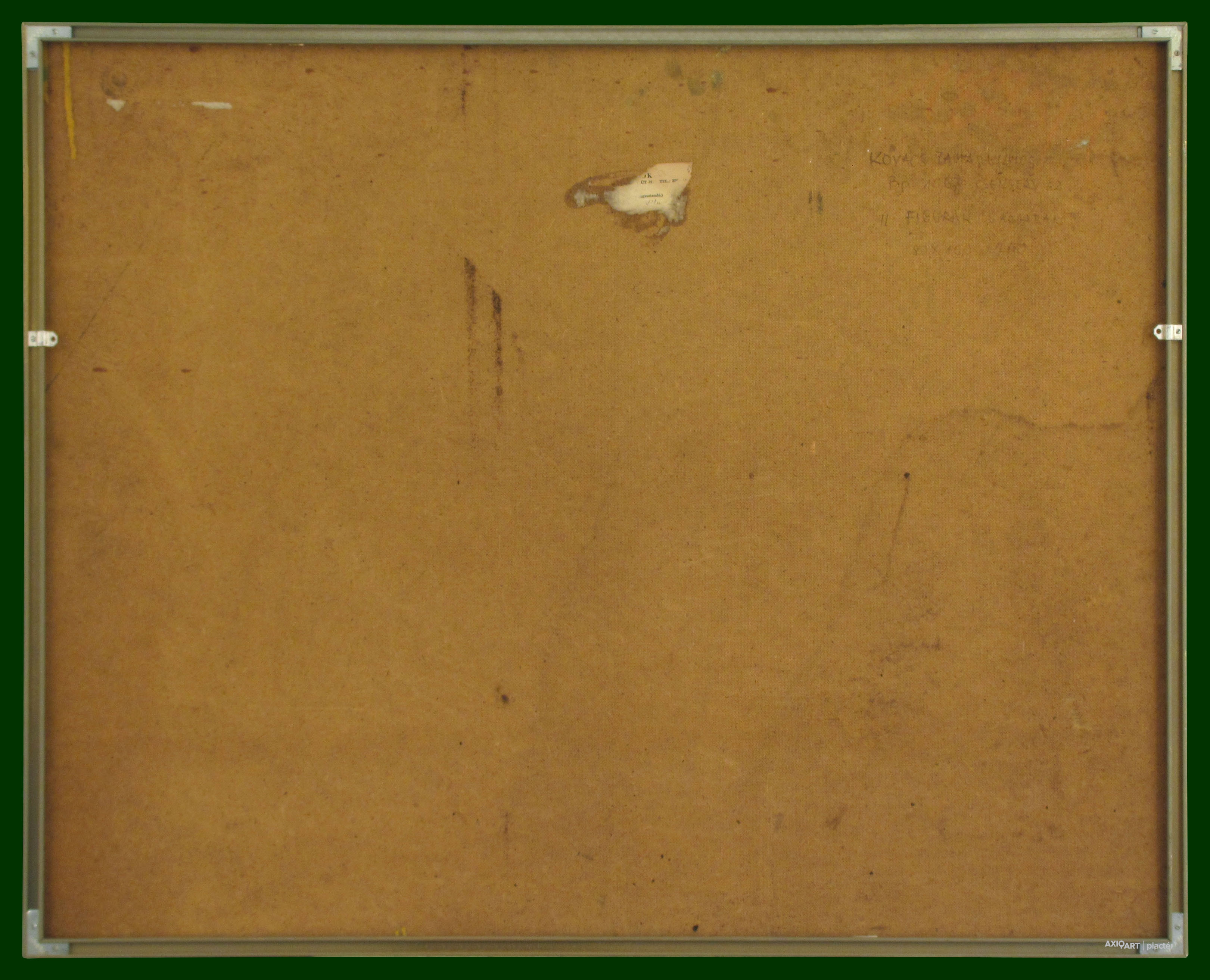 [FK2668/Bp301/4] A kép mérete: 50,5 x 80,5 cm keret nélkül. Készült: Olaj, Vászon A kép Moldován István (Kolozsvár, 1911) alkotása. Jelezve Jobbra lent "Moldován István" A festmény jó állapotban van. Keret: Ép A festmény hátoldalán a Képcsarnokvállalat raglapja láltható. Magyar festők és grafikusok életrajzi lexikona I-II. Festő. Tanulmányait Kolozsvárott, a Szépművészeti Főiskolán kezdte 1930-ban. A következő esztendőben a nagybányai Szépművészeti Iskolában Thorma János és Krizsán János korrektúráján képezte magát. 1931-ben a budapesti Képzőművészeti Főiskola hallgatója lett. Réti István, később Szőnyi István volt a mestere. Már mint főiskolás sok díjat és kitüntetést nyert. 1948-ban megkapta a római ösztöndíjat, de lemondva róla, Erdélybe ment. 1948-1950 között Erdélyben élt, és népművészetben gazdag vidékein festett. 1943-ban Kolozsvárott, 1946-ban Gyöngyösön, 1955-ben, 1959-ben és 1962-ben a Kulturális Kapcsolatok Intézetében, illetve a Csók Galériában rendezett egyéni bemutatókat. Ezen kívül több Európai országban, az USA-ban, Kanadában és Indiában is bemutatta munkáit. Eleinte sajátos atmoszférájú, lírai tájképeket, eleven színvilágú képmásokat festett, később mondernebb, erőteljesebben szerkesztett művekkel jelentkezett. A Pécsi Tanárképző Főiskola számára mozaikot készített. Erdély szerelmese volt. A székely népművészet gazdag formavilágának hatása döntő jelentőségűvé vált sokoldalú művészetében. Műv. díjak: a Szinyei Társaság elismerő oklevele, a Főváros festészeti-díja, "Kolozsvár a képzőművészetben" II. díj, állami ösztöndíj, római ösztöndíj, a Képzőművészek Szövetsége Észak-Magyarországi festészeti díja, SZOT festészeti díj. Több murális művet (mozaik) alkotott. A Magyar Nemzeti Galéria több alkotását őrzi. (M. L.: Műv. 1967/6, RI-NM) Magyar festők és grafikusok életrajzi lexikona I-II. Műgyűjtők és kereskedők kézikönyve Festő. Tanulmányait a kolozsvári Szépművészeti Főiskolán kezdte 1930-ban. A nagybányai szabadiskolában is megfordult. Itt Thorma János és Krizsán János korrektúráján képezte magát. 1931-ben Budapesten a Képzőművészeti Főiskola hallgatója lett. Réti István, később Szőnyi István volt a mestere. Már mint főiskolás sok díjat nyert. 1948-ban megkapta a római ösztöndíjat, de lemondva róla, Erdélybe ment. 1948-1950 k. Erdélyben élt, és népművészetben gazdag vidékein festett. 1943-ban Kolozsváron, 1946-ban Gyöngyösön, 1955-ben, 1959-ben és 1962-ben a Kulturális Kapcsolatok Intézetében, illetve a Csók Galériában rendezett önálló kiállítást. Ezen kívül több Európai országban, az USA-ban, Kanadában és Indiában is bemutatta műveit. Eleinte sajátos atmoszférájú, lírai tájképeket, eleven színvilágú képmásokat festett, később mondernebb, erőteljesebben szerkesztett művekkel jelentkezett. A Pécsi Tanárképző Főiskola számára mozaikot készített. Erdély szerelmese volt. A székely népművészet gazdag formavilágának hatása döntő jelentőségűvé vált sokoldalú művészetében. 1942-ben megkapta a Szinyei Társaság elismerését, és a Főváros festészeti-díjat,1943-ban elnyerte a "Kolozsvár a képzőművészetben" c. díjat. 1947-ben állami ösztöndíjat,1948-ban a római ösztöndíjat, 1972-ben a Képzőművészek Szövetsége Észak-Magyarországi festészeti díját kapta meg. A MNG több művét őrzi. (M. L.: Műv.-1976/6) Magyar festők és grafikusok adattára Tanulmányait Kolozsvárott a Képzőművészeti Főiskolán, majd Nagybányán Thorma János és Krizsán János irányítása mellett kezdte, 1931-től Budapesten megszakításokkal a Képzőművészeti Főiskolán Réti István és Szőnyi István növendékeként fejezte be. 1949-ben és 1950-ben ösztöndíjjal dolgozott Erdélyben, majd hosszú tanulmányutakra indult Nyugat-Európába, az Egyesült Államokba, s a Szovjetunióba. Először Kolozsvárott lépett a nyilvánosság elé 1943-ban, majd 1946-ban Egerben és Gyöngyösön, 1947-ben Miskolcon, 1948-ban Hatvanban, 1955, 1961 és 1981-ben a Csók Galériában, 1959-ben a KKI-ben, 1960-ban Nagykanizsán, 1963-ban Kiskunfélegyházán, 1966-ban Debrecenben, 1969 és 1975-ben Békéscsabán, 1971-ben a Mednyánszky Teremben, 1973-ban Gyöngyösön és Debrecenben, 1977-ben Egerben, 1979-ben Veszprémben, 1983-ban Miskolcon, 1984-ben Csepelen, 1986-ban a Vigadó Galériában rendezett önálló kiállítást. Külföldi kiállításai: Moszkva, Varsó, India, Szófia, Párizs, Bukarest, Belgrád, New York, Montreál és Toronto. Eddig közel kétezer színes táblaképet festett, de szívesen foglalkozik mozaikkészítéssel is. 1964-ben a Pécsi Pedagógiai Főiskola, 1968-ban a Salgótarjáni Kórház, 1969-ben a názáreti templom és 1970-ben a Videoton Vállalat díszterme részére mozaikot készített. - Erdély szerelmese. A székely népművészet gazdag formavilágának hatása döntő jelentőségűvé vált festészetében. Olyan formanyelvet alakított ki magának, amely színvilágában és summázó formaalakításában sajátos erdélyi zamat érződik, ugyanakkor korszerűen modern is konstruktivista stílusa. Munkásságát 1942-ben a Szinyei Társaság elismerésével és a Fővárosi festészeti-díjjal, 1943-ben Római-ösztöndíjjal, 1947-ben Állam ösztöndíjjal (Románai), 1963-ben a SZOT festészeti-díjával, 1972-ben a Képzőművészek Szövetsége Észak-Magyarországi festészeti-díjával tüntették ki. - Irod.: Bíró Béla: Kolozsváry Moldován István. Erdélyi Helikon, 1943.; Felvinczi Takács Zoltán: Kolozsváry Moldován István. Kolozsvár, 1943.; Dutka Mária: Magyar Nemzet, 1961.; Maksay László: Moldován István. Művészet, 1965.; D. Fehér Zsuzsa. Moldován István, Bp. 1971.; Theisler G