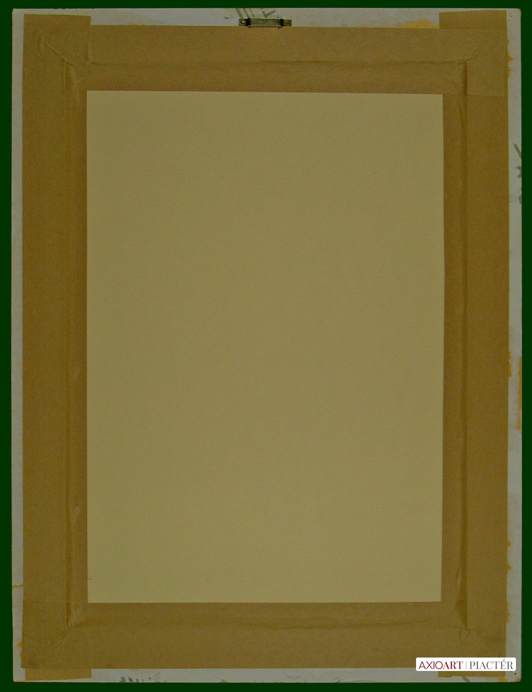 [FK1845/Z24/18] A kép mérete: 50 x 66 cm keret nélkül. Készült: pasztell, tempera, Papír A kép Kéri László (Budapest, 1949) alkotása. Jelezve Jobbra lent "Kéri László 76" A festmény jó állapotban van. Keret: Új A festmény hátoldalán a Képcsarnokvállalat raglapja látható. Magyar festők és grafikusok életrajzi lexikona I-II. Festő, grafikus. Tanulmányait a budapesti Képzőművészeti Főiskola festőszakán végezte 1976-ban. Sarkantyu Simon festőművész útmutatásai mellett képezte magát, de mesterének tartja Svády Lajost is. Évekig Szentesen dolgozott, majd Hódmezővásárhelyen telepedett le. 1977-ben tartotta első tárlatát. Ezt számos csoportos és egyéni bemutató követte. 1998-ban a Szegedi Táblaképfestészeti Biennálén szerepelt sikerrel. A Vásárhelyi Őszi Tárlatokon, valamint a békéscsabai Alföldi Tárlatokon nagyszámú díjat nyert el. Nem alföldi születésű, de tárgyi, valamint képi elemekkel kapcsolódik az alföldi hagyományokhoz. Rajzai, tusrajzai elementáris grafikusi tehetségről árulkodnak. Emberi viszonyokat, meghökkentő - alkalmasint - megdöbbentő emberi helyzeteket ábrázolnak rajzai. Festészetét illletően, pályakezdő korában erőteljesen érződött képein választott mesterének hatása, valamint a kései manierizimus és a korai barokk gomolygó, dinamikus rajzossága, erőteljes színvilága. A '80-as évek elején színei egyszerűbbek, tisztábbak lesznek. A '80-as, '90-es évtizedfordulón újból zaklatottan fest, diszharmonikus szín és tónuskontrasztokat használ. Az évtized vége felé újra higgadtabb megoldásokkat próbálkozik. Akvarellben és pasztellben is elismert művész, díszletterveket is készít. Számos köztéri munkája ismert (többnyire pannók). Alkotásai a Magyar Nemzeti Galéria és a hódmezővásárhelyi Tornyai J. Múzeum őrzi. (Pogány Gábor, MÉ, N.I.: Új Műv, 1992/5, Sz.P.: Új Műv. 1998/10) Magyar festők és grafikusok életrajzi lexikona I-II. Műgyűjtők és kereskedők kézikönyve Festő. Tanulmányait a bp.-i Képzőművészeti Főiskolán végezte, majd egy ideig Szentesen, később Hódmezővásárhelyen működött, ahol 1977-ben tartotta első tárlatát. Festészetének meghatározója az Alföld, de tárgyi és képi elemekkel kapcsolódik az alföldi hagyományokhoz. (MÉ) Magyar festők és grafikusok adattára Tanulmányait 1976-ban a Képzőművészeti Főiskolán végezte, a még ebben az évben Szentesre költözött. Jelenleg Hódmezővásárhelyen él, ahol 1977-ben tartotta első kiállítását. Festészetének meghatározója választott szűkebb hazája, az Alföld. Bár nem közvetlenül,inkább áttételesen, tárgyi és képi elemekkel kapcsolódik az alföldi hagyományokhoz. - Irod.: P. Sz. T.: Művész életrajzok. Bp. 1985. Művész életrajzok kortárs magyar képzőművészek 1976-ban végzett a Képzőművészeti Főiskolán, s még ez évben Szentesre költözött. Jelenleg Hódmezővásárhelyen él; első kiállítása e városban volt 1977-ben. - Festészetének meghatározója választott szűkebb pátriája, az Alföld; bár nem közvetlenül, inkább áttételesen, tárgyi és képi elemekkel kapcsolódik az alföldi festészeti hagyományokhoz. Kortárs magyar művészeti lexikon I-III. 1976: MKF, festő szak, mestere: Sarkanyú Simon, de Sváby Lajost is mesterének tartja. 1976-84-ig Szentesen él, azóta Hmvhelyen. A Vásárhelyi Őszi Tárlatokon és a bcsabai Alföldi Tárlatokon nagyszámú díjat nyert; 1980: PIM, József A.-pályázat HNF díja; 1978, 1984, 1986: Szegedi Nyári Tárlat díja; 1987: Tornyai Plakett; 1992: Akvarell B: Eger város Önkormányzat díja; 1998: Zene szemeimnek, MATÁV festészeti pályázat II. díja. Pályakezdő korában erőteljesen érződött képein választott mesterének hatása, valamint a kései manierizmus, és a korai barokk gomolygó, dinamikus rajzossága, erőteljes színvilága. A 80-as évek elején a színek egyszerűbbek, tisztábbak lesznek és előszeretettel alkalmaz a képen belső fényforrást. A 80-as, 90-es évtizedfordulón újból zaklatottaan fest, diszharmonikus szín és tónuskontrasztokat használ, szimbolikája áttételesebbé válik, majd kisméretű vásznakból sorozatokat készít, egy keretben álllítva ki azokat. Az évtized vége felé újra higgadtabb megoldásokat választ. Kéri László festészete mindvégig emberközpontú, figurális, az erőteljes emberi érzelmek közvetítője. Akvarellben és pasztellben is elismert művész, díszletterveket is készít. Ek: 1977: Medgyessy T., Hmvhely; 1979: Kisg. Szentes; 1981: Horváth E. G., Bgyarmat; 1983: Móra F. M. Képtára, Szeged; 1985: Vaszary T., Kaposvár; Gyöngyösi G., Gyöngyös; 1988: M. Historii, Lódz (PL); Magyar Int. Varsó; 1989: Art Service G., Párizs (kat.); 1990: Chateau d' Eguilly, Pouilly en Auxois (FR); 1991: Coll. Hung., Bécs; Műv. Közp., Nagykanizsa; 1993: Art Service G., Párizs; 1995: Wesselényi 70 G.; Tornyai J. M., Hmvhely; Bartók G., Szeged; 1996: G. de Meerse, Haarelmmermeer (NL); Hódtói Ált. Isk., Hmvhely; 1997: Tiszai G., Csongrád Vcsk: 1977-től Vásárhelyi Őszi Tárlatok, Szegedi Nyári Tárlatok, Alföldi Tárlatok, Bcsaba; 1981: Az út elején? Közben? Nyolc fiatal művész, Bartók 32 G.; 1982: I. Orsz. Rajzb., Salgótarján, Festőművészek a XI. kerületben, Bartók 32 G.; 1984: Vásárhelyi művészek, Zentai M. (Senta, YU), Vallomások az emberről, Juhász Gy. Műv. Közp., Szeged; 1987: Nközi Művésztelep, Iserlohn (NSZK); 1988: Görög Templom, Vác; Wilhelmshafen (D); 1994: Európa elrablása, Vigadó G.; 1997: Szimbiózis, Pest Center G.; 1998: Mednyánszky Társaság, S. Andrea G., Párma (OL); Belső rajz, Nádor G.; Kollázs, Vigadó G.; Zene szemeinknek, MATÁV pályázat, Pécs, Győr, Miskolc, Debrecen, Bp.; 1999: Ne vakolj a freskóra, Móra F. M. Képtára, Szeged; Mednyánszky Társaság, Koller G.; S