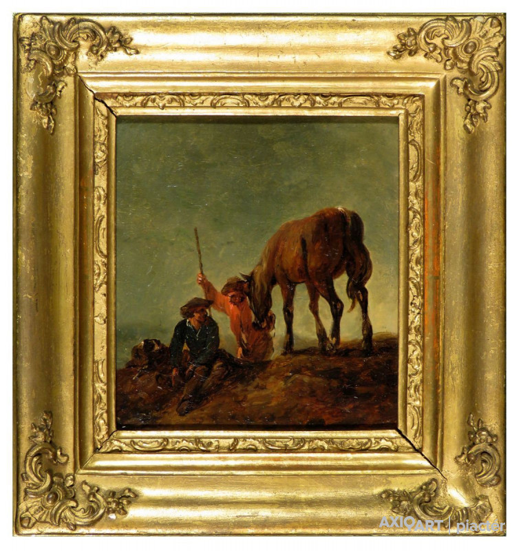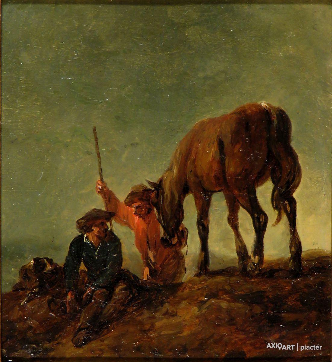 [FK1751/BX-2] A kép mérete: 16 x 25 cm keret nélkül. Készült: Olaj, Falemez A kép Magyar-Mannheimer Gusztáv (Pest, 1859, Budapest, 1937) alkotása. Jelezve: Jelzés nélkül A festmény jó állapotban van. Keret: Új MNG bírálati szám: 1108/1977. Magyar festők és grafikusok életrajzi lexikona I-II. Festő. Előbb a fővárosi Mintarajziskolában, később Bécsben H. Makartnál végzett művészeti tanulmányokat. 1878-tól a müncheni Képzőművészeti Akadémia növendéke lett. Itt a rézkarcoló Raab-nak, utána Löfftznek és Wagner Sándornak az irányításával tanult olyan sikerrel, hogy 1880-ban ezüstérmet, 1881-ben pedig dicsérő oklevelet és budapesti ösztöndíjat is kapott. Budapestre hazatérve, Benczúr-mesteriskolájában tanult a kapott ösztöndíjjal. Ekkor mutatkozott be a budapesti Műcsarnok közönségének az "Olvasó öregasszony", "A vőlegény jó kilátásai" című éleképekkel és néhány vázlattal. Később Bécsben H. Makartnak lett segédje egy dekoratív munkánál. A '90-es évek végén a nagybányai művésztelepen is megfordult. Ezután következett gyakran megismételt olaszországi útja. Még a sugárzó verőfény országában is híven kísérte a tompító müncheni tónus. 1901-ben "Esti hangulat" című alkotásával Társulati-díjat, 1902-ben állami kis aranyérmet nyert. 1910-ben a Velencei Biennálén "Tavasz" című festményét a Velencei Modern Képtár számára vásárolták meg. 1912-ben állami nagy aranyérmet nyert. Több ízben vett részt a budapesti Műcsarnok és a Nemzeti Szalon seregszemléin. 1913-ban, 1920-ban, 1922-ben, 1929-ben és 1933-ba kollektív kiállítása volt az Ernst Múzeumban. Stílusát a romantikus, a naturalizmus és a Makart-féle akadémikus dekorativizmus ötvözete jellemezte. A Szinyei Társaság alapítói közép tartozott. Illusztrálta Bródy Sándor, Mikszáth Kálmán, stb. műveit. Számos műve megtalálható a Magyar Nemzeti Galériában. Önarcképe a Magyar Történeti Képtárban van. (ML, Éber, L-MMM) Magyar festők és grafikusok életrajzi lexikona I-II. Műgyűjtők és kereskedők kézikönyve Festő. Előbb a fővárosi Mintarajziskolában, később Bécsben H. Makartnál, Münchenben pedig L. von Löfftznél és Wagner Sándornál tanult. Budapestre visszatérve, Benczúr-mesteriskolájában kapott több éves ösztöndíjat. 1901-ben "Esti hangulat" c. alkotásával Társulati-díjat, 1902-ben állami kis aranyérmet nyert. 1910-ben a Velencei Biennálén "Tavasz" c. képét a Velencei Modern Képtár számára vásárolták meg. 1912-ben állami nagy aranyérmet kapott. Több ízben szerepelt a Műcsarnok és a Nemzeti Szalon kiállításain. 1913-ban, 1920-ban, 1922-ben, 1929-ben és 1933-ban kollektív tárlata volt az Ernst Múzeumban. Stílusát a romantikus, a naturalizmus, és a Makart-féle akadémikus dekoratizmus ötvözete jellemezte. A Szinyei Társaság alapítói közé tartozott. Illusztrálta Bródy Sándor, Mikszáth Kálmán, stb. műveit. Számos műve megtalálható a MNG-ban. Önarcképe a MTK-ban van. (ML, Éber) Magyar festők és grafikusok adattára A bécsi akadémián Makart, a müncheni akadémián pedig Wágner tanítványa volt. Hazatérve a Benczúr-mesteriskola tagja lett. Stílusát a romantikus, a naturalizmus és a Makart-féle akadémikus dekoratizmus ötvözte, jellemezte. 1901-ben Esti hangulat c. képével társulati díjat, 1902-ben állami kis aranyérmet, 1912-ben állami nagy aranyérmet nyert. Tavasz c. képét 1910-ben megvásárolta a velencei Modern Képtár. Több ízben szerepelt csoportos kiállításon a Nemzeti Szalonban és az Ernst Múzeumban. Képei találhatók a MNG-ban. Számos illusztrációt is készített (Mikszáth Kálmán és Bródy Sándor műveihez stb.). Önarcképe a Magyar Történelmi Képcsarnokban található. Egyik alapító tagja volt a Szinyei Társaságnak. - Irod.: Herman Lipót: Magyar-Mannheimer Gusztáv. Magyar Művészet, 1937. Művészeti lexikon I-IV. Festő. Előbb a Mintarajziskolában, majd Bécsben H. Makartnál, Münchenben L. von Löfftznél és Wagner Sándornál tanult. Bp.-re visszatérve Benczúr mesteriskolájában kapott több éves ösztöndíjat. 1910-ben a Velencei Biennále kiállításán egyik képét (Tavasz) a velencei Modern Képtár számára megvásárolták. Színes, oldott előadású tájképeivel, sötétes hangulatú alakos kompozícióival a kiállítások állandó szereplője volt. Illusztrálta Bródy, Mikszáth stb. műveit. A Szinyei Társaság alapító tagjai közé tartozott, s több állami díjat nyert. Kampis Antal Művészeti lexikon I-II. Festő. Münchenben és Bécsben végezte tanulmányait. Képei túlnyomó részének tárgyát gyakori olaszországi tanulmányútjaiból merítette. Ilyenekkel szerepelt a Műcsarnokban a nyolcvanas évek óta, de temperamentumos előadása, mélytüzű színei csak nagysokára szereztek neki elismerést. A Campagna, sziklás, pikáns olasz tájai, kavargó felhői, patetikus hangulatai, élénk és egyéni előadása végre legjobb művészeink sorába emelték. Ily művei: Est a Campagnában, Esti hangulat, Erdőszéle stb. Eleinte inkább világos színhatású, utóbb mélyrefogott barnából és zöldből formált színharmóniája jelentkezik néhány alakos képén és tanulmányfején is (Libapásztorok, Arckép, Pulykapásztorlány)