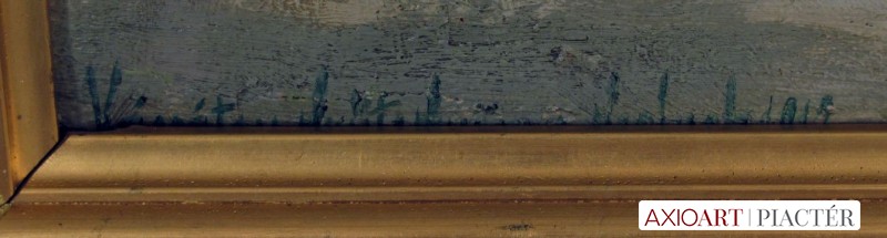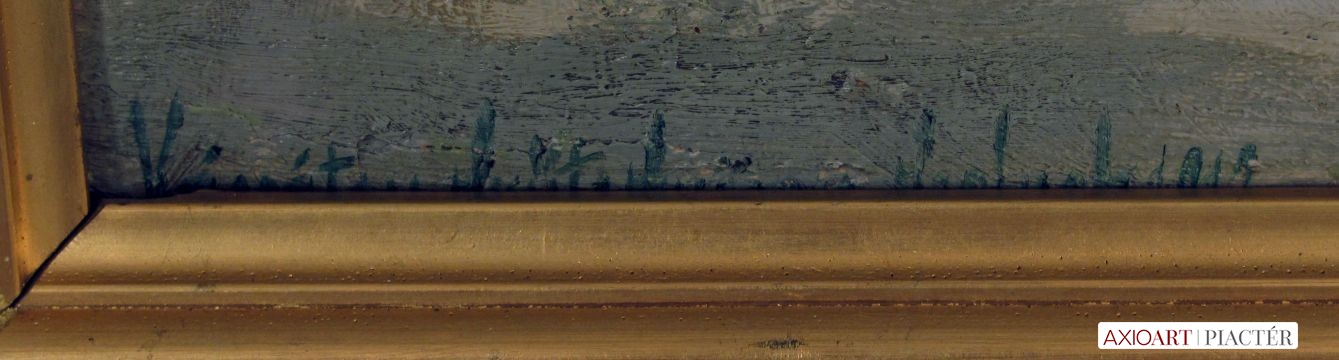 [FK3350/BX-2] A kép mérete: 28 x 34 cm keret nélkül. Készült: Olaj, Karton A kép Bosznay István (Csurgó, 1868, Budapest, 1944) alkotása. Jelezve Balra lent "Bosznay 912" A festmény jó állapotban van. Keret: Ép Magyar festők és grafikusok életrajzi lexikona I-II. Festő. A budapesti Rajztanárképzőben végezte tanulmányait Székely Bertalan és Greguss János festőművészek korrektúráján. Tanulmányúton járt Német- és Olaszországban, Angliában és Hollandiában. Hazatérve 1910-ig Debrecenben működött, mint rajztanár, 1910-től a budapesti Képzőművészeti Főiskola tanáraként dolgozott. 1893-tól szerepelt kiállításokon tájképekkel, melyek jobbára realisztikusan megfestett, széles képek. A Műcsarnokban az 1890-es évek végén bemutatott Ősszel, Erdőben és Radványi pusztán című képeit az állam vásárolta meg. A legjelentősebb tárlatokat 1908-ben és 1918-ban a Nemzeti Szalonban, 1924-ben a Műcsarnokban, 1933-ben a Művészeti Főiskolán, 1934-ben pedig Olaszországban, Velencében rendezte. Termékeny művész volt, munkáira számos kitüntetést kapott. 1913-ban Kis Aranyérmet kapott Münchenben. 1915-ben "November" című munkájára elnyerte az Állami Kis Aranyérmet. 1920-ban Wolfner-díjjal, 1922-ben Horváth Nándor Balaton-díjával, 1923-ban pedig Nagy Állami Aranyéremmel tüntették ki. Az alföldi és a dunántúli erdők borongós alkonya, a Balaton aranyló légköre, a tavasz virágba öltözött és a téli álomba merült fái a legkedvesebb témák voltak számára. Kifejezési formáiban a festői naturalizmus nyelvén minden kínálkozó tájszépségre érzékenyen láttatja a természetet. Jelentős értéket képviselő tájképeinek sorozat a Magyar Nemzeti Galériában és más hazai közgyűjtemények tulajdonában található. (Éber, PZ-SzMF, ML, KD) Magyar festők és grafikusok adattára A Mintarajziskolában tanult, mint Greguss János és Székely Bertelan növendéke. Tanulmányokat folytatott Német- és Olaszországban, Angliában és Hollandiában. A Képzőművészeti Főiskola volt tanára. 1893 óta állított ki. Gyűjteményes kiállításai voltak Budapest 1908, 1918, 1927-ben, Velencében 1934-ben. 1915-ben "November" c. képére (MNG) állami kis aranyérmet kapott. A dunántúli erdők borongós alkonya, a dombos, fás magyar hegyvidék, a Balaton aranyló légköre, a tavasz virágba öltözött és a tél álomba merült fái a legkedvesebb témái. Mindenben egy lélek szólal meg: a művész csöndes, mélabúra hajló lelke, érzésvilága. Kifejezési formái a festői naturalizmus nyelvén minden kínálkozó tájszépségre érzékenyen láttatja a természetet. - Irod.: Pipics Zoltán: Száz magyar festő. Bp. 1943. Magyar festők és grafikusok életrajzi lexikona I-II. Műgyűjtők és kereskedők kézikönyve Festő. A bp.-i Rajztanárképzőben végezte tanulmányait Székely Bertalan és Greguss János festőművészek korrektúráján. Tanulmányúton járt Német- és Olaszországban, Angliában, Hollandiában. Hazatérve 1910-ig Debrecenben működött mint rajztanár. 1910-től a budapesti Képzőművészeti Főiskola tanáraként dolgozott. 1893-tól szerepelt kiállításokon tájképekkel, melyek nagyobbára realisztikusan megfestett széles képek. 1908-ban és 1918-ban a Nemzeti Szalonban, 1924-ben a Műcsarnokban, 1933-ban a Művészeti Főiskolán, 1934-ben pedig Velencében rendezett gyűjteményes kiállítást. 1913-ban kis aranyérmet kapott Münchenben. 1915-ben a "November" c. képére megkapta az állami kis aranyérmet. 1920-ban Wolfner-díjjal, 1922-ben Horváth Nándor Balaton-díjával tüntették ki, 1923-ban pedig megkapta a nagy állami aranyérmet. A dunántúli erdők borongós alkonya, a Balaton aranyló légköre, a tavasz virágba öltözött, és a tél álomba merült fái a legkedvesebb témák voltak számára. Kifejezési formáiban a festői naturalizmus nyelvén minden kínálkozó tájszépségre érzékenyen láttatja a természetet. Számos műve a MNG-ban és más hazai közgyűjtemény tulajdonában található. (Éber, PZ-SzMF, ML) Művészeti lexikon I-IV. Festő, pályája elején debreceni rajztanár. A Műcsarnokban a kilencvenes évek végén kiállított Ősszel, Erdőben és Radványi pusztán c. képeit az állam vette meg. 1910-ben a Képzőművészeti Főiskola tanára lett. Termékeny művész volt, munkáira számos kitüntetést kapott. A Nemzeti Szalonban kétszer (1908 és 1918), a Műcsarnokban 1927-ben s a Képzőművészeti Főiskolán 1933-ban volt gyűjt. kiállítása. Realisztikusan festett tájképeinek sorozata a Nemz. Gal.-ban van. Művészeti lexikon I-II. A budapesti rajztanárképzőn végezte tanulmányait s 1910-ig mint rajztanár működött Debrecenben, azóta Budapesten a Képzőműv. Főisk. tanára. 1893-tól állít ki tájképeket (A radványi pusztán 1909, Poprádi tó 1913 stb.), amelyek nagyobbára realisztikusan megfestett széles látképek.
