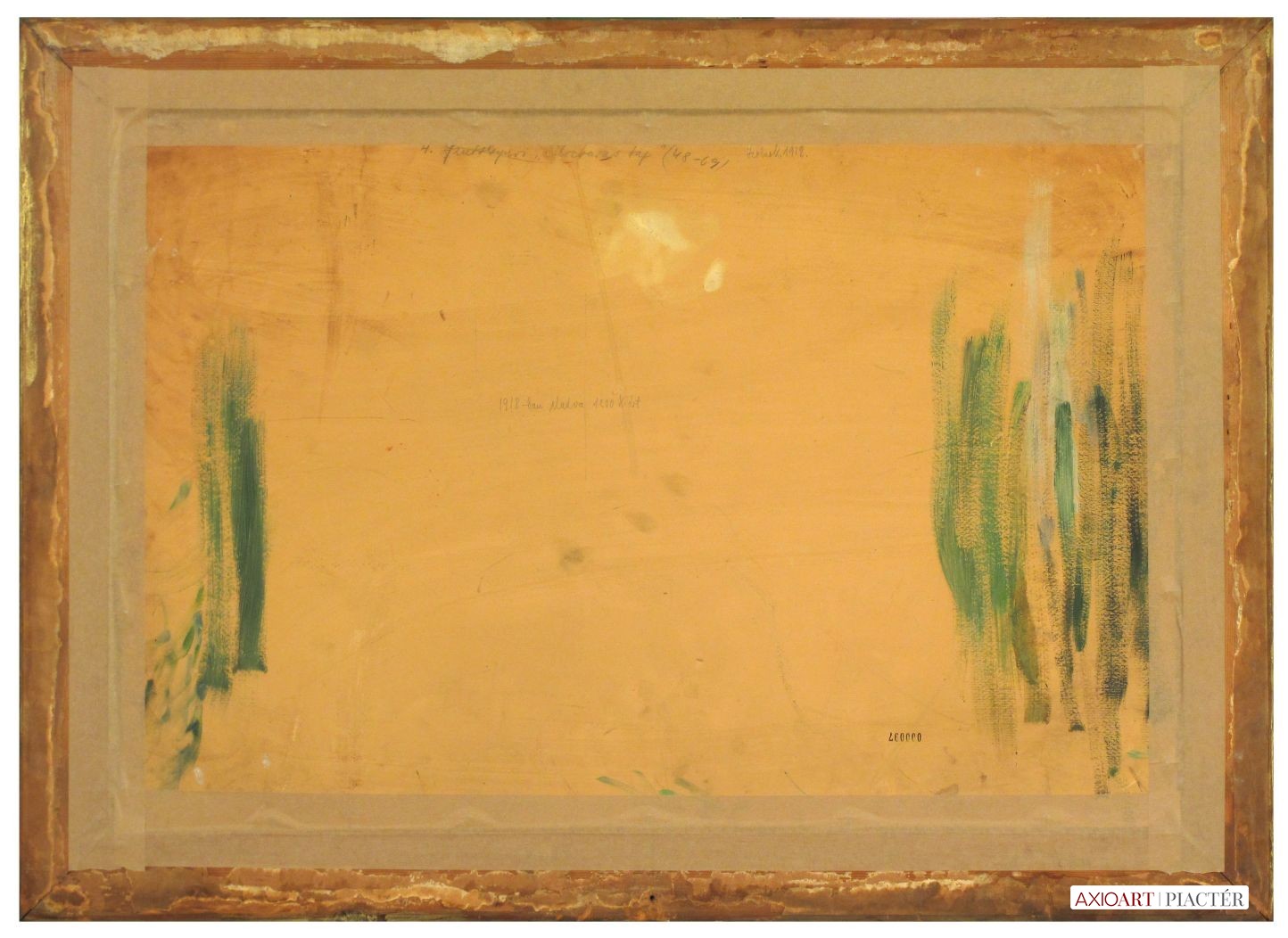 A festmény hátoldalán autográf írással: Szűcs Gyuri "Mocsaras táj" (48-69) Szolnok 1912 - 1918-ban eladva 1200 K-ért