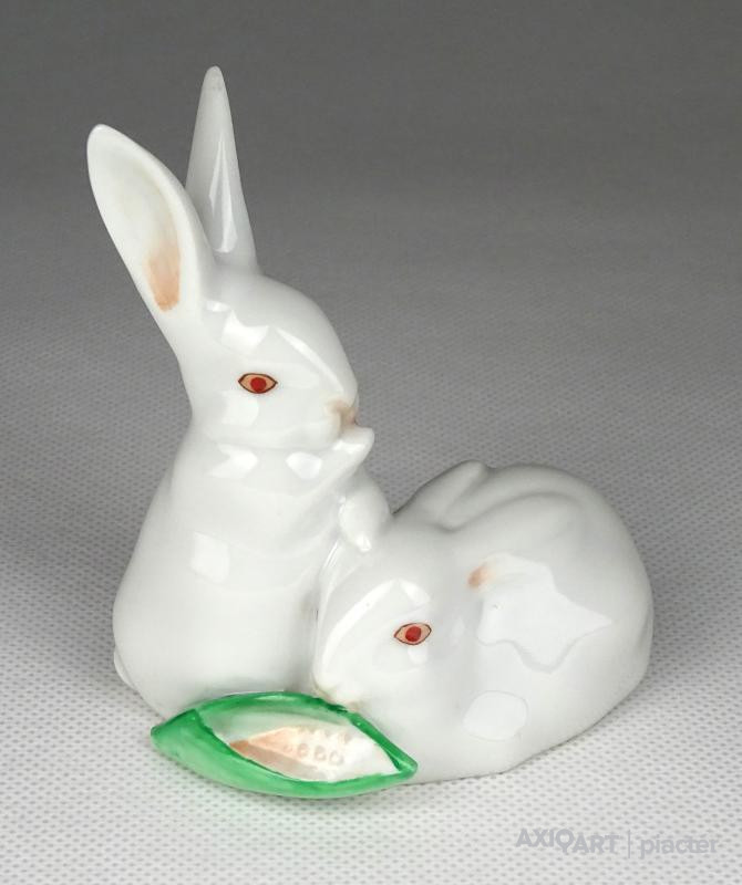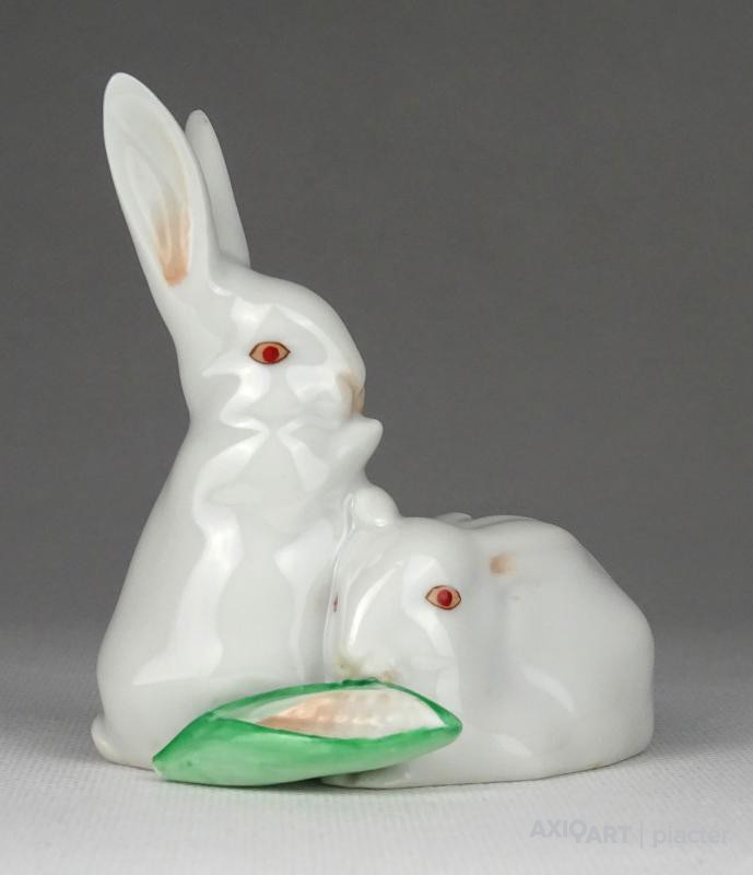 Kukoricát evő Herendi porcelán nyuszi páros 1944