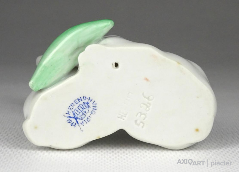 [1H408/X127] Hibátlan állapotú porcelán Herendi nyúl, nyuszi páros. Alján kék Herendi márkajelzés: HEREND HUNGARY 1944 Formaszám: 5326 Mélynyomással: HEREND Magasság: 8 cm Szélesség: 7.3 cm Súly: 0.07 kg