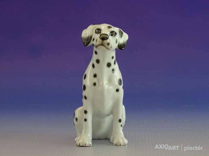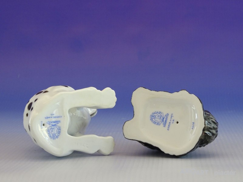 [0I393/UZ-K] Ritka, egyedi megrendelésre készített erre a két kutyára készített bőrrel bevont díszdobozban található Herendi porcelán kutya pár. Ebben a formában, összeállításban teljesen egyedi, egyszeri. A két kandidáló ország ősi kutyái, dalmata és puli. A dalmatán jelzés, formaszám: HEREND HUNGARY HANDPAINTED 15566 000/C MC 2347 A pulin jelzés, formaszám: HEREND HUNGARY HANDPAINTED 15879 000/C HB 2801 A dobozon feliratok: CROATIA HUNGARY BIDDING FOR UEFA EURO 2012 A tárgy különlegességét az adja, az ajándék nem nyerte el a létjogosultságát ugyanis a 2012-es labdarúgó Európa-bajnokság rendezési jogára tíz ország jelentkezett. Horvátország és Magyarország (együtt), Lengyelország és Ukrajna (együtt), stb. Végül Lengyelország és Ukrajna rendezhette, de ez az ajándék már előre elkészült. Az Eb-t a címvédő Spanyolország nyerte, története során harmadszor. Ezt az ajándékot a Spanyol labdarúgó-szövetség elnöke kapta volna: ANGEL MARIA VILLAR LLONA Kandidáló videó: https://www.youtube.com/watch?v=pX6FX7fB-6E VILLAR LLONA Angel Maria - Spain     Nationality: Spanish  Date of Birth: 21 January 1950  Mother tongue: Spanish  Other Languages: English, French  Place of Residence: Madrid, Spain FIFA Executive Member Since 1998  Occupation President of the Spanish Football Federation Professional Career Lawyer, ex-international football player, President of the Spanish Football Federation Most memorable or most important tournament or match: 1973 Copa del Rey Cup final: Athletic Club - CD Castellon 2:0 All-time favourite goalkeeper: Jose Angel Iribar (ESP) All-time favourite player: Alfredo Di Stefano (ESP/ARG) President of the Real Federación Española de Fútbol   Forrás: http://www.fifa.com/about-fifa/committees/people=31271/index.html