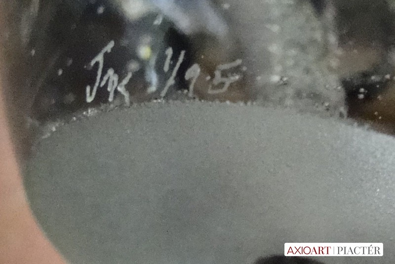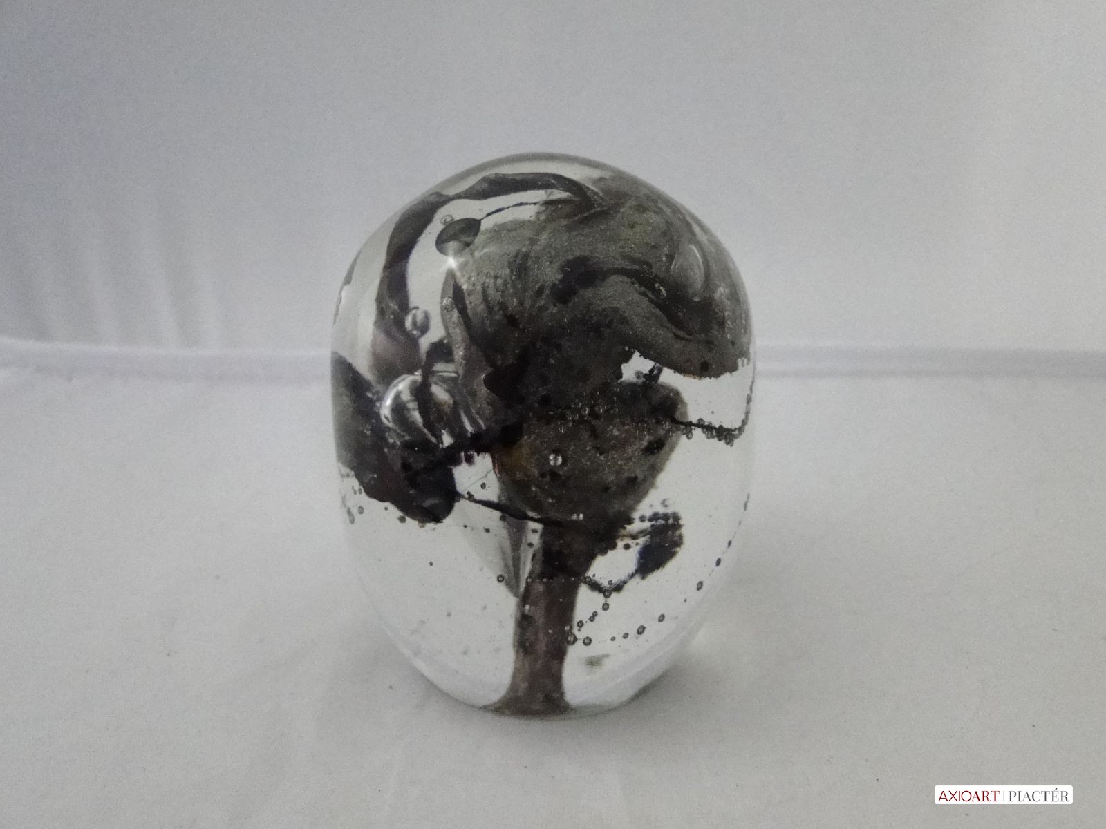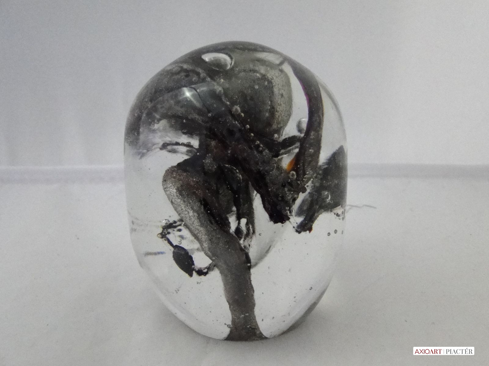 [8582/UZ-N] Művészi különleges jelzett fújtüveg levélnehezék modern stílusban. Jelzés: IRK 1/95 Magasság: 8 cm Szélesség: 6 cm Súly: 0.502 kg