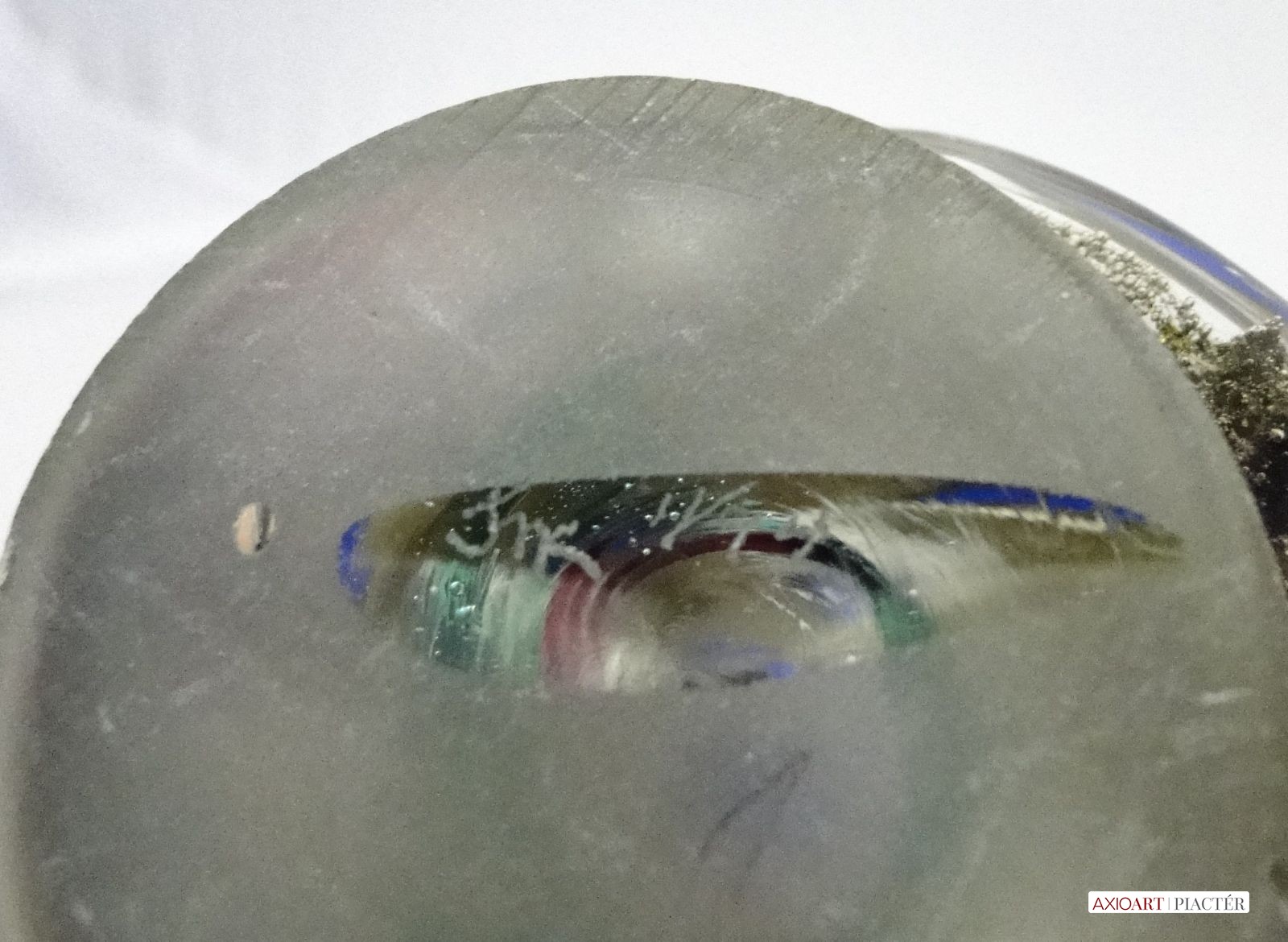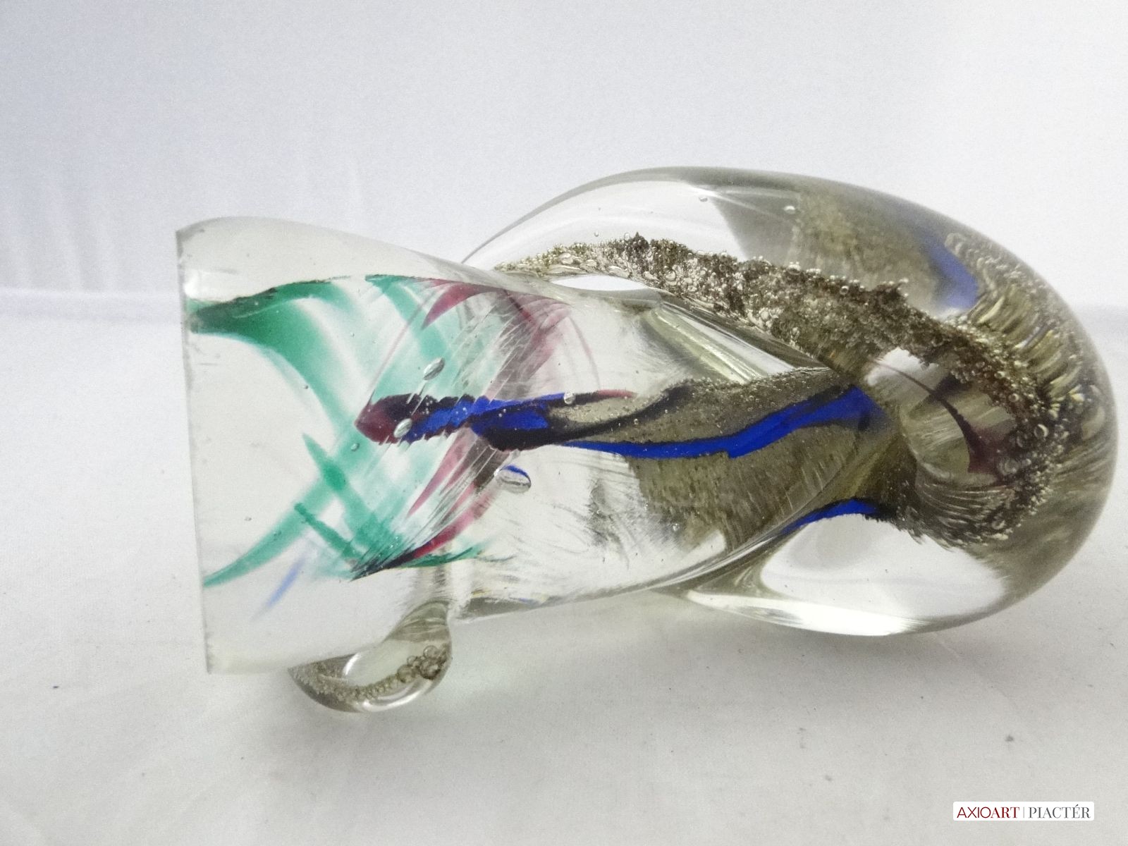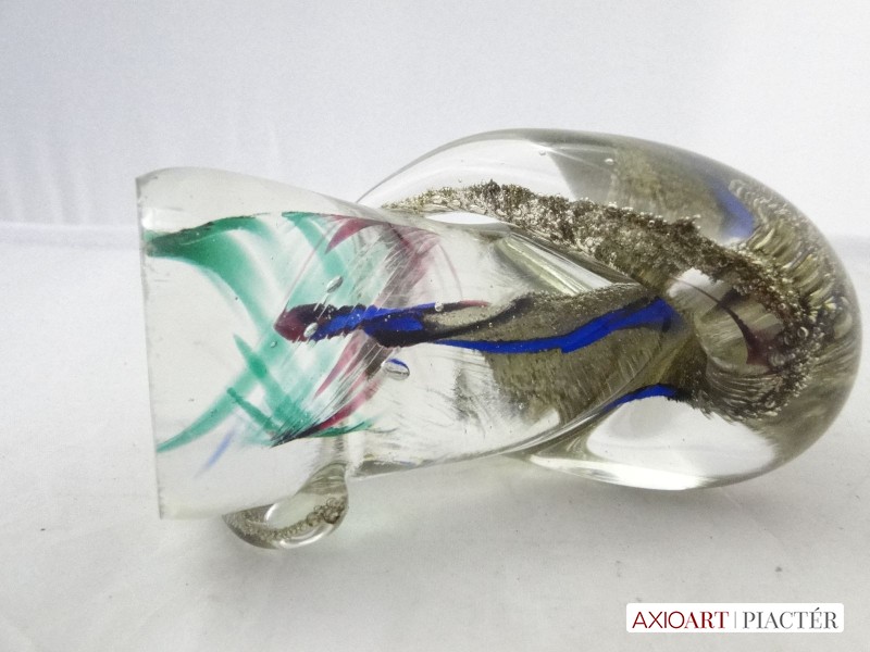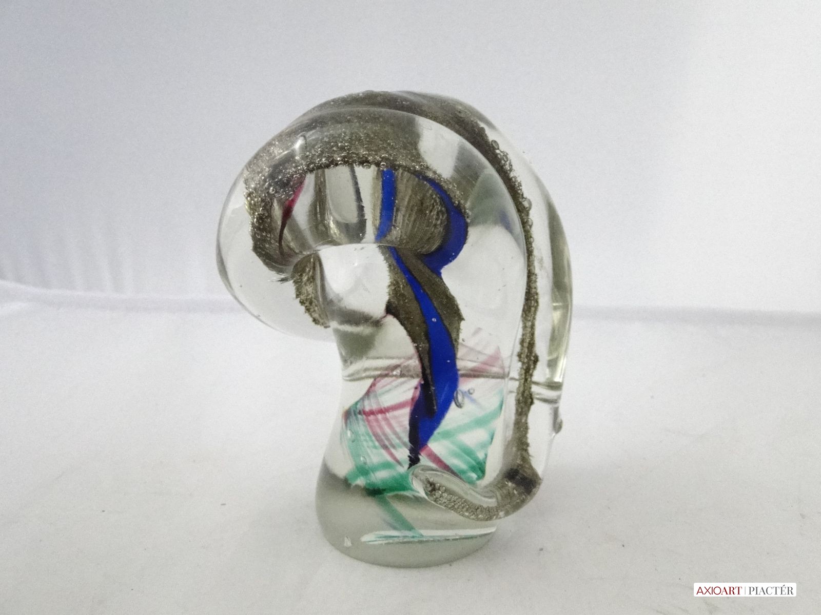 [8577/UZ-N] Művészi különleges jelzett fújtüveg levélnehezék modern stílusban. Jelzés: IRK 11/94 Magasság: 11 cm Szélesség: 9 cm Súly: 0.649 kg