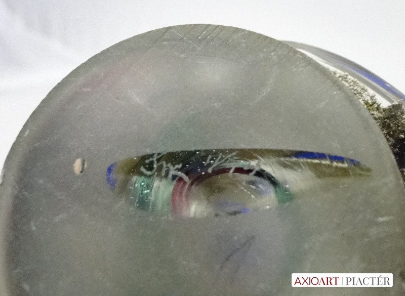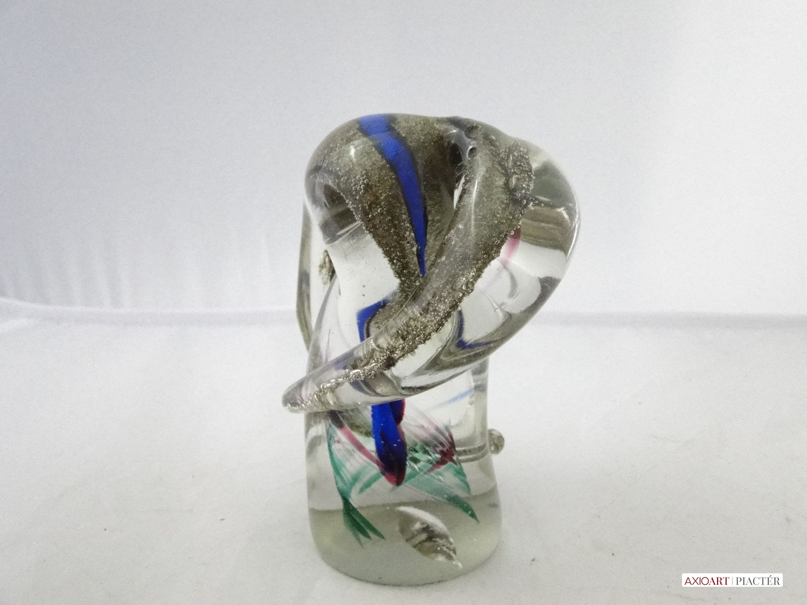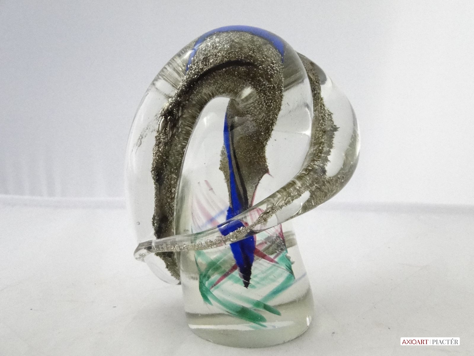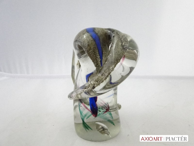 [8577/UZ-N] Művészi különleges jelzett fújtüveg levélnehezék modern stílusban. Jelzés: IRK 11/94 Magasság: 11 cm Szélesség: 9 cm Súly: 0.649 kg