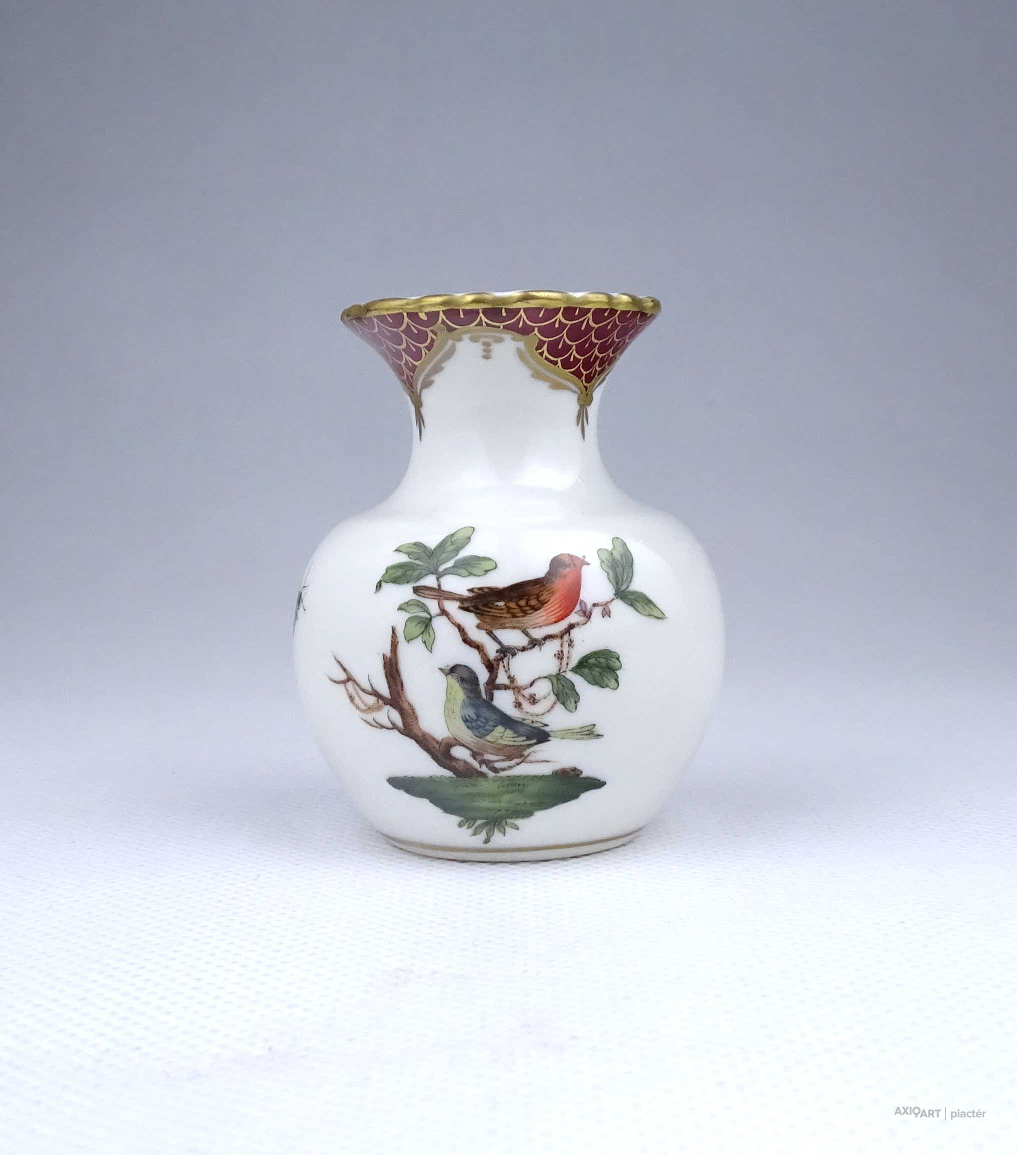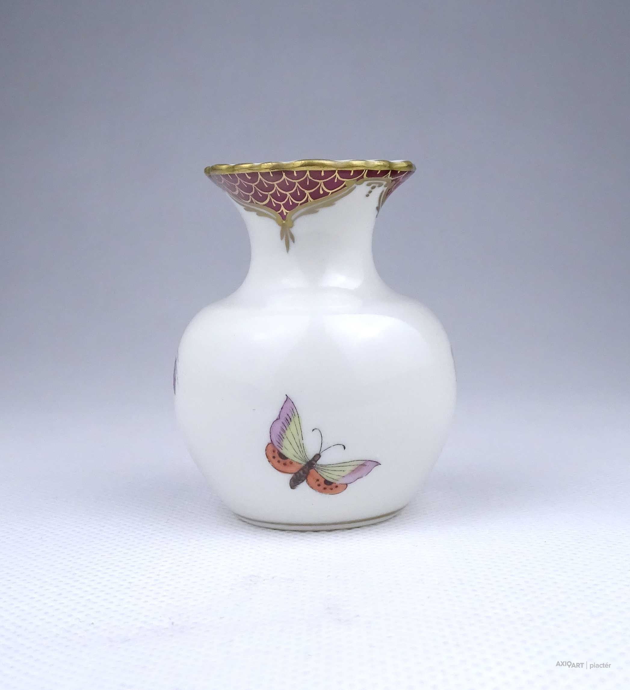 Különleges RITKA Rothschild mintás Herendi porcelán kis váza ibolyaváza 6.6 cm