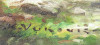 [1Y029/Z018] Olaj farost festmény, üveglap mögött, hibátlan képcsarnokos keretben. Hátoldalán Képcsarnok Vállalat papír címkéje: A művész neve: SCHÉNER MIHÁLY A kép címe: TÁJ Magasság: 66.5 cm Szélesség: 86 cm Súly: 6.54 kg Schéner Mihály festő, grafikus, szobrász, keramikus, bábtervező Medgyesegyháza, 1923-01-9 Elhalálozott: Budapest, 2009. május 11. Honlap: http://www.kormendigaleria.hu/kiadvany.html 1942-1947: Magyar Képzőművészeti Főiskola, tanára: Rudnay Gyula. 1978: Munkácsy-díj; 1984: érdemes művész; 1989: kiváló művész; 1995: Kossuth-díj. 1992-től a Magyar Művészeti Akadémia, 1993-tól a Széchenyi Irodalmi és Művészeti Akadémia tagja. 1956-ig tanított. 1982: Nagyatádi Faszobrász Alkotótelep, 1985: Nemzetközi Acélszobrász Alkotótelep, Dunaújváros. A stílusában felismerhető, mégis sokféle műtárgyat létrehozó ~ gazdag, állandóan alakuló életműve a folyton változó világban helyét kereső, az alkotói szabadságot megvalósító XX. századi képzőművész példázata lehetne. Magát expresszív-szürrealista alkotónak nevezi. Egyaránt dolgozik festékkel, textillel, fával, fémmel. Rajzol, szerkeszt, farag, épít, gyúr, varr és ragaszt, felhasználja a mézesbábok öntőformáit. Festő, rajzoló, textilszobor- és bábkészítő, fazekas, asztalos, esztergályos. Háromlépcsős folyamatban gondolkozik: rajzban tervez, majd fest, szobrot készít, “formába önt”, mindig a végső plasztikai megoldást keresi. Ami állandó és mégis játékosan változékony megjelenésű Schéner művészetében, az a gyermekkori emlékek által meghatározott népi mesterségek iránti tiszteletet kifejező motívumkincs, a tárgyi folklór formakészlete, amely már-már kézjegyként ismétlődik munkáin. Mitologikussá nőtt képzelete új lényeket teremt, pl: a Pigulát, amely disznótestű, emberfejű teremtmény. Schéner festményein a szürrealista motívumokat konstruktív szerkezetbe rendezi, a geometriát és az organikus természeti motívumokat egyaránt beépíti műveibe. A népi, népművészeti formakincsből merített lovas huszárok, betyárok, szegénylegények cifra szűr mentéje, piros csákója, fekete csizmája, az önálló életet élő zsinórdíszek és mézeskalács bábok, a kiskocsik a gyermekkori vásárok, búcsúk színes forgatagába vezet. A primér motívumokat aztán felváltják a vastagon felhordott felületbe karcolt jelek, vonalhálózatok, amelyek a játszó gyermek homokba rajzolt ábráit, a pásztorember fába vésett üzeneteit, az ősember barlang falába rótt mágikus jeleneteit idézik meg. A művész pillanatnyi érdeklődésének megfelelően a színek búvópatakként tűnnek el és jelennek meg ismét. A 60-as években leginkább a formákkal való játék érdekelte, a festmények felülete egyre gazdagodott: a táblaképek felületén applikációk jelentek meg, vagy lemállasztott rétegek hagyták maguk után hiányukat, motívumok nélküli ősformák, archetipikus képzetek bukkantak fel művészetében. A véletlenszerűnek látszó rétegekkel való játék azonban tudatos komponálás eredménye, amely később nyilvánvaló ritmusnak és formai szerkesztettségnek adja át a helyét, mint a Törvénytáblák c. sorozaton. A különböző művészi kifejezési formák egymásra termékenyítő hatással vannak, át- meg áthatják egymást. Textilszobrai, amelyekkel új műfajt teremtett, ugyanazzal az automatikus, expresszív-szürrealista módszerrel készülnek, mint festményei. A hagyományosan a népművészetben alkalmazott anyag, a filc lehetőséget ad a népi formakincs felelevenítésére, amely azonban a művész különös szürrealista átiratában jelenik meg. A szívekkel kivarrt, zsinórdíszes Posztókotlós c. művén mézesbábok lógnak, hátán huszárok lovagolnak. Egész sor textilből készült kéz-plasztikát alkot, amelyeket az ujjakra rávarrt díszekkel öltöztet, személyesít meg. A színes-különös világból aztán ~ újra puritán képi és formai rendbe juttatja el a nézőt, majd nemsokára tépett, gyűrt, vágott, csorgatott, repedezni hagyott szenvedélyesen vonagló képi felületeket hagy hátra. Schéner készített apró gyermekjátékokat, térstruktúra-tereket, mászókákat is. A magyar népi formák mellett szürreális játékaiban gyakran alkalmaz görög mitológiai alakokat, “elkentaurosodott” lovakat, Gorgó-fejeket, sellőket, hárpiákat, Pán-ábrázolásokat. Schéner nemcsak saját művészetéről publikál, hanem művésztársairól is számos írása jelenik meg, elsősorban az Új Auróra c. folyóiratban, amelynek egy ideig főmunkatársa volt. Irodalom kiállítása, Magyar Építőművészet, 1962/4. Húsz év után, Művészet, 1965/4. BOZÓKY M.: ~, Tiszatáj, 1968/5. PERNECZKY G.: Nincs uborkaszezon, Élet és Irodalom, 1969. augusztus 8. BARÁNSZKY-JÓB L.: ~, Művészet, 1969/9. LÁSZLÓ GY.: ~ kaposvári kiállítása, Jelenkor, 1969/4. MAJOR M.: Pásztorok, betyárok, huszárok - kezek, Tükör, 1970. szeptember 15. FRANK J.: Bemutatjuk ~t, Élet és Irodalom, 1972. május 6. ról kiállítása ürügyén, Képzőművészeti Almanach, Budapest, 1972 Sötétkék kokasok, Élet és Irodalom, 1973. szeptember 9. MAJOR M.: ~ játékai, Élet és Irodalom, 1974. július 27. BARTA J.: Egy különös művész, Alföld, 1974/6. VADAS J.: Szárnykészítők, Élet és Irodalom, 1975. október 4. JUHÁSZ F.: A halál ellen játszani, Élet és Irodalom, 1975. május 17. PAP G.: Kincsek és műkincsek, Művészet, 1975/6. P. SZŰCS J.: Az utak kettéválnak, Művészet, 1978/3. Békési művészet, Művészet, 1978/7. SZAMOSI F.: ~ [kismonográfia], Budapest, 1978 VADAS J.: Játék a játékkal, Élet és Irodalom, 1979. augusztus 18. NÉMETH L.: ~ műveiről, Művészet, 1979/4. MIKLÓS P.: Mit akar ez a múzeum?, Művésze