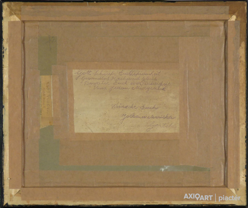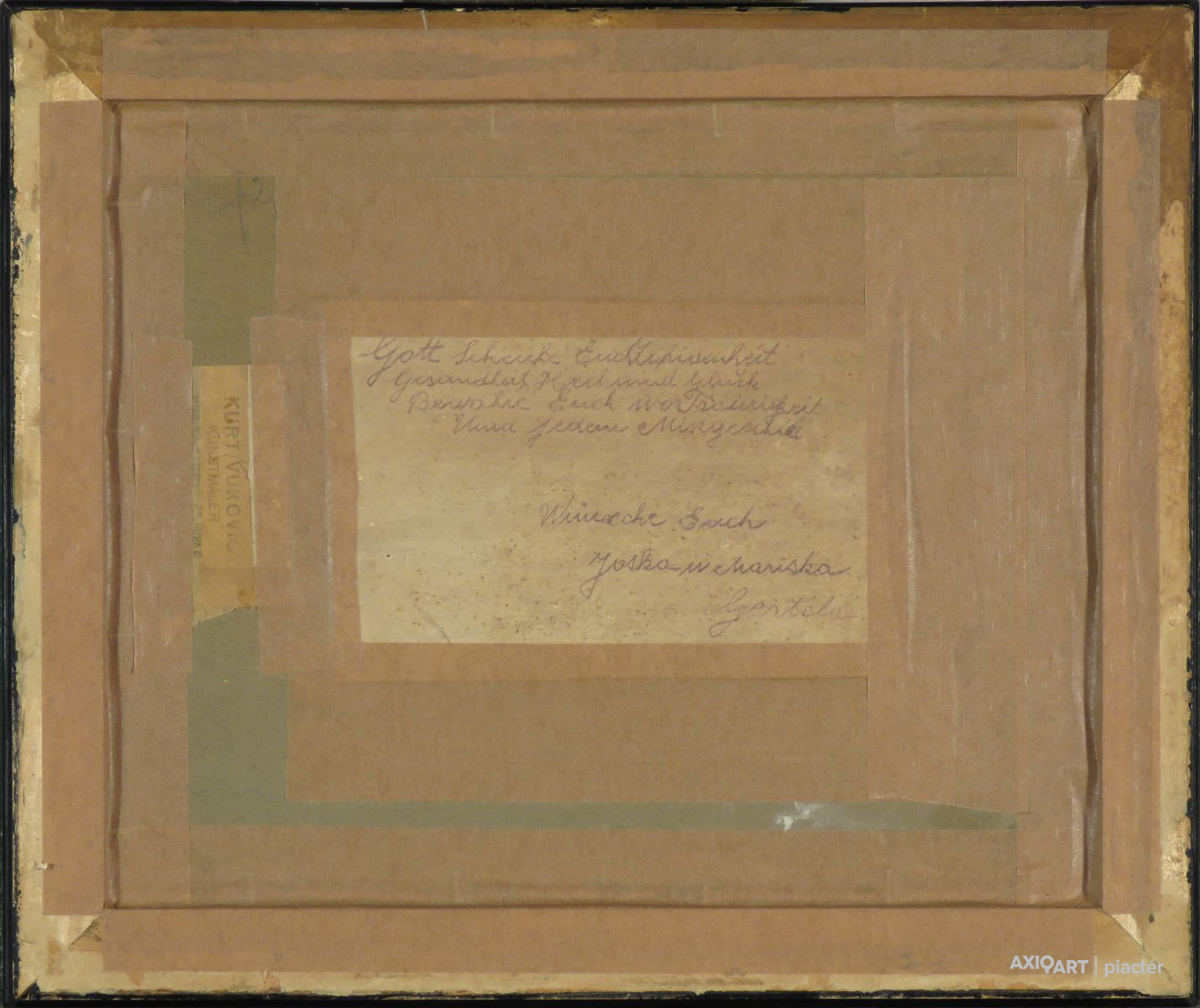 [FKC532/Bp104/44] A kép mérete: 25 x 31 cm keret nélkül. Készült: Olaj, Karton A kép Kurt Vukovics jelzéssel Bécs, XX. század alkotása. Jelezve balra lent "K. Vukovic" A festmény jó állapotban van. Keret: Ép A festmény hátoldalán a művész szárazbélyegzője és ajánlása látható.